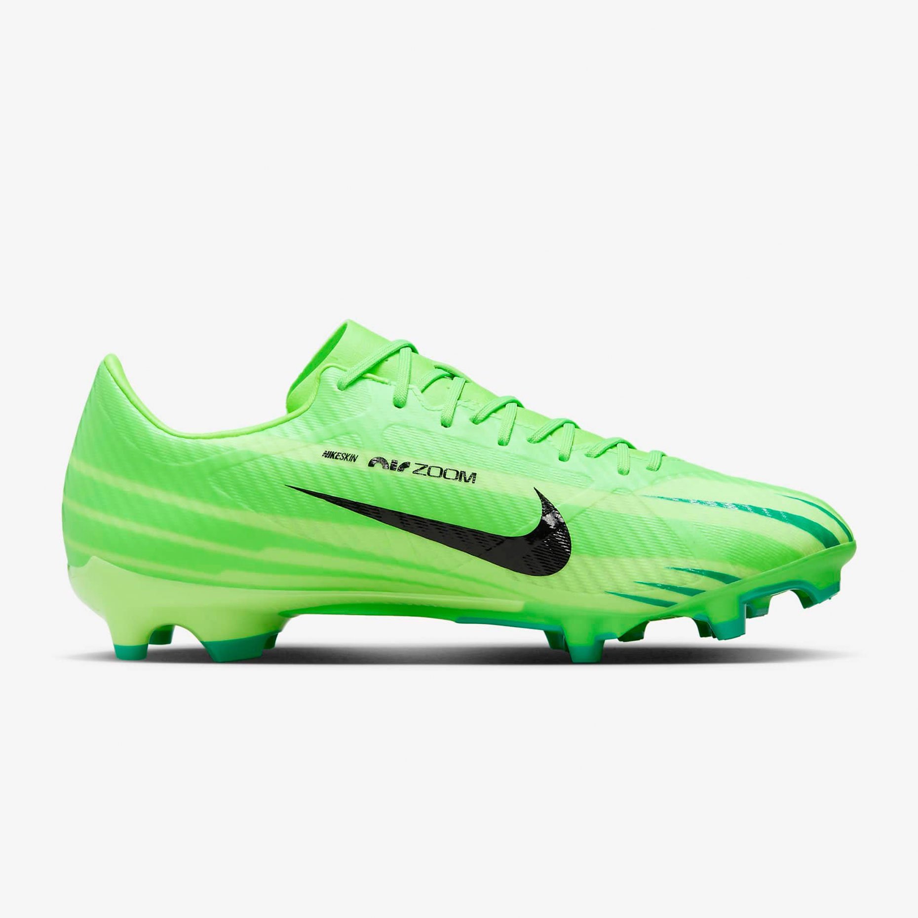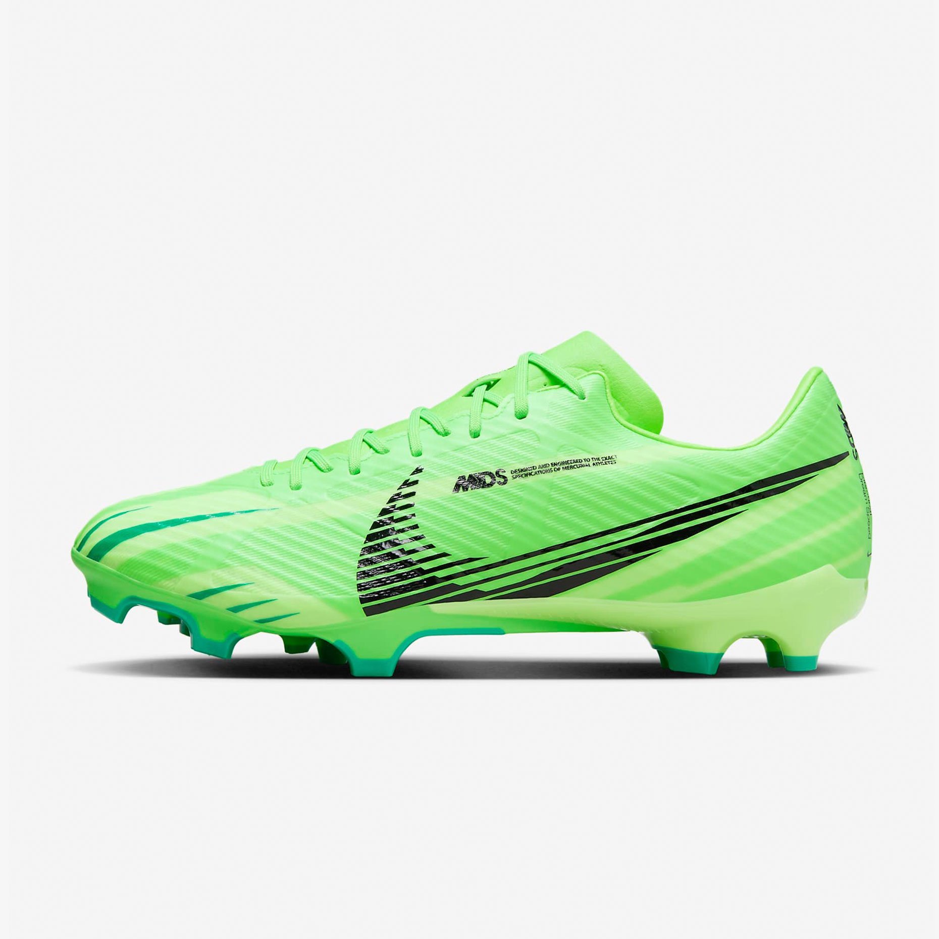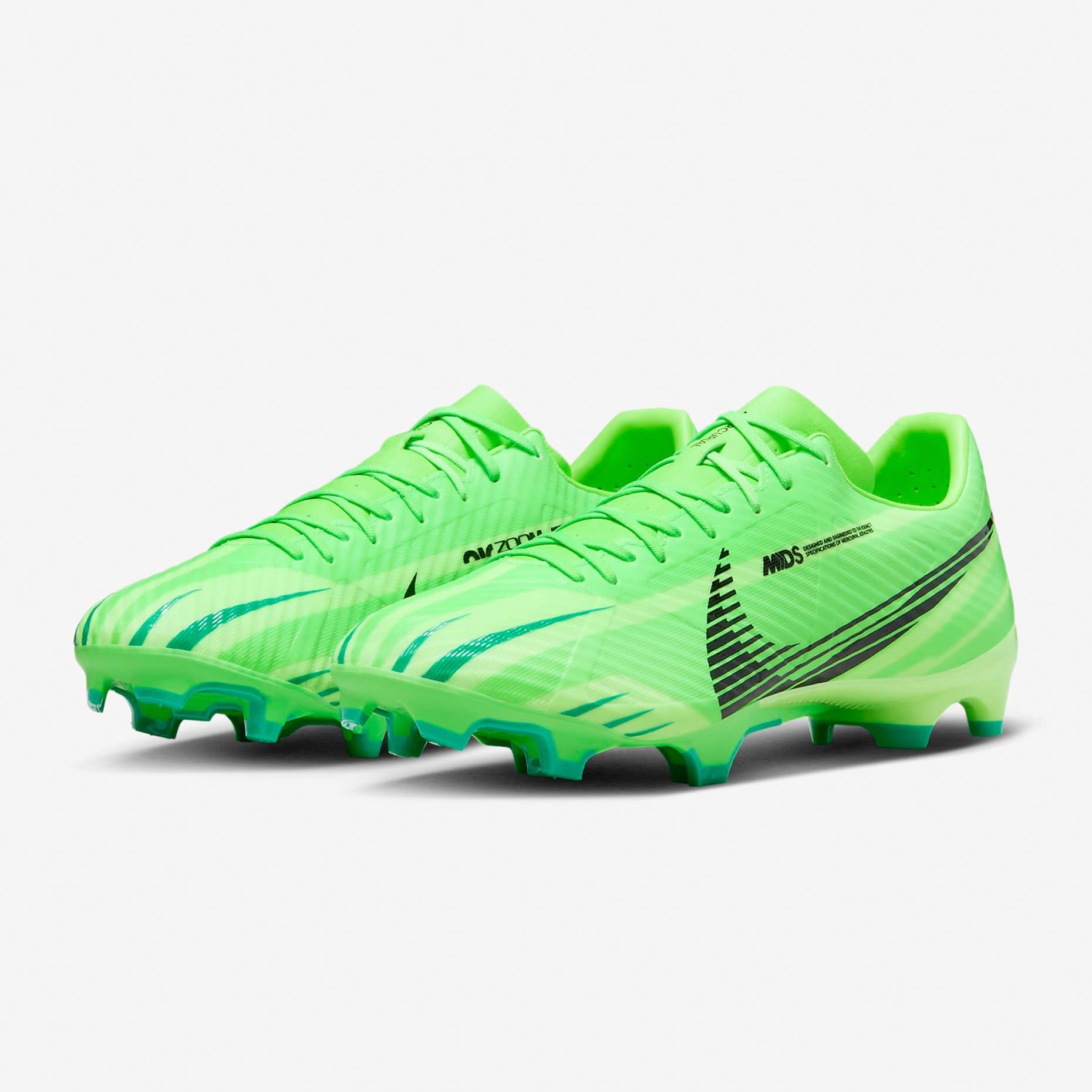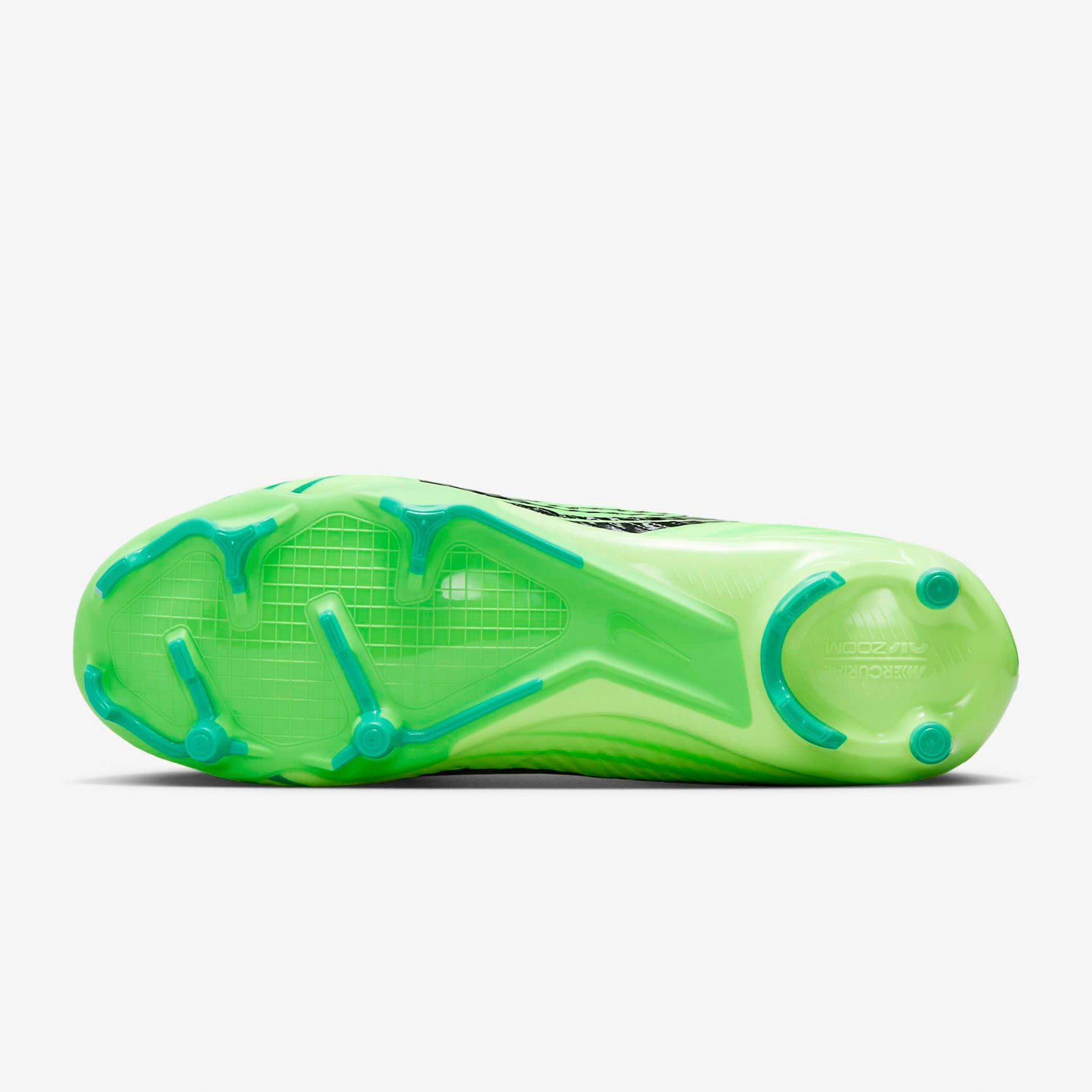 В психологии цвета зеленый символизирует энергию, позитив и видимость. На зеленую основу наложен черный брендинг, который выделяется большим текстурированным графическим изображением Swoosh, сходящимся по боковой стороне. Дополнительные зеленые оттенки используются для создания рисунка, исходящего от пальцев ног, создавая ощущение скорости и движения.