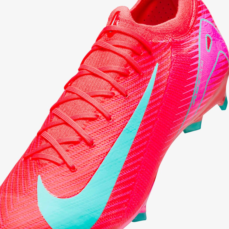 Облегчённая конструкция этих бутс создана для того, чтобы поддерживать вашу игру на протяжении всего матча. Комбинация технологий NikeSkin и Flyknit не только снижает вес, но и обеспечивает комфортное прилегание, а усовершенствованная система шипов гарантирует контроль и точность движений на высокой скорости.