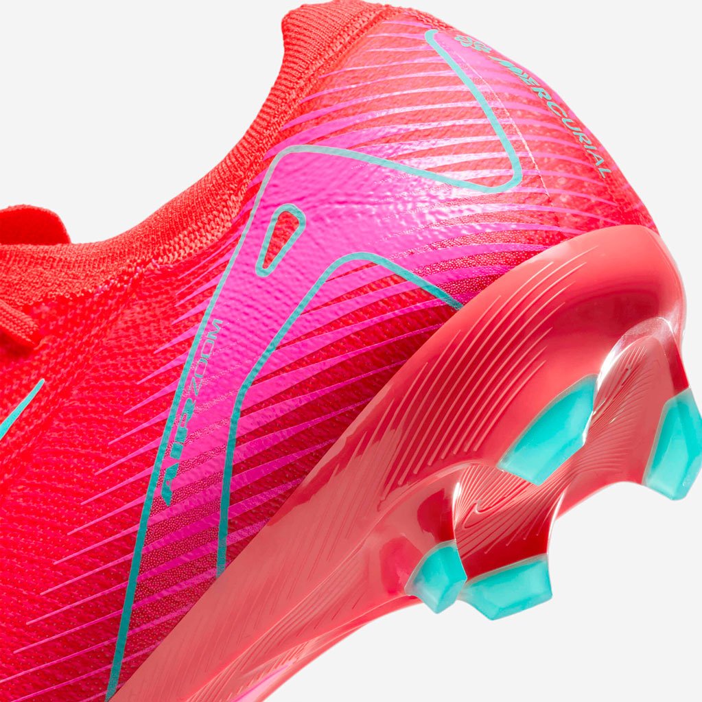 Подошва снабжена вставкой Zoom Air, она не только увеличивает отзывчивость и амортизацию при каждом шаге, но и позволяет мгновенно набирать темп, что делает бутсы идеальными для взрывных рывков и резких смен направлений. Уникальный рисунок шипов на подошве разработан специально для натуральных газонов, обеспечивая превосходное сцепление и устойчивость при быстрых маневрах и остановках.
