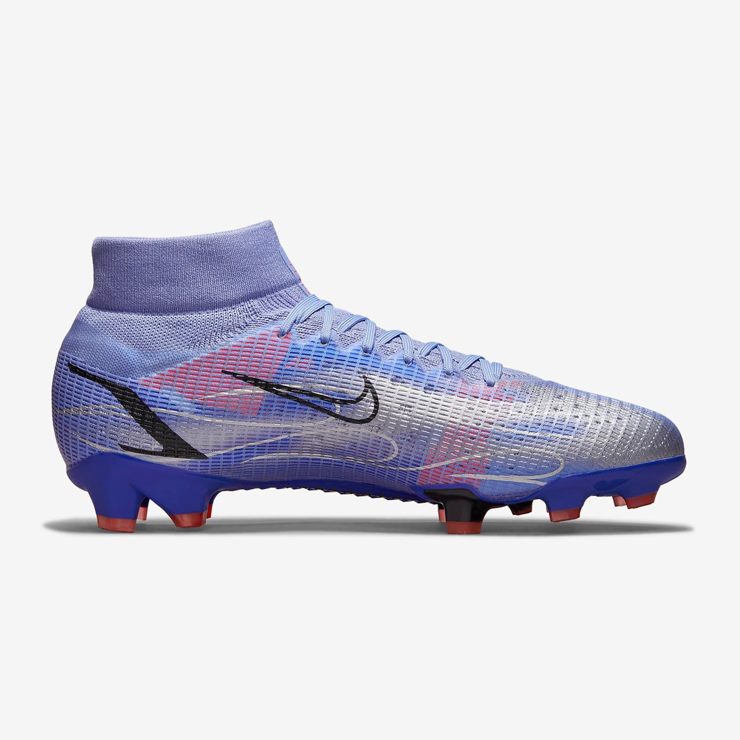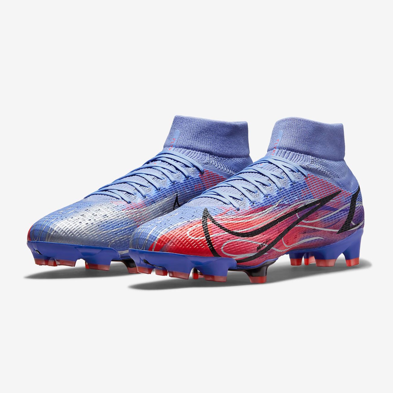 Бутсы Nike Mercurial Superfly 8 Pro KM FG получили обновленный дизайн в честь Килиана Мбаппе, огненные детали вдохновлены его неудержимой скоростью.