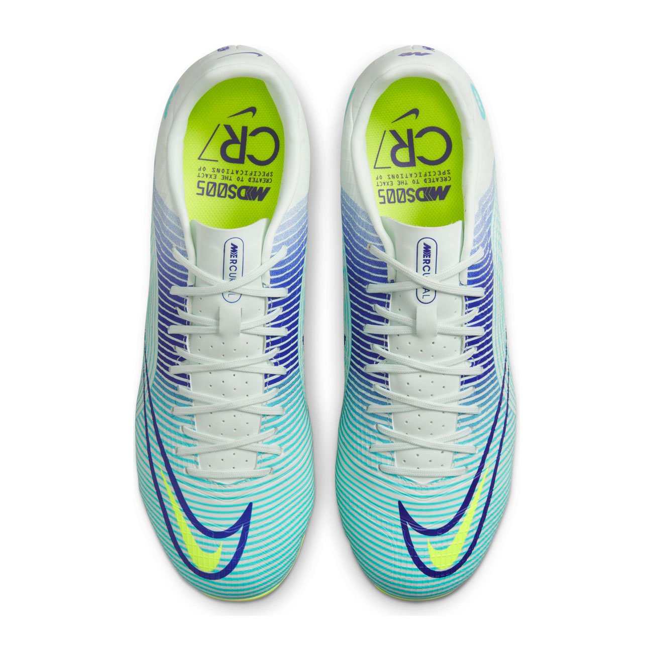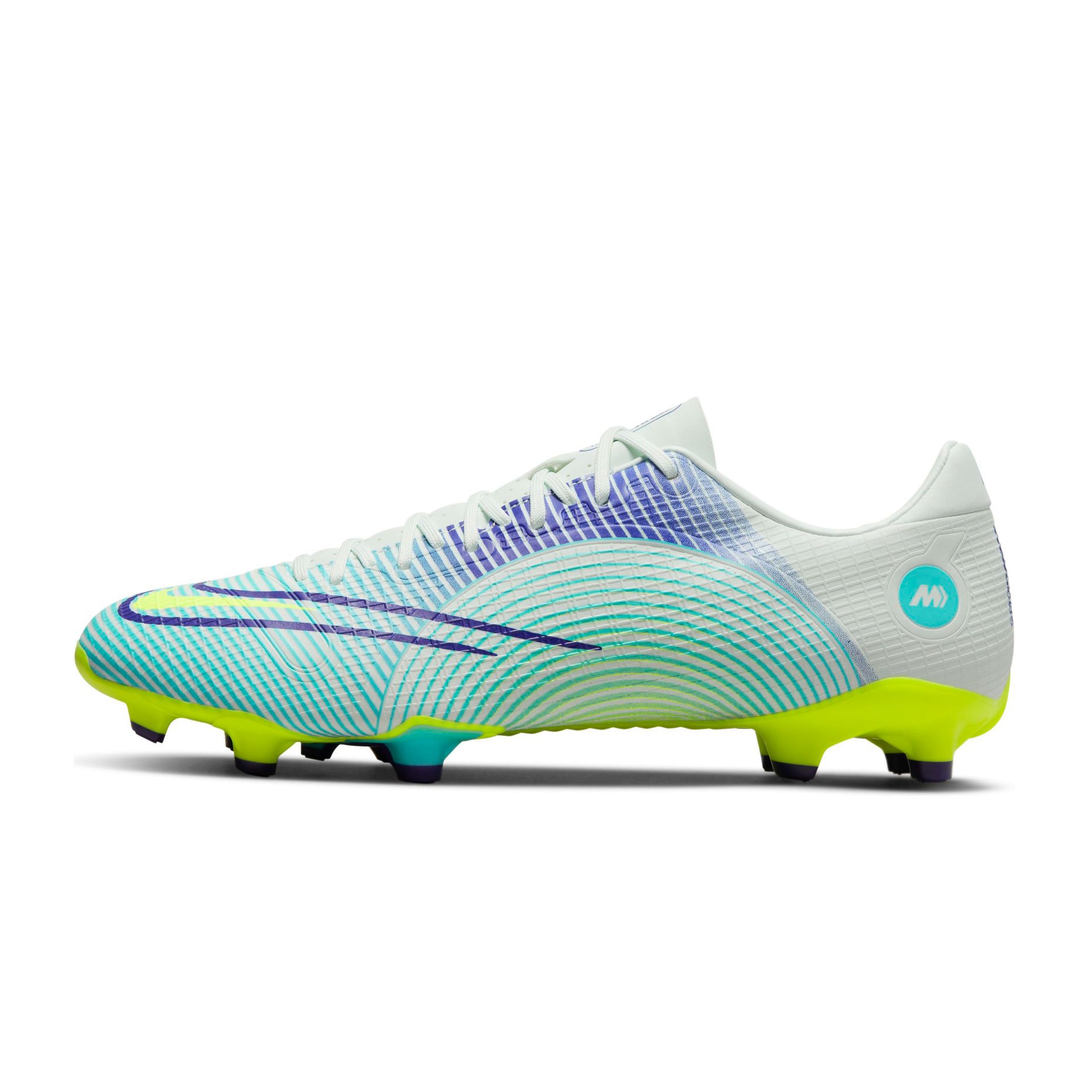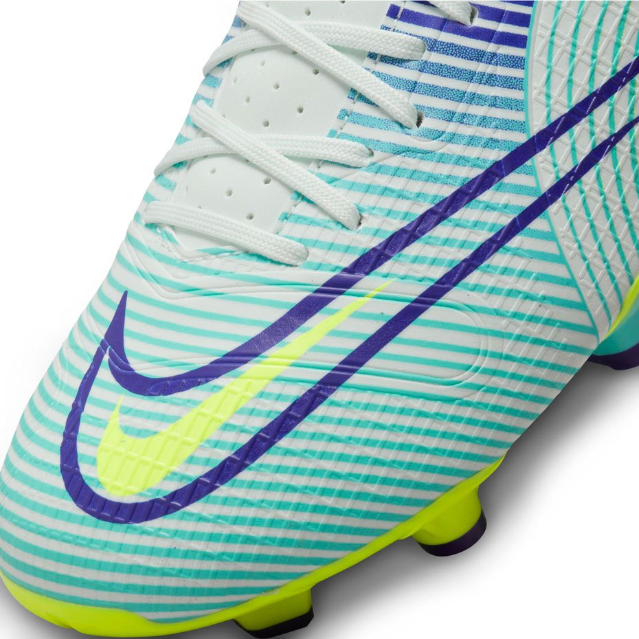Бутсы Nike Mercurial Vapor 14 Academy из коллекции Mercurial Dream Speed, которая представлена в обновленном дизайне, воплощает самую мощную силу по мнению самого Криштиану Роналду: силу разума и медитации. Оттенки зеленого в сочетании с энергичными оттенками пурпурного и желтого цвета ассоциируются со спокойствием, позитивностью и энергией.