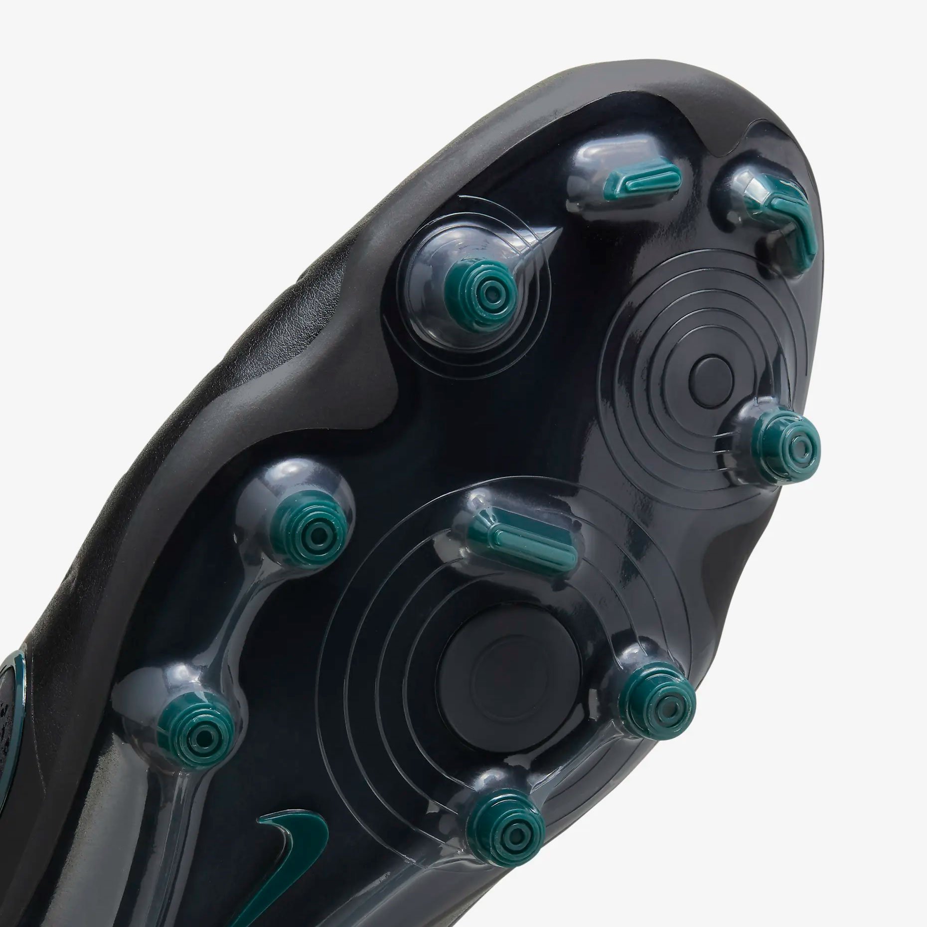• На подошве размещены конические шипы в пятке для оптимального сцепления и устойчивости при торможении и изменении направления на полях с натуральным газоном.