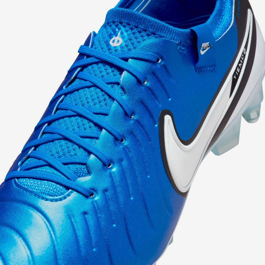 Бутсы Nike Tiempo Legend 10 Elite — это обновленная версия классической модели, которая стала еще легче и удобнее. Верхняя часть выполнена из ткани с технологией Flyknit, покрытой невероятно мягкой кожей с дизайном FlyTouch Plus и технологией ACC (All Conditions Control). Такая конструкция обеспечивает отличное сцепление с мячом в любых условиях, а также идеальное прилегание к стопе, сохраняя комфорт и стабильность на протяжении всей игры.