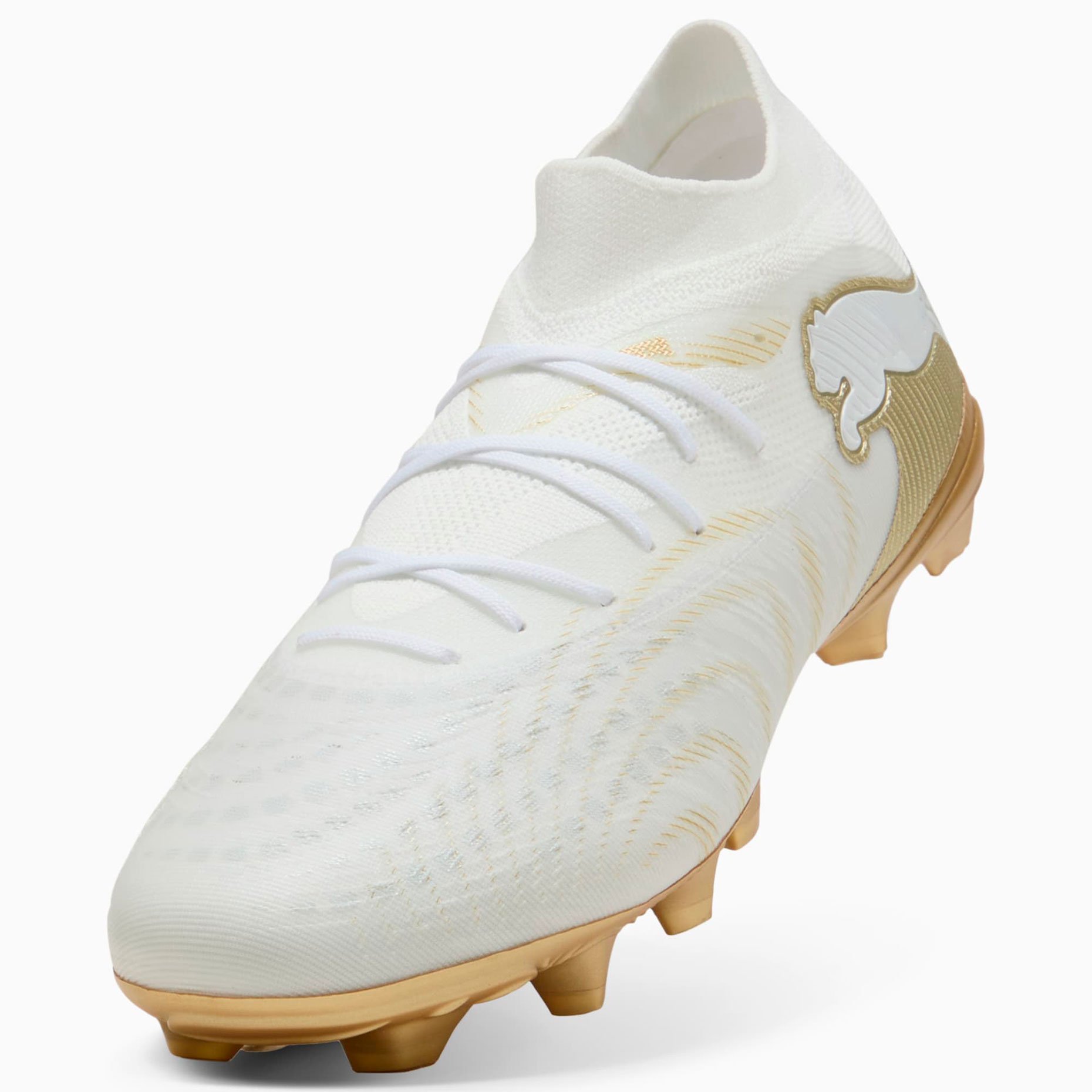 Бутсы Puma Future 9 Match FG/AG — тренировочная модель для игры на жёстких полях с искусственным и натуральным газоном. Верхняя часть обеспечивает гибкую, надёжную и поддерживающую посадку благодаря мягкому лёгкому сетчатому материалу основы, эластичному трикотажному воротнику и конструкции средней высоты, стабилизируя голеностоп при резких движениях. Целенаправленные рельефные зоны на верхней части улучшают сцепление с мячом, помогая максимально эффективно использовать каждое касание при дриблинге мимо защитников, точных пасах или ударах по воротам.