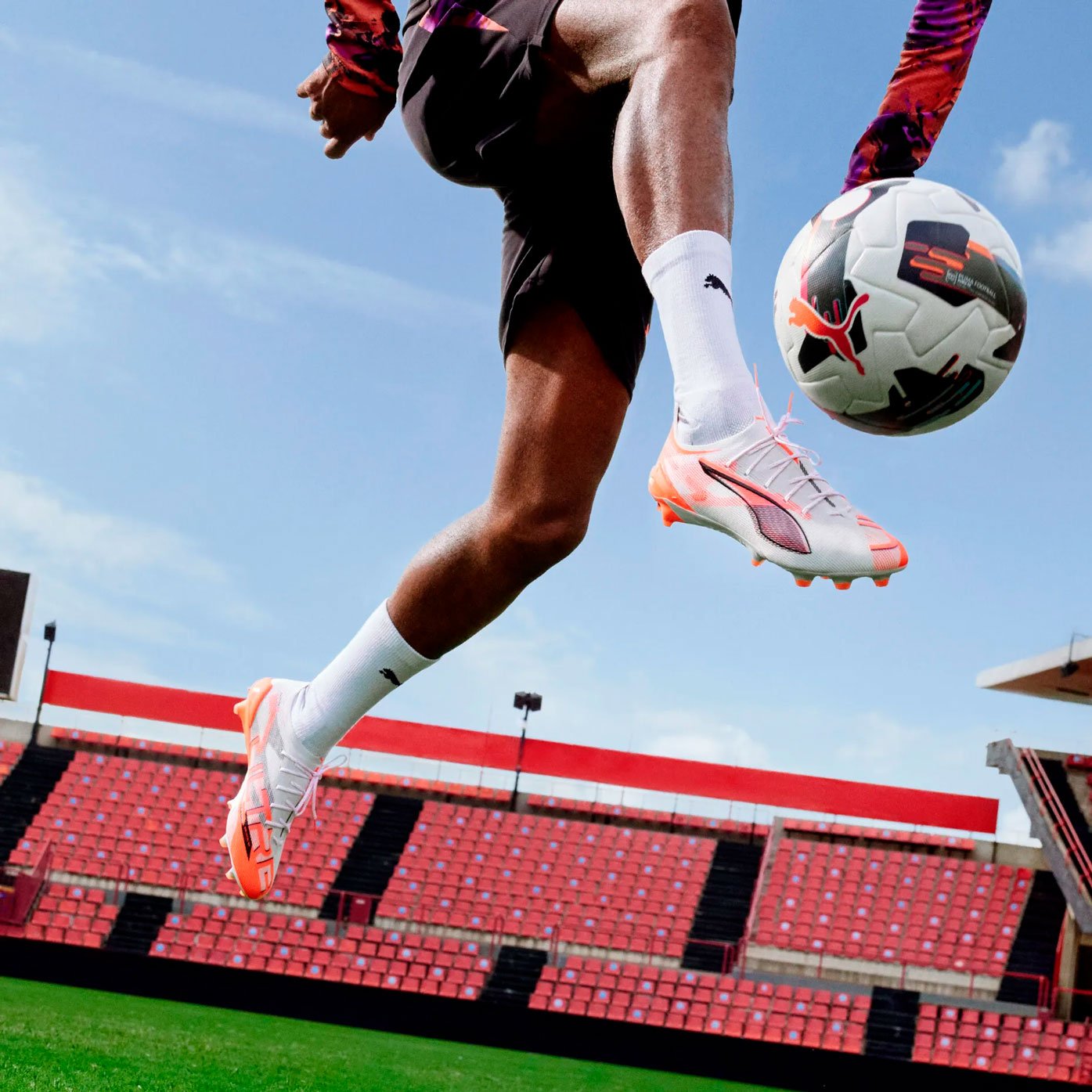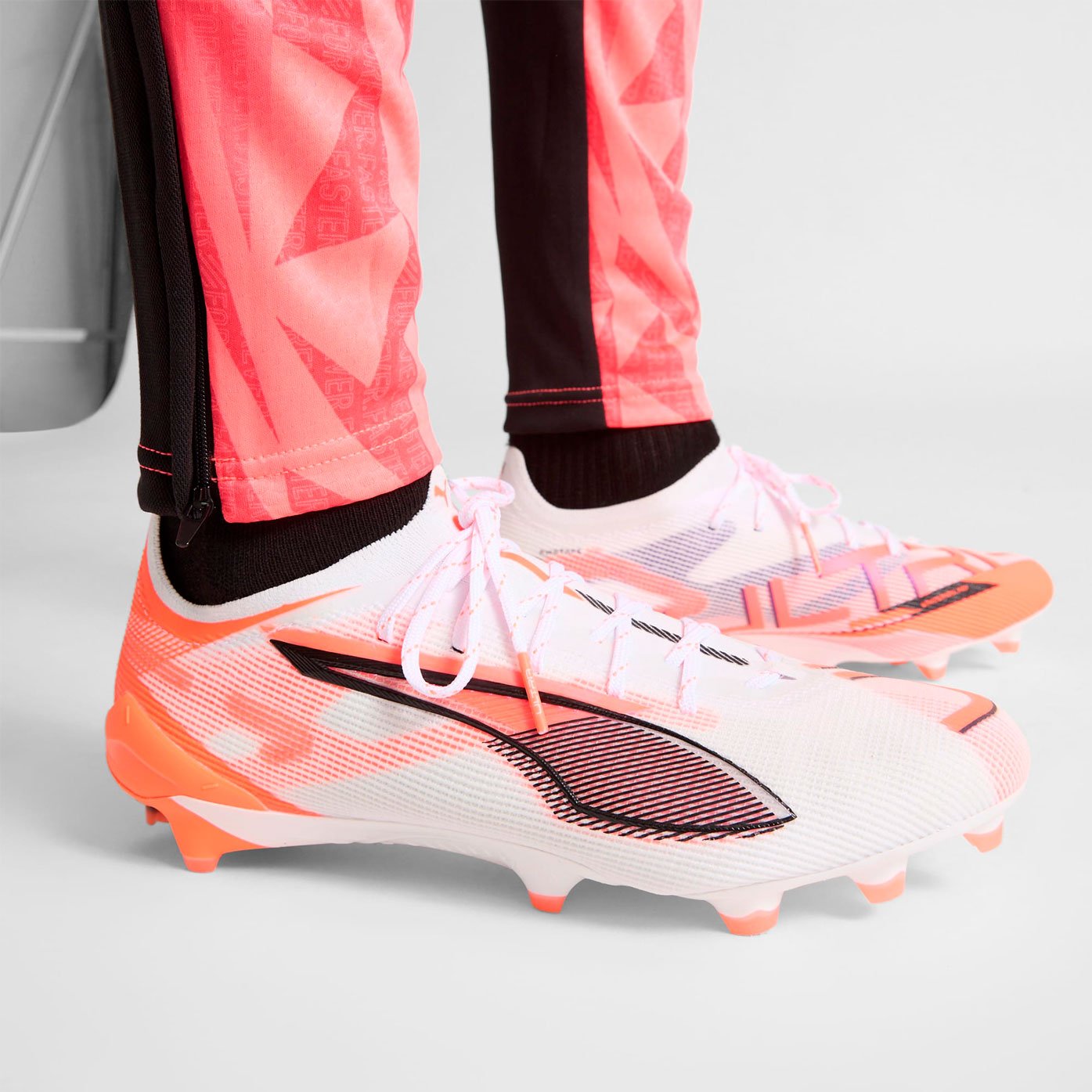 Бутсы Puma Ultra Ultimate FG/AG из коллекции Unlimited представляют собой высокотехнологичную профессиональную обувь, созданную для футболистов, стремящихся увеличить свою скорость и мощь на поле. Эта модель отличается не только передовыми технологиями, но и стильным дизайном выполненном в белом цвете с оранжевыми акцентами, что придает бутсам уникальный и запоминающийся внешний вид.
