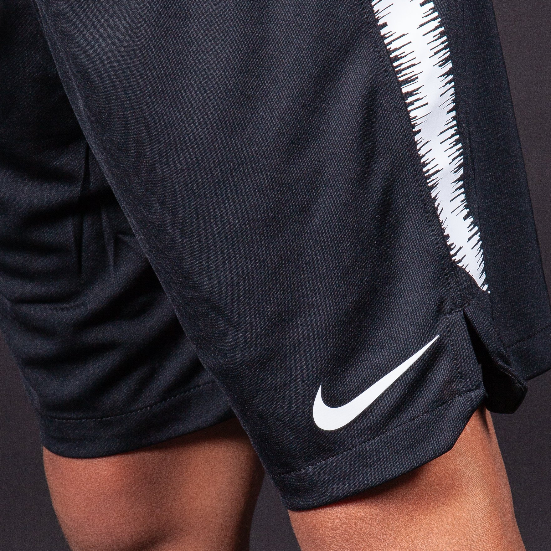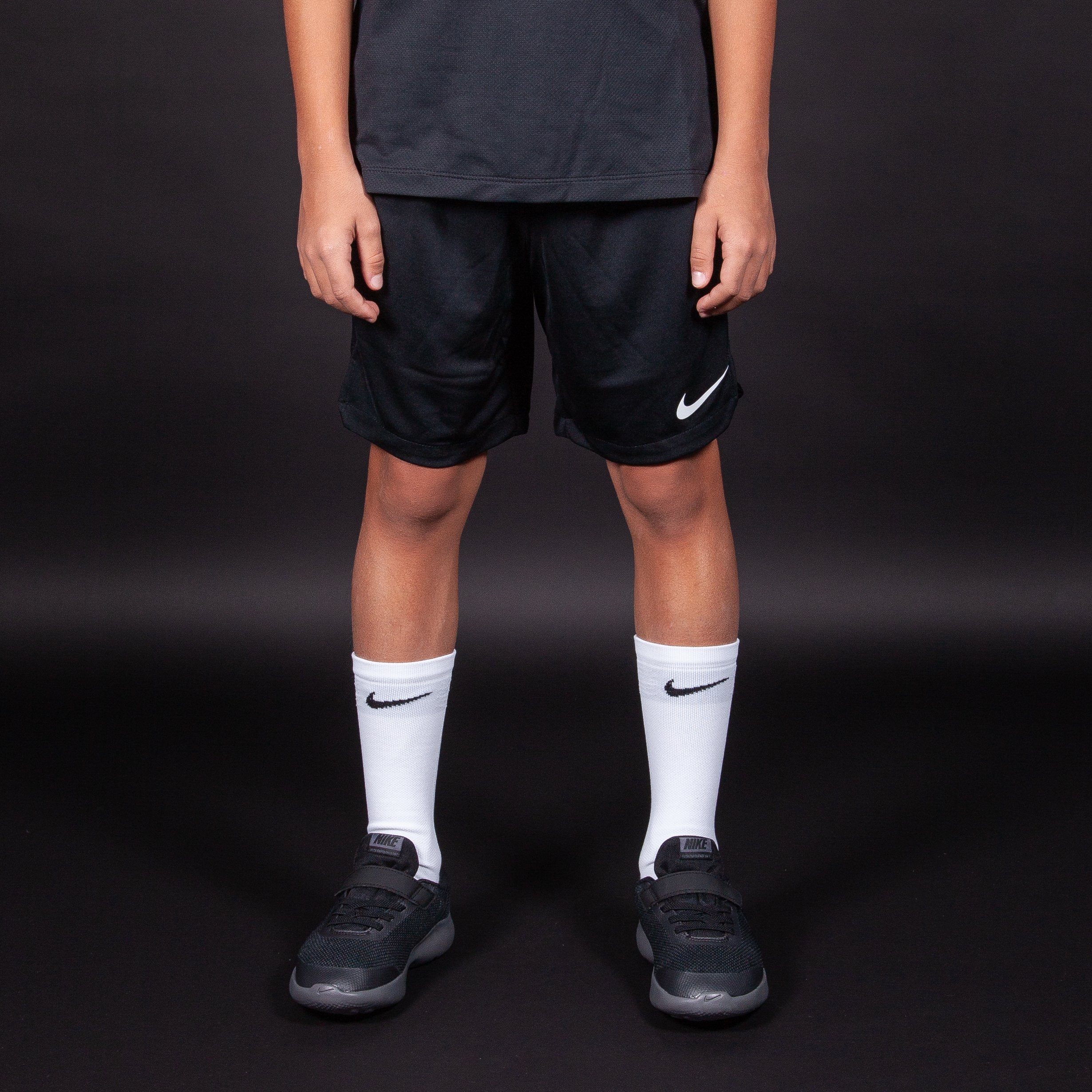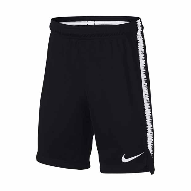 Детские футбольные шорты Nike Dry Squad черного цвета с белыми вставками по бокам отлично подходят для тренировок и игр любого уровня. Они выполнены из легкого синтетического материала, который: