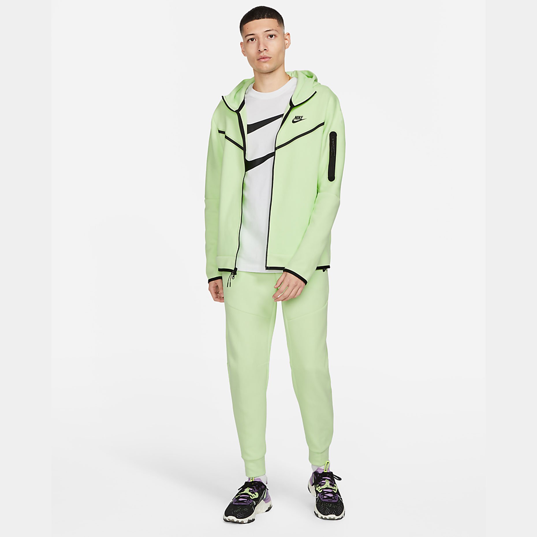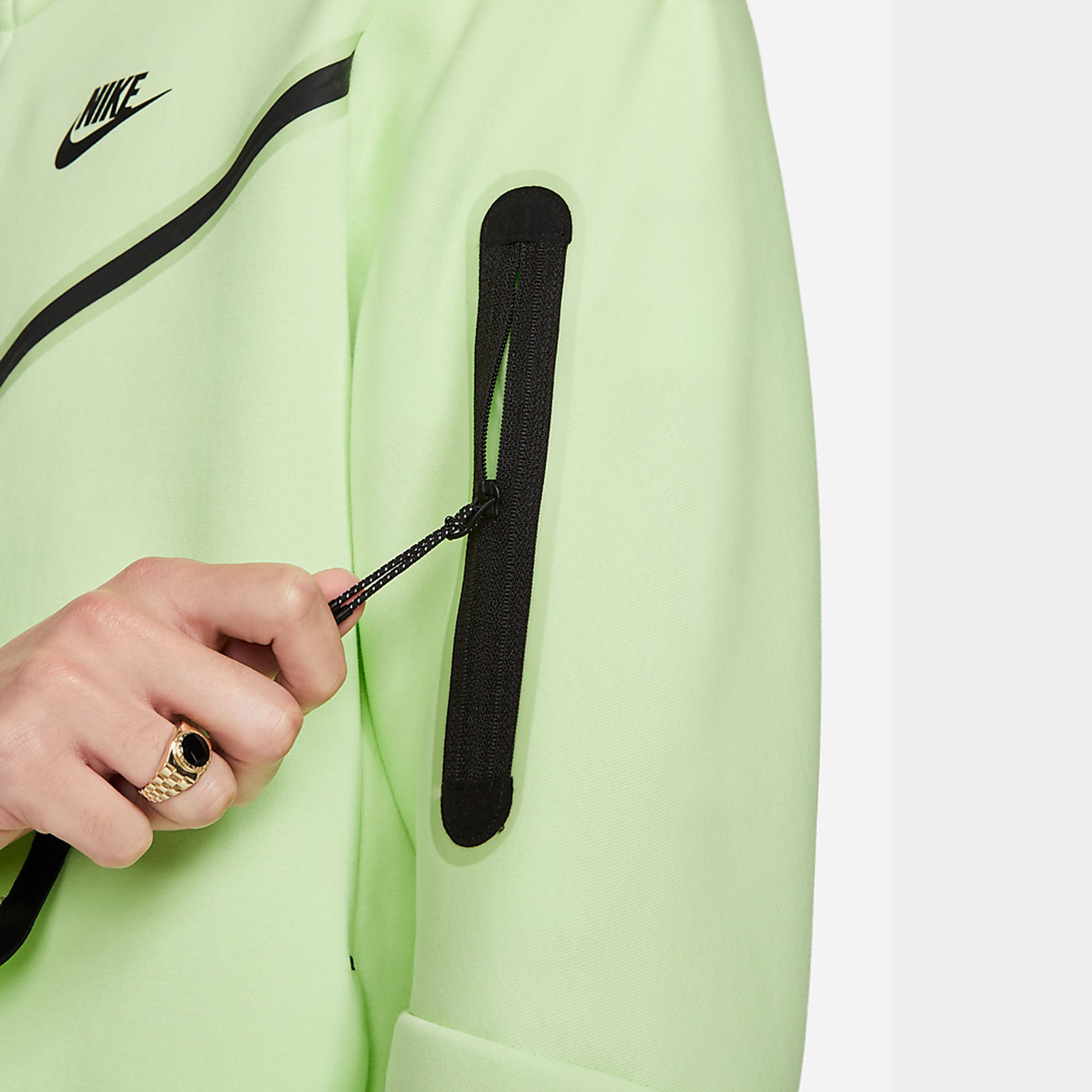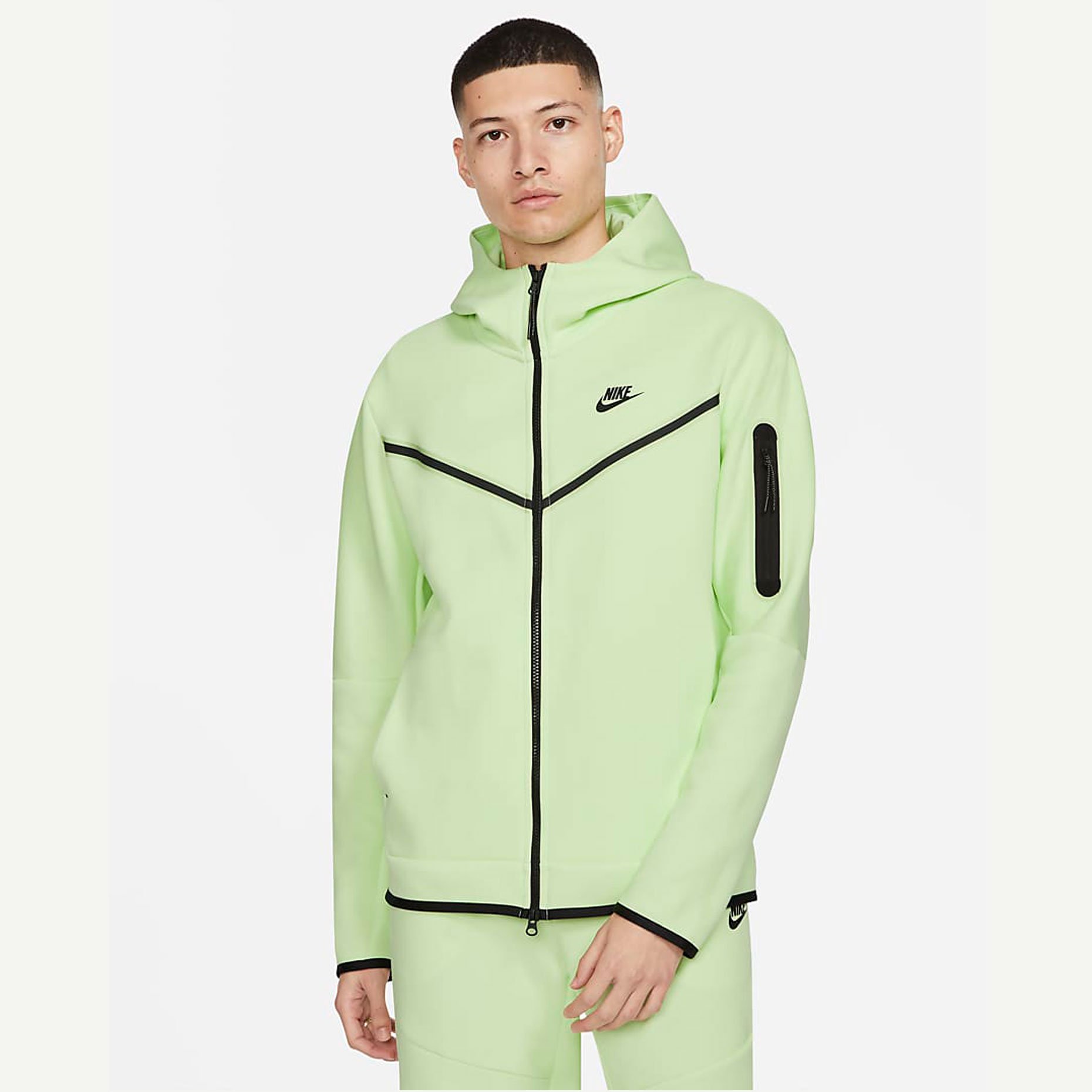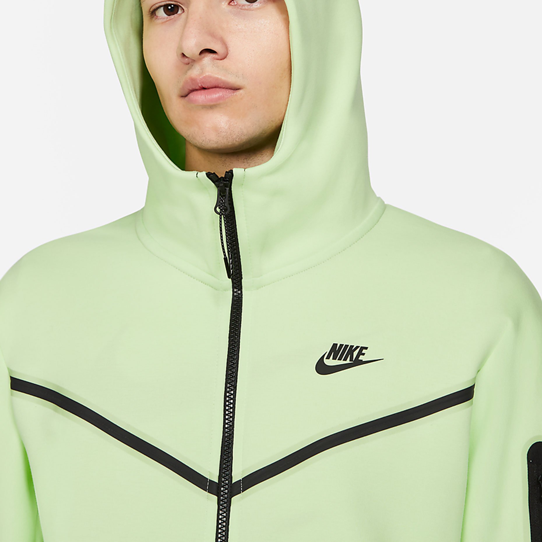 Худи с молнией во всю длину Nike Sportswear Tech Fleece из двусторонней ткани «спейсер» обеспечивает защиту от холода без утяжеления. Слегка завышенная горловина в области капюшона защищает от влаги.