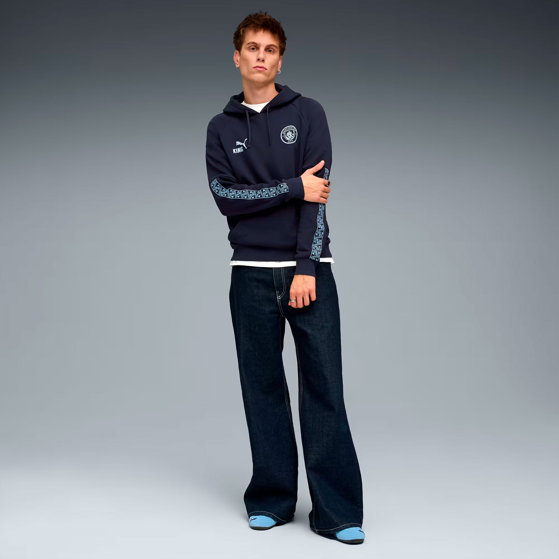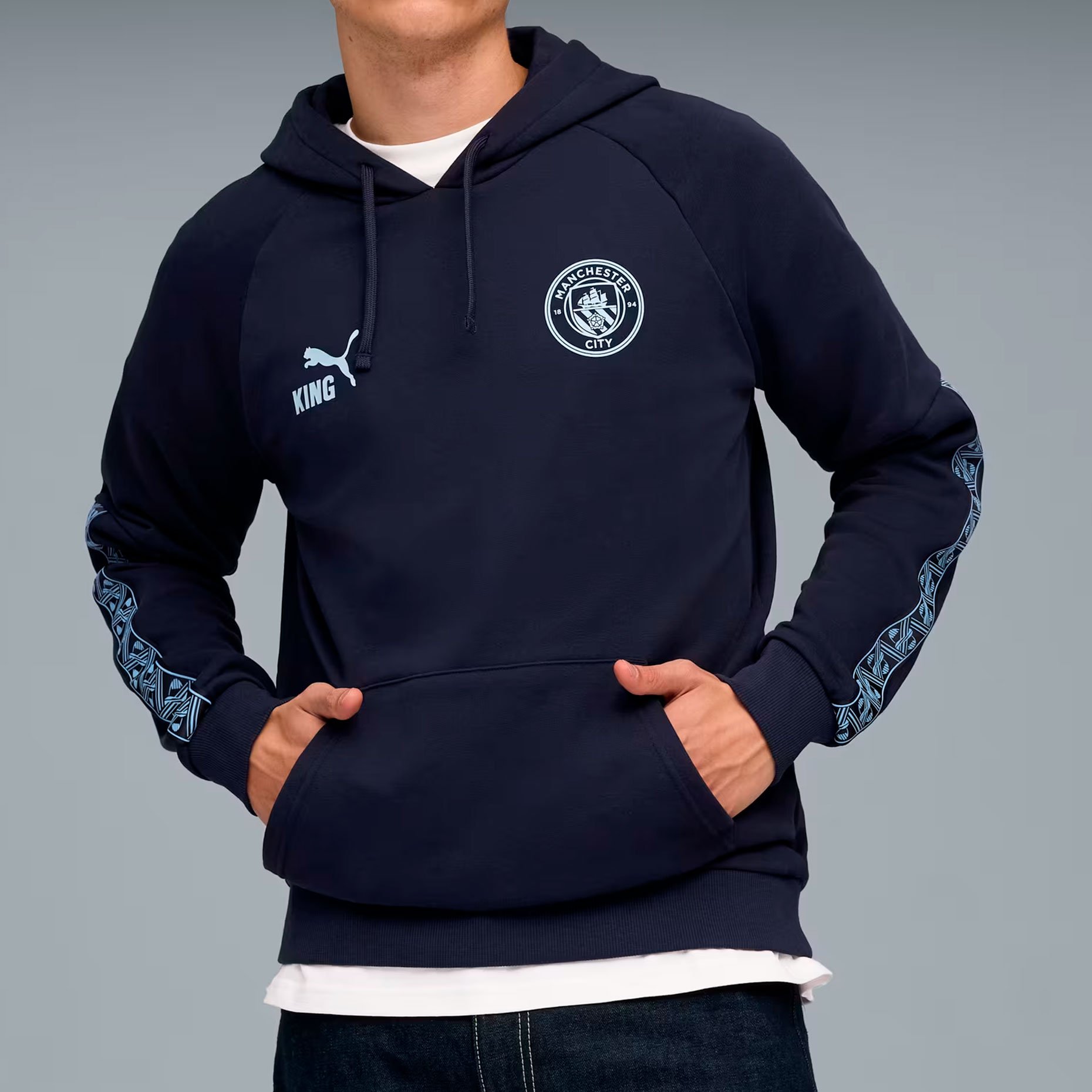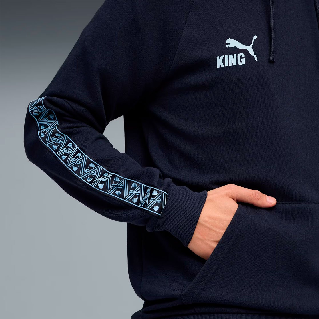 Худи Puma ФК «Манчестер Сити» King Hoodie — это стильное воплощение клубной символики в современной спортивной одежде. Выполненная в классическом дизайне коллекции King, эта модель сочетает в себе традиции и инновации, украшена логотипом клуба на груди и оригинальным орнаментом на рукавах.