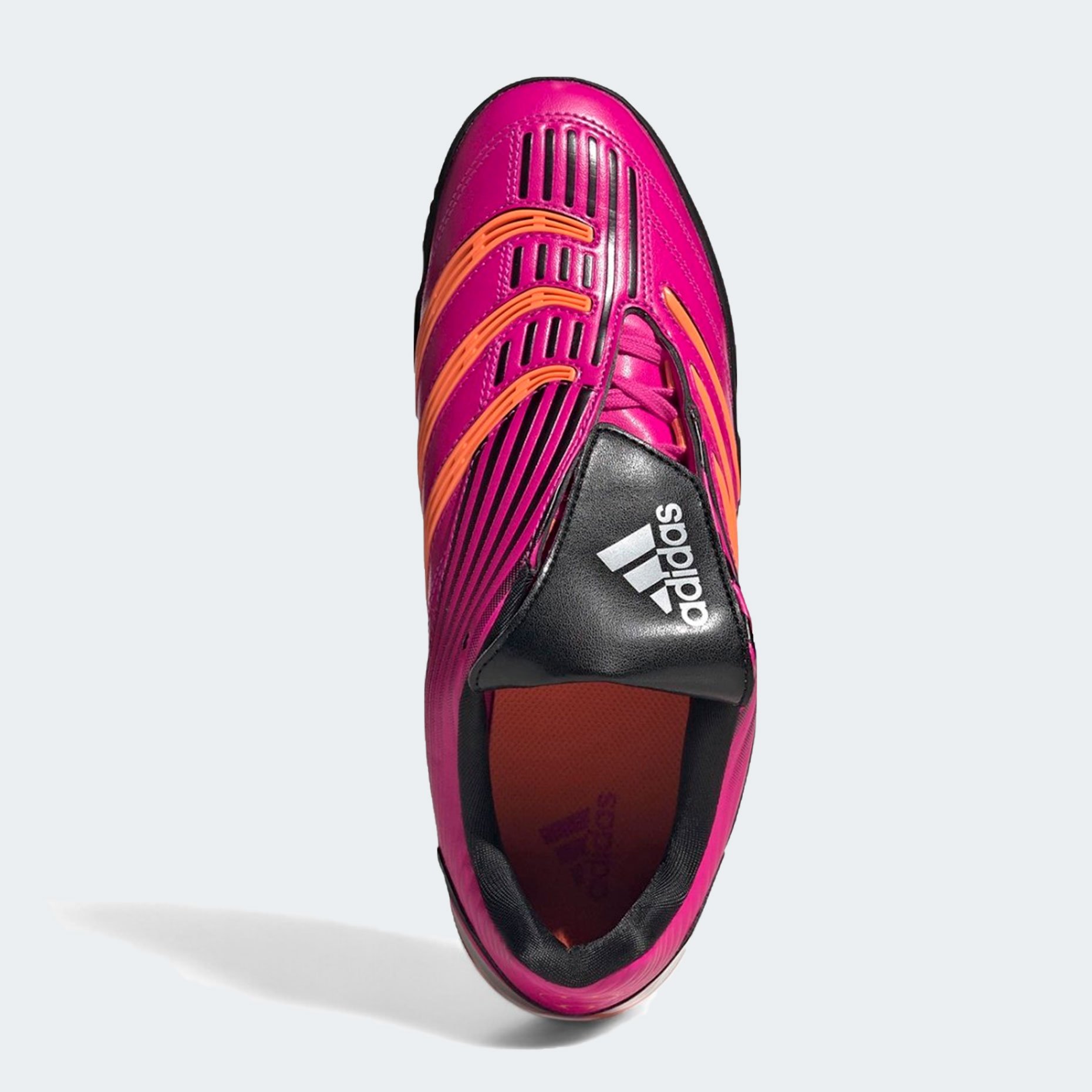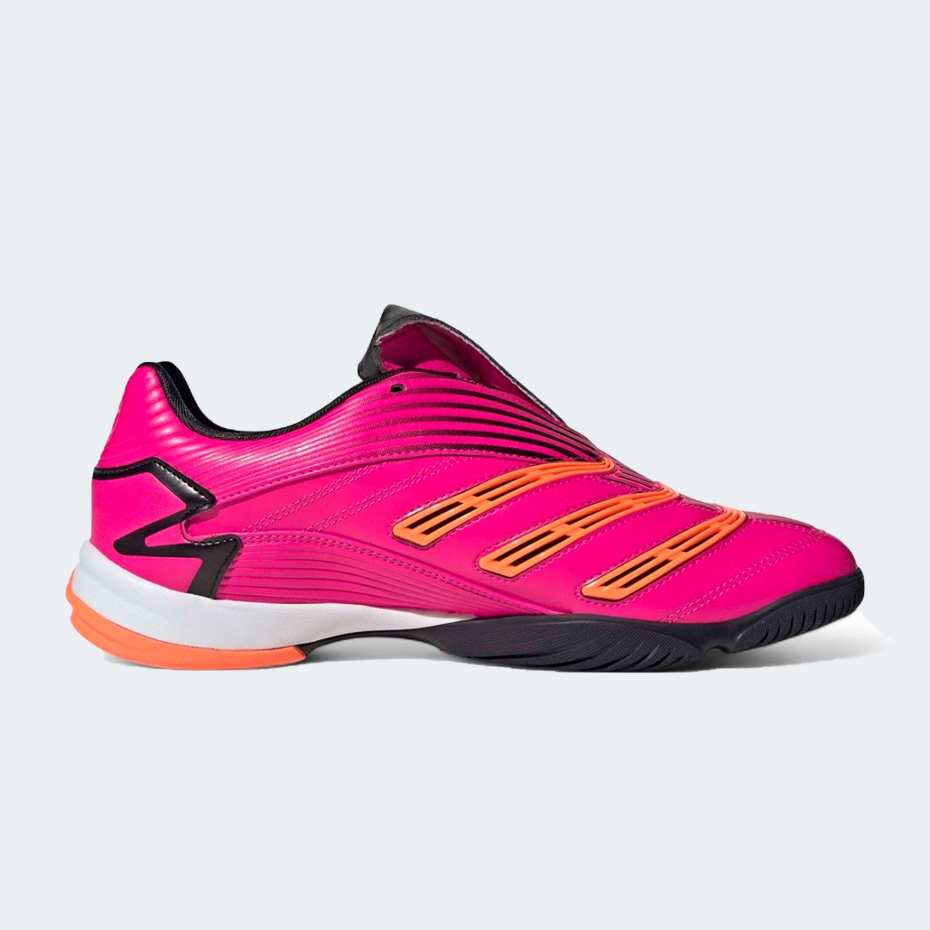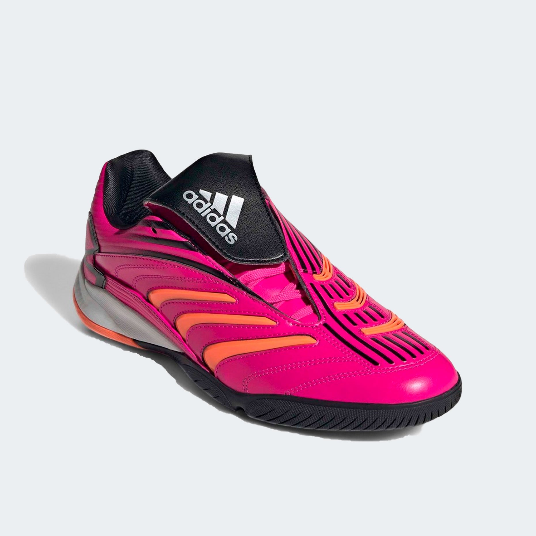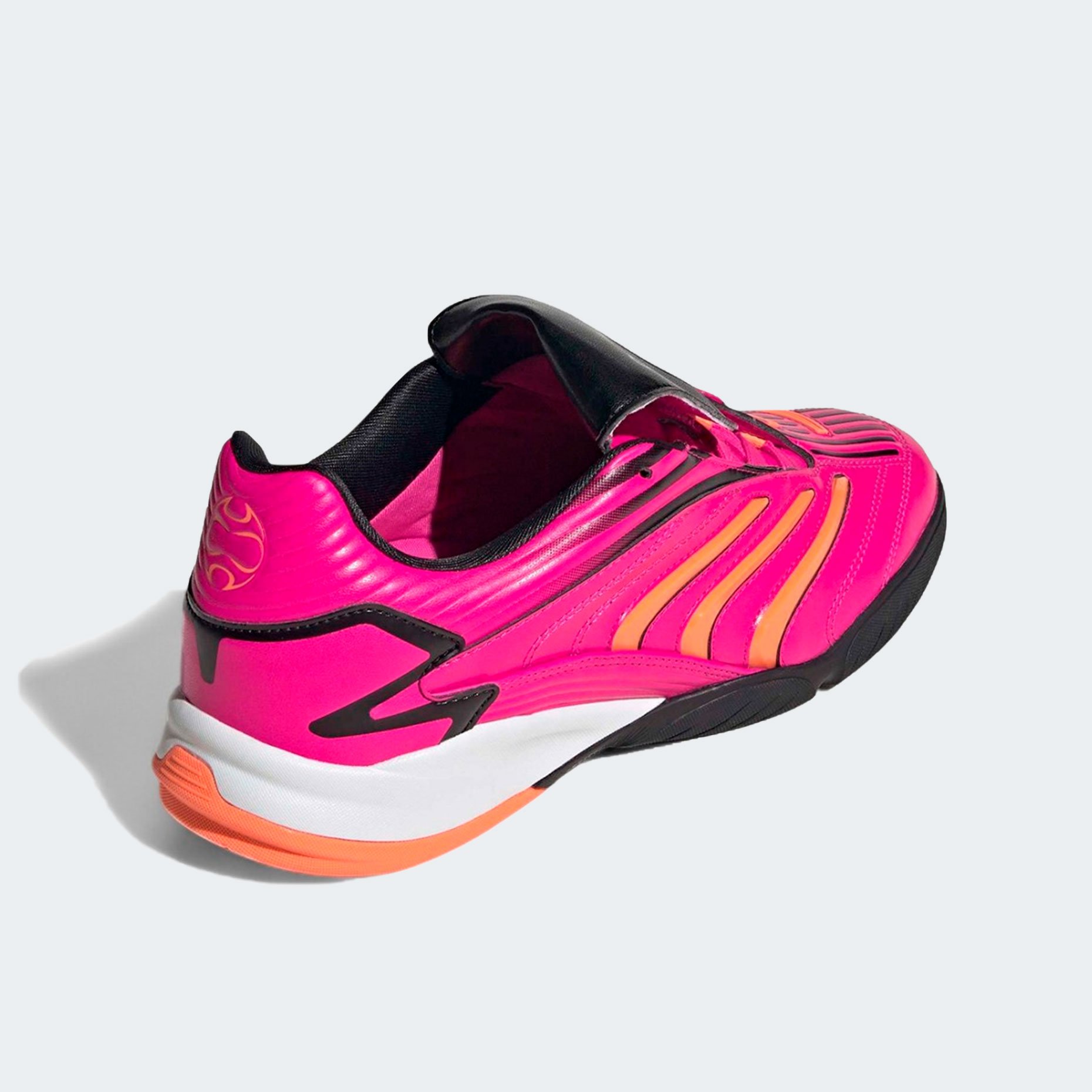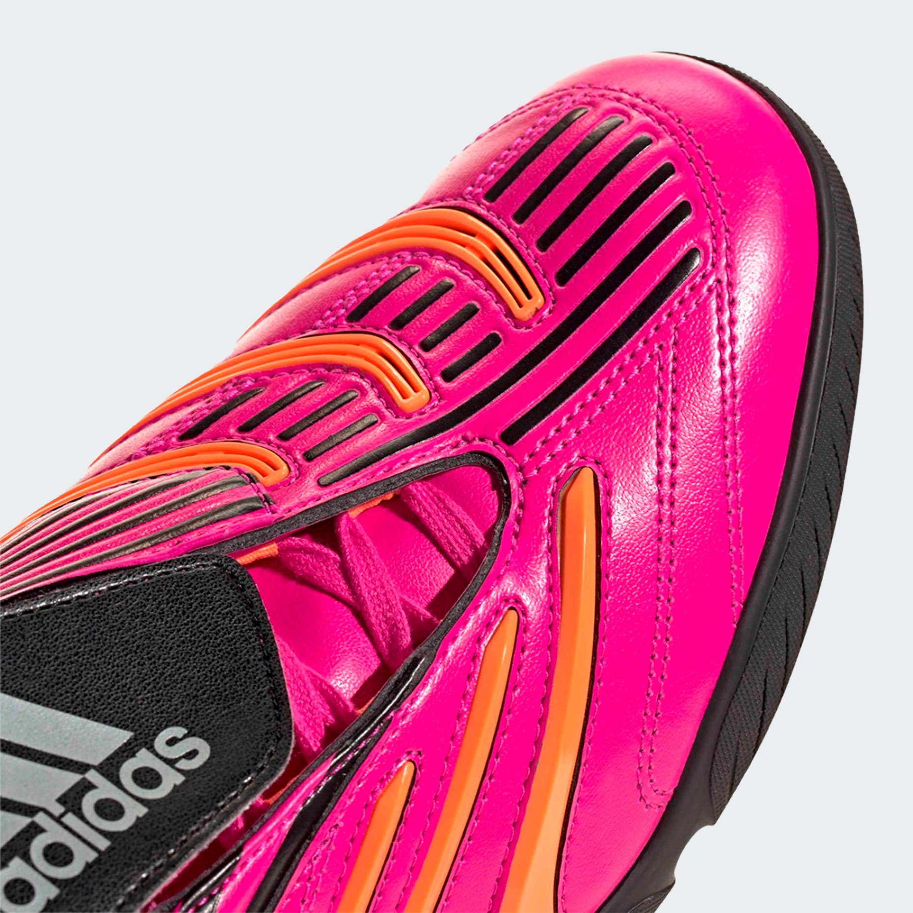 Игровая обувь для зала adidas Originals Predator Sala — это современная интерпретация культовой серии Predator, возвращающая на площадку дух легендарных бутс 90-х с актуальными технологическими решениями. Верх выполнен из глянцевой синтетической кожи с лёгким блеском, обеспечивающей плотную посадку, тактильную чувствительность и выраженный ретро-стиль. Контрастные оранжевые акценты и плавные линии придают футзалкам динамичный, энергичный облик, а откидной язычок — фирменная деталь Predator — не только подчёркивает историческую преемственность, но и обеспечивает защиту стопы при ударах. Смещённая шнуровка расширяет зону удара, позволяя точнее контролировать мяч при передачах и ударах.