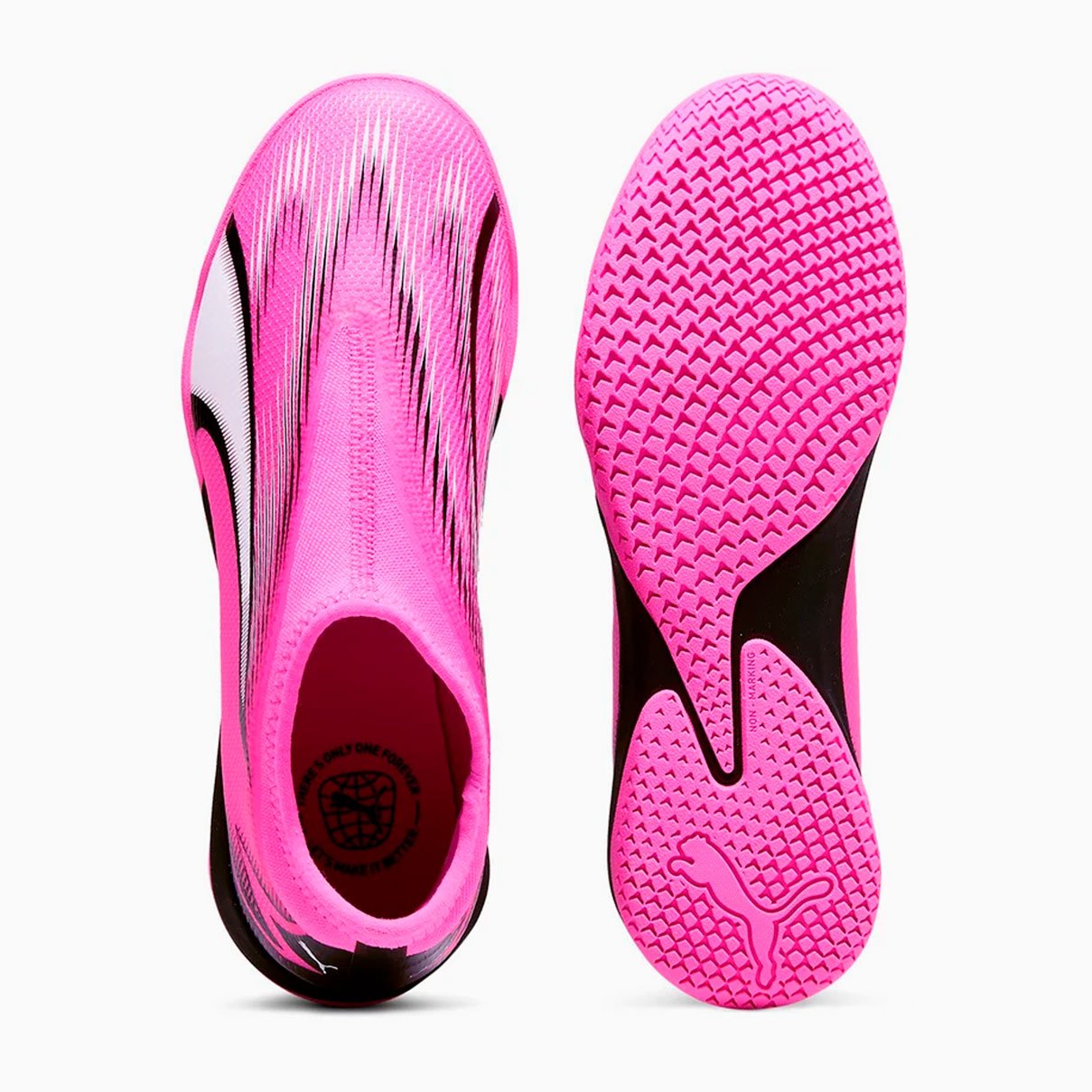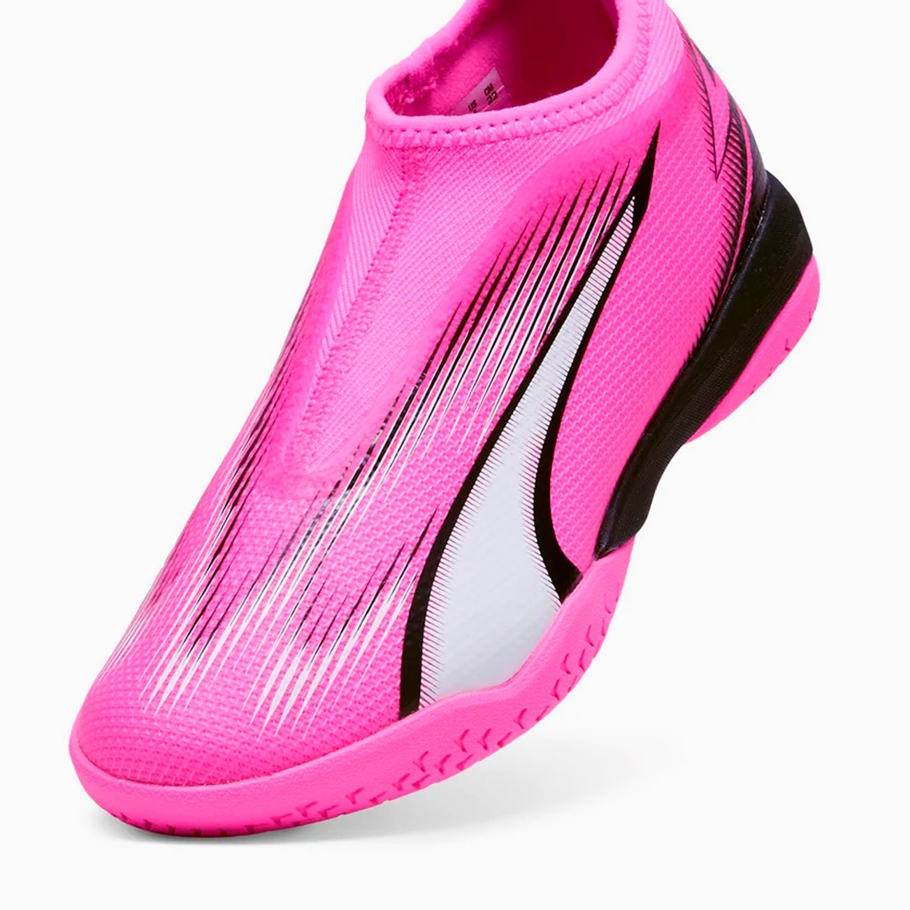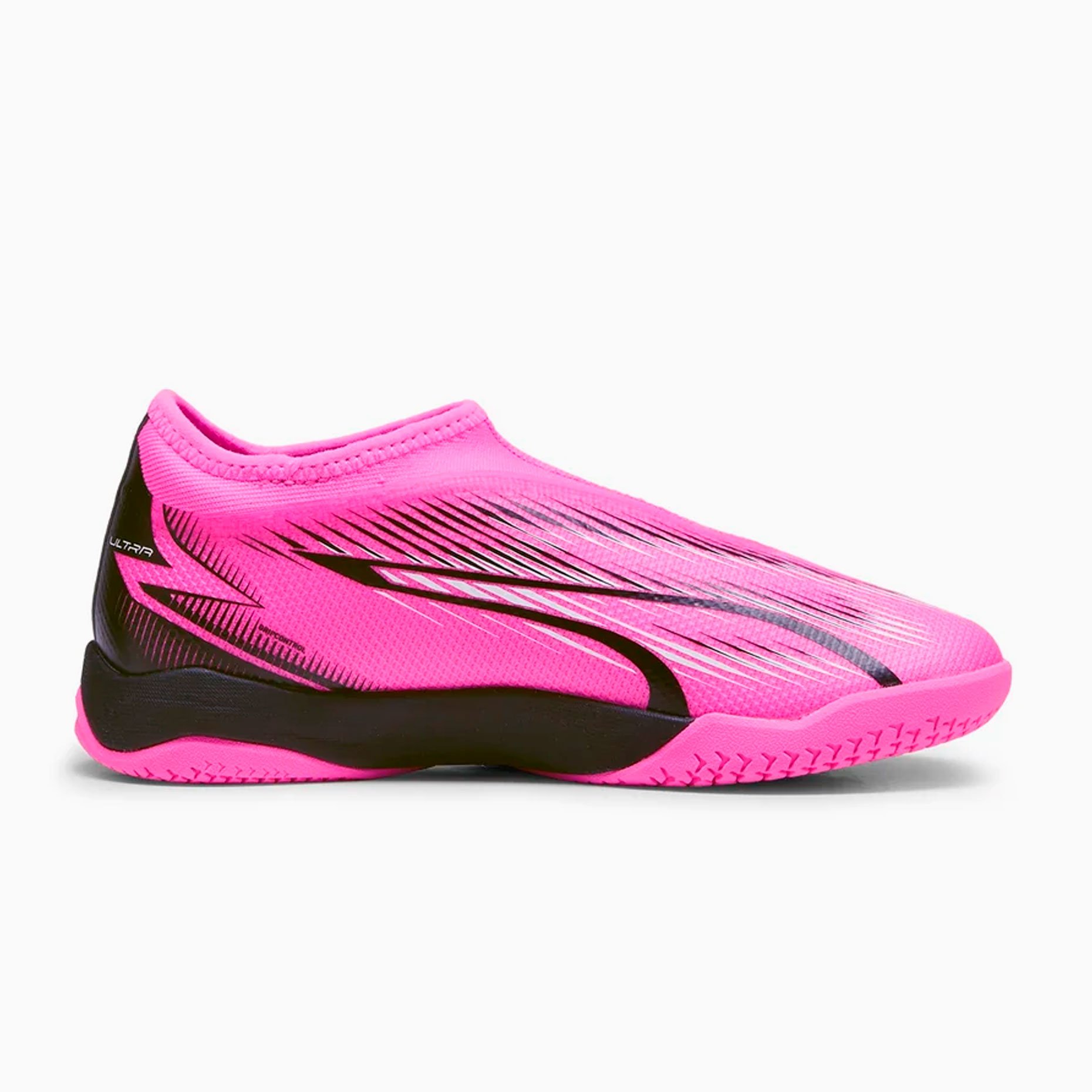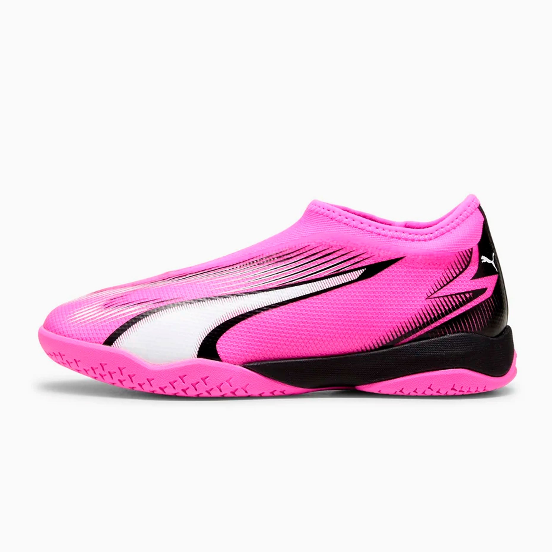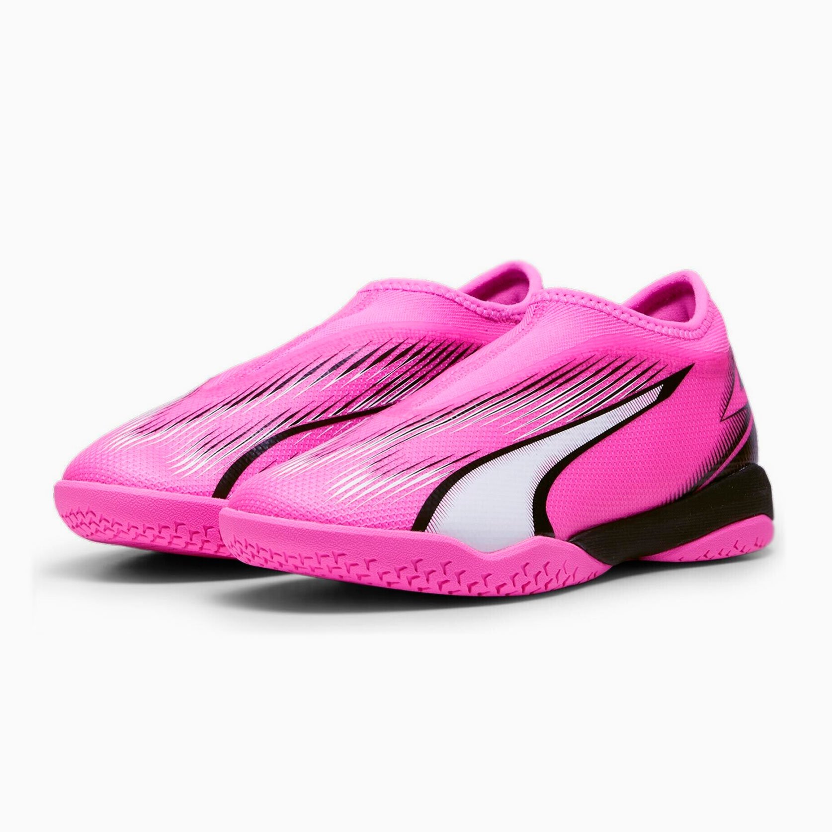 Игровая обувь для зала Puma Ultra Match Laceless IT из коллекции Phenomenal модель для юных любителей футбола, для игры на твердых поверхностях. Они представляют собой новый уровень скорости и ускорения благодаря своему легкому верху из сетки, усиленному тонким слоем покрытия GripControl.