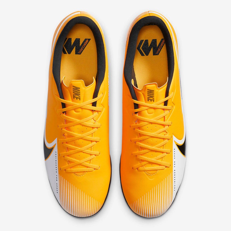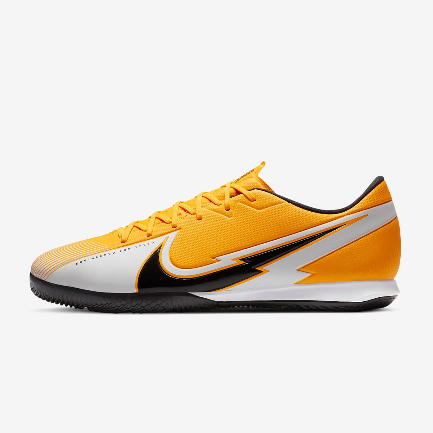 Мягкий верх бутс Nike Mercurial Vapor 13 Academy IC обхватывает стопу, обеспечивая плотную посадку, а резиновая подметка усиливает сцепление при игре на улице и на крытом поле.