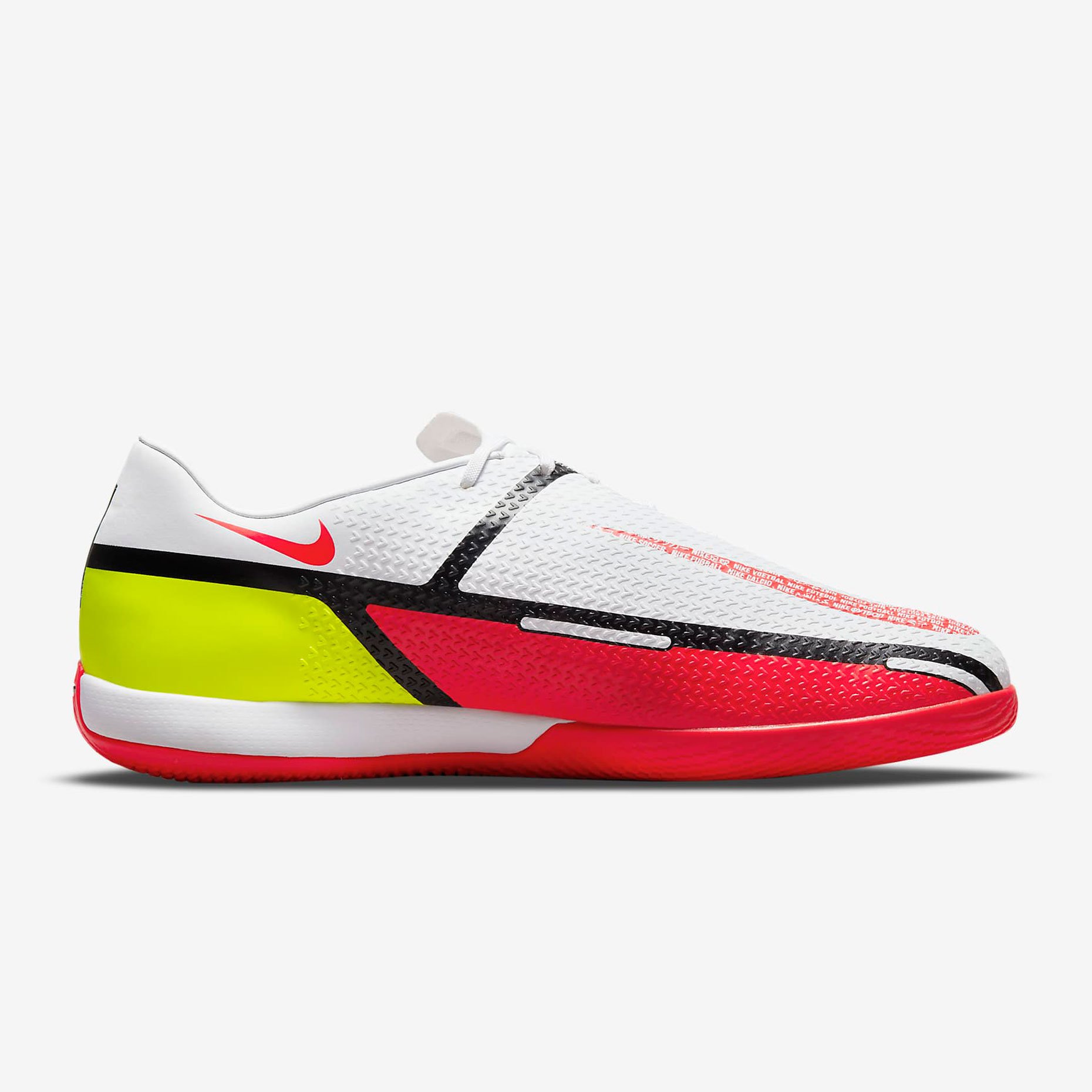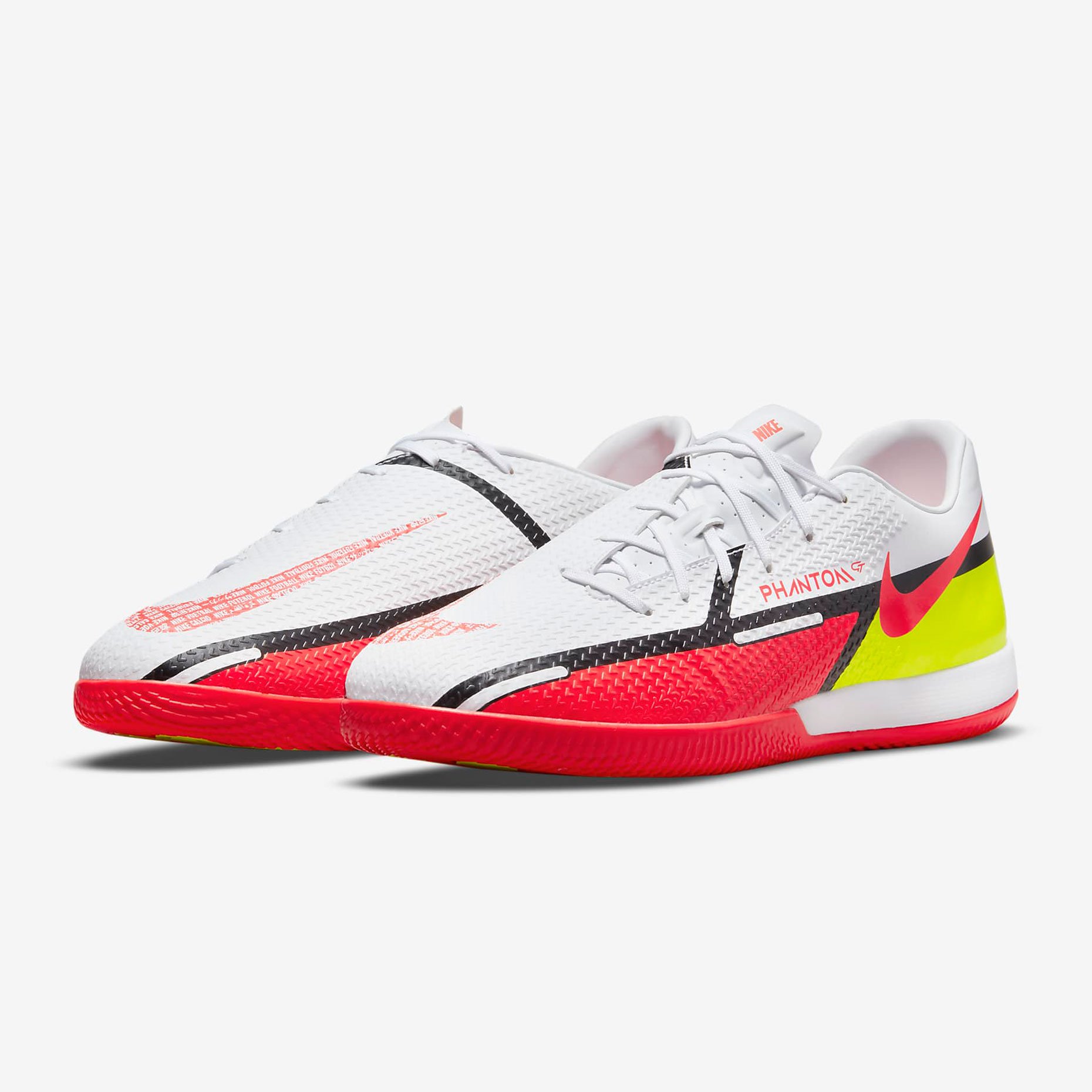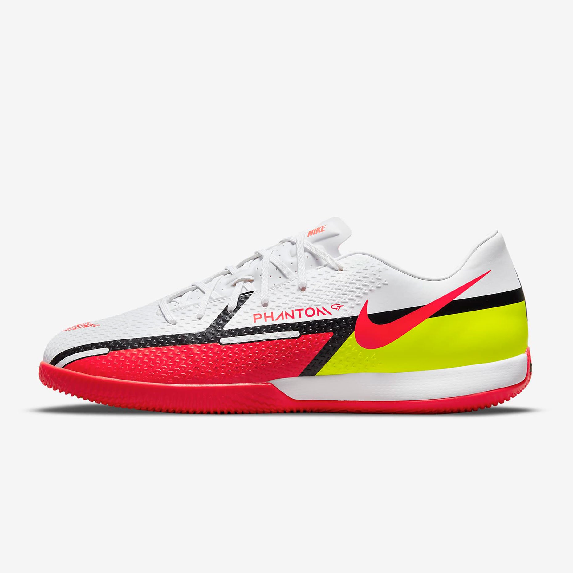 Футбольная обувь для зала Nike Phantom GT2  из линейки Phantom GT в обновленном дизайне и ярким узором выделят тебя на поле. Боковая шнуровка увеличивает зону удара, а текстурированный верх предназначен для лучшего контроля мяча, точных передач и ударов.
