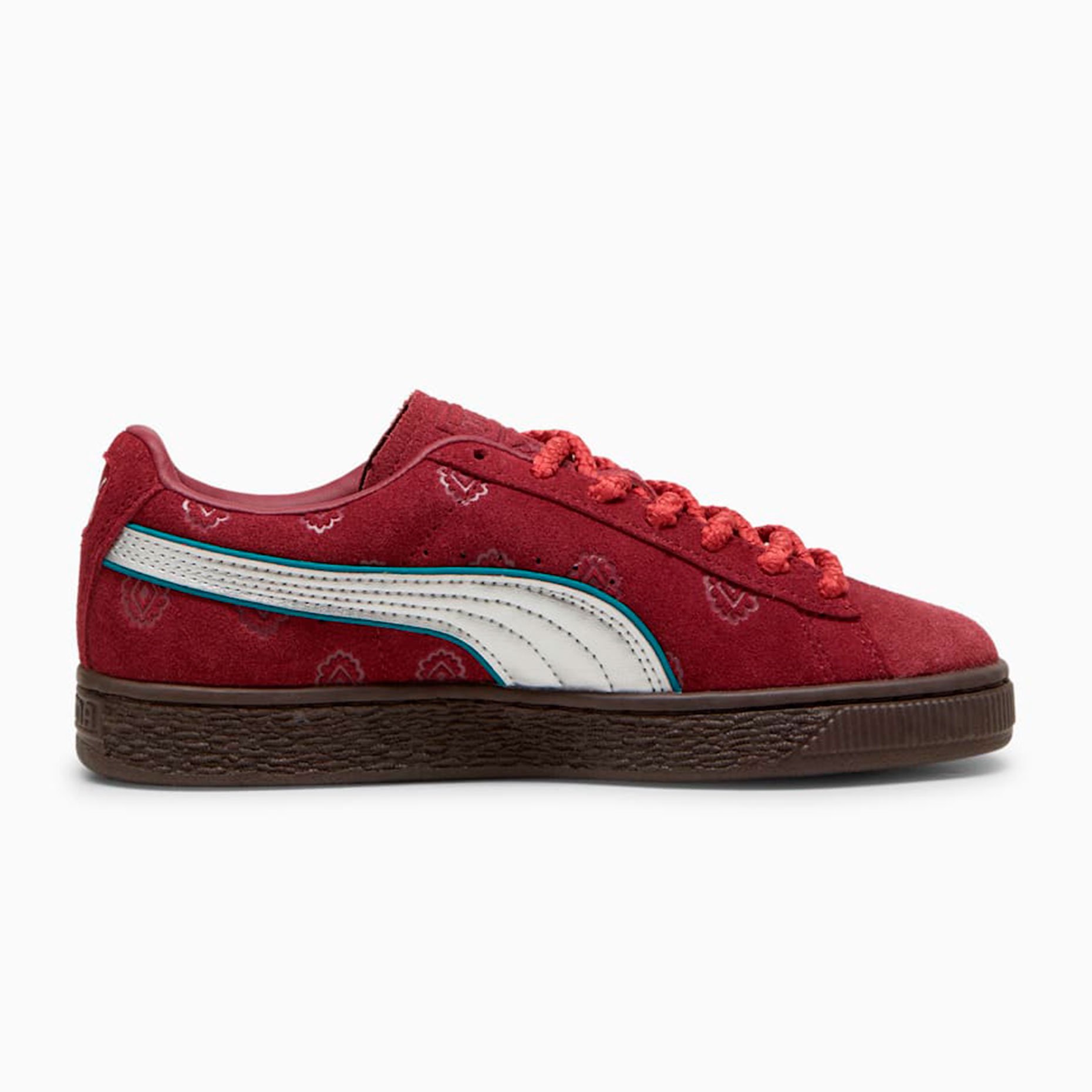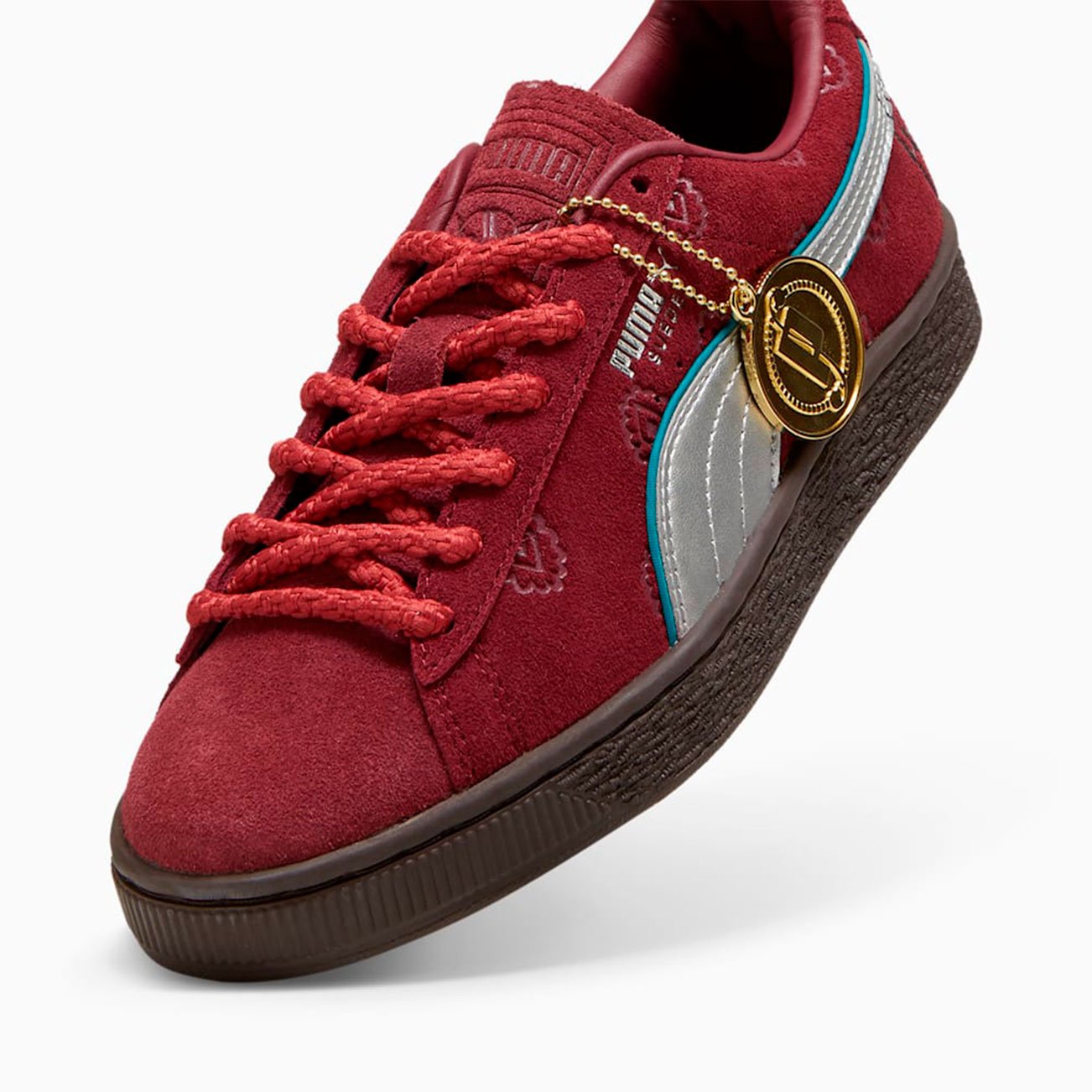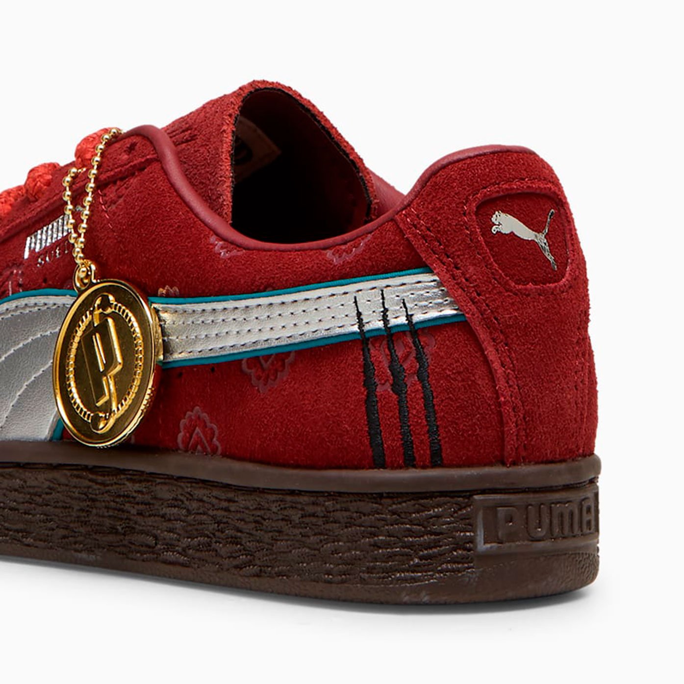 Верх кед выполнен из мягкой меховой замши и накладками из натуральной кожи, обеспечивающими долговечность и стильный внешний вид. Золотая металлическая бирка сбоку подчеркивает эксклюзивность коллекции, а уникальные детали, такие как тисненый логотип PUMA Cat на одной пятке и череп на другой, создают атмосферу приключений.