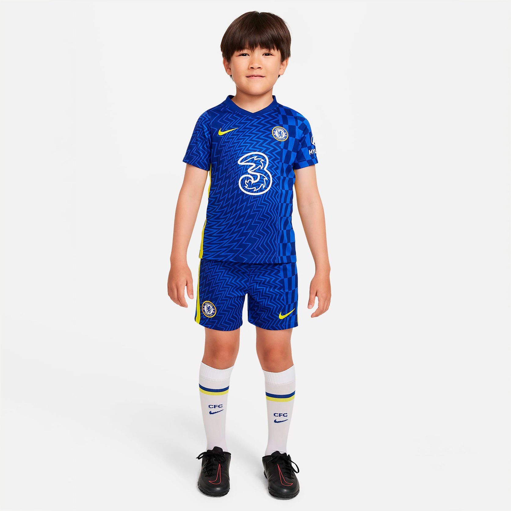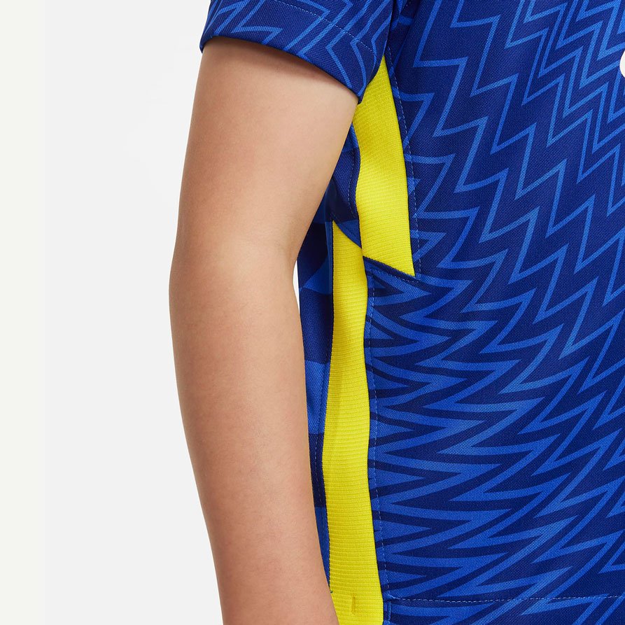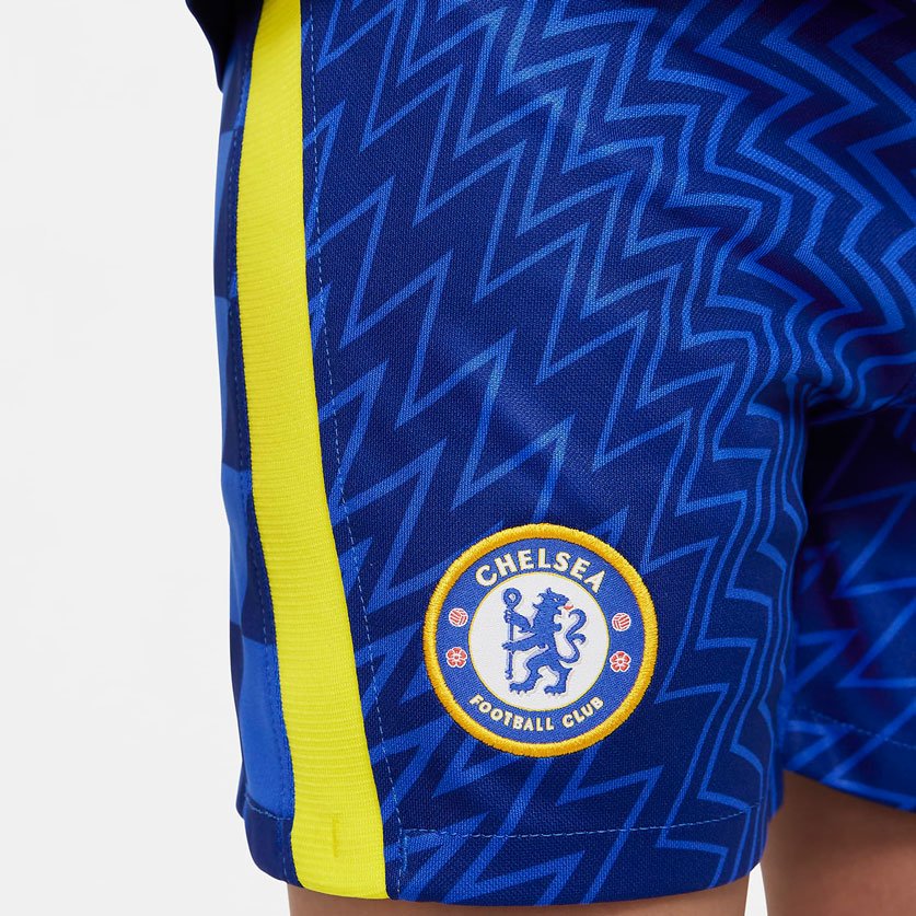 Комплект десткой домашней формы Chelsea FC сочетает в себе аутентичные детали дизайна с легкой быстросохнущей тканью, которая обеспечивает охлаждение и комфорт для лучших игроков на поле. Комплект включает в себя джерси, шорты и гетры. Товар на 100% выполнен из переработанного полиэстера.
