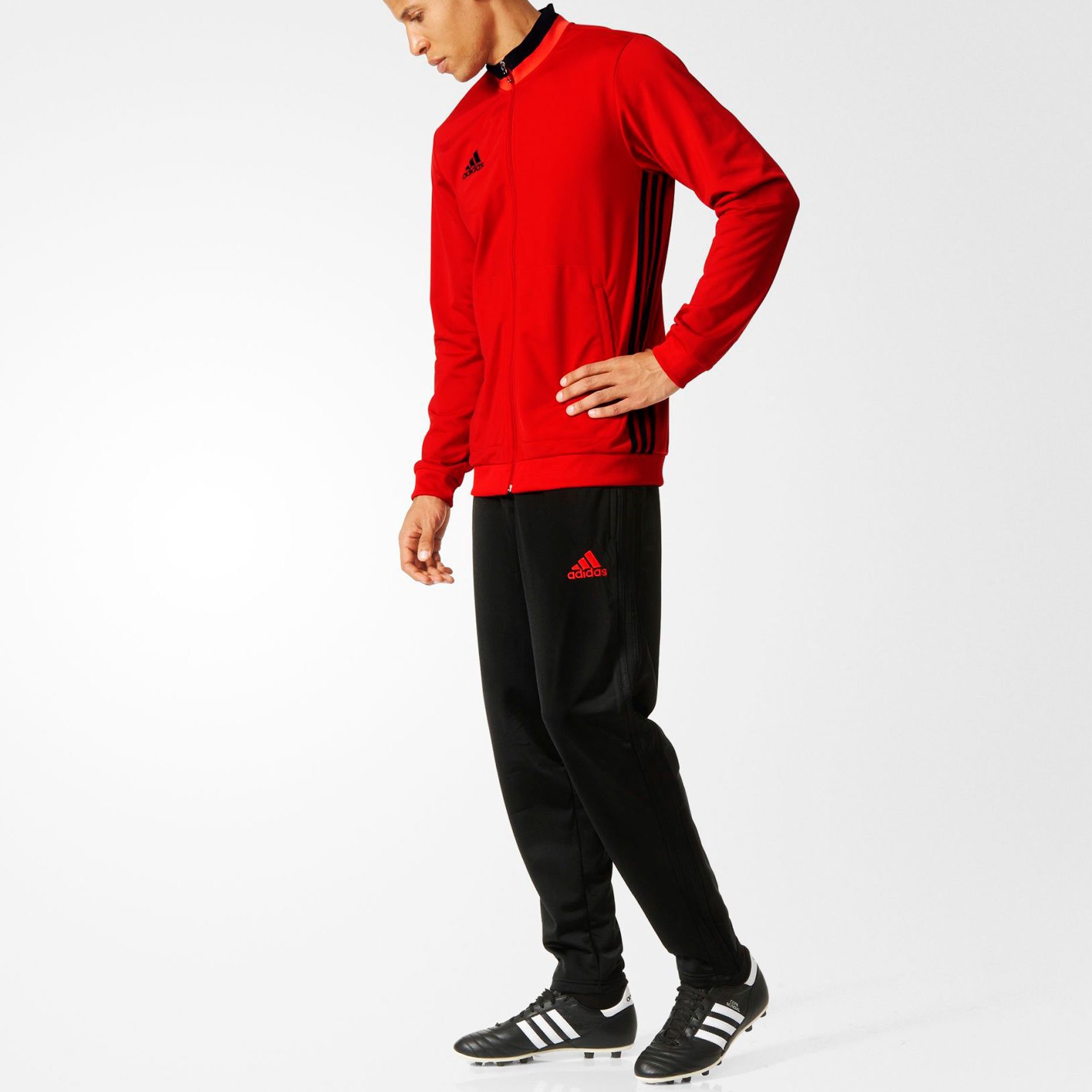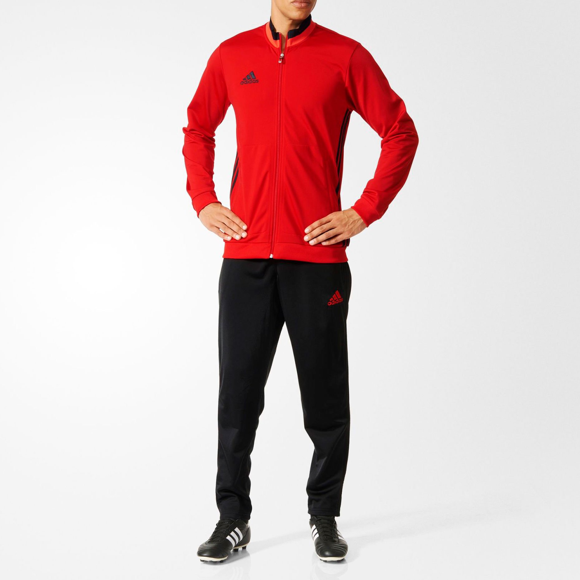 Тренировочный костюм adidas Condivo 16 включает куртку на молнии и брюки с регулируемой посадкой для абсолютного комфорта. Влагоотводящая ткань и детали из сетки обеспечивают комфорт и охлаждение во время тренировок и в любой другой ситуации.