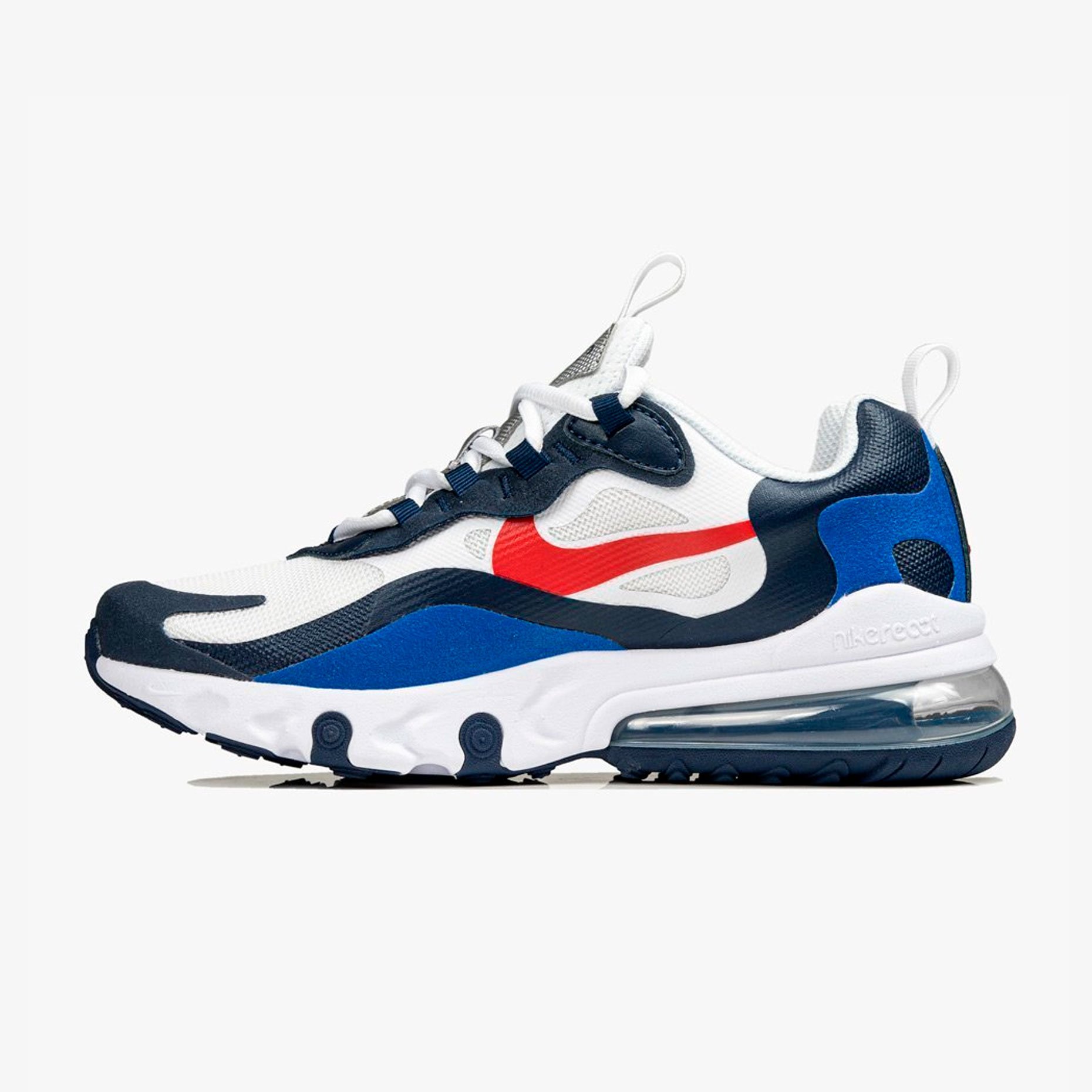 Детские Nike Air Max 270 React University являются отличным выбором для спортивных активностей или повседневной носки детей.