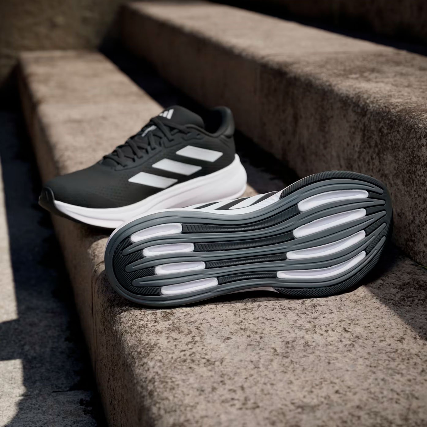 Резиновые стержни, проходящие по всей длине подошвы, обеспечивают отличное сцепление с различными поверхностями, что делает эти кроссовки надёжными спутниками как на асфальте, так и на грунтовых дорожках. Особую ценность представляет экологичный подход к производству — использование не менее 20% переработанных материалов делает эту модель более дружественной к окружающей среде.
