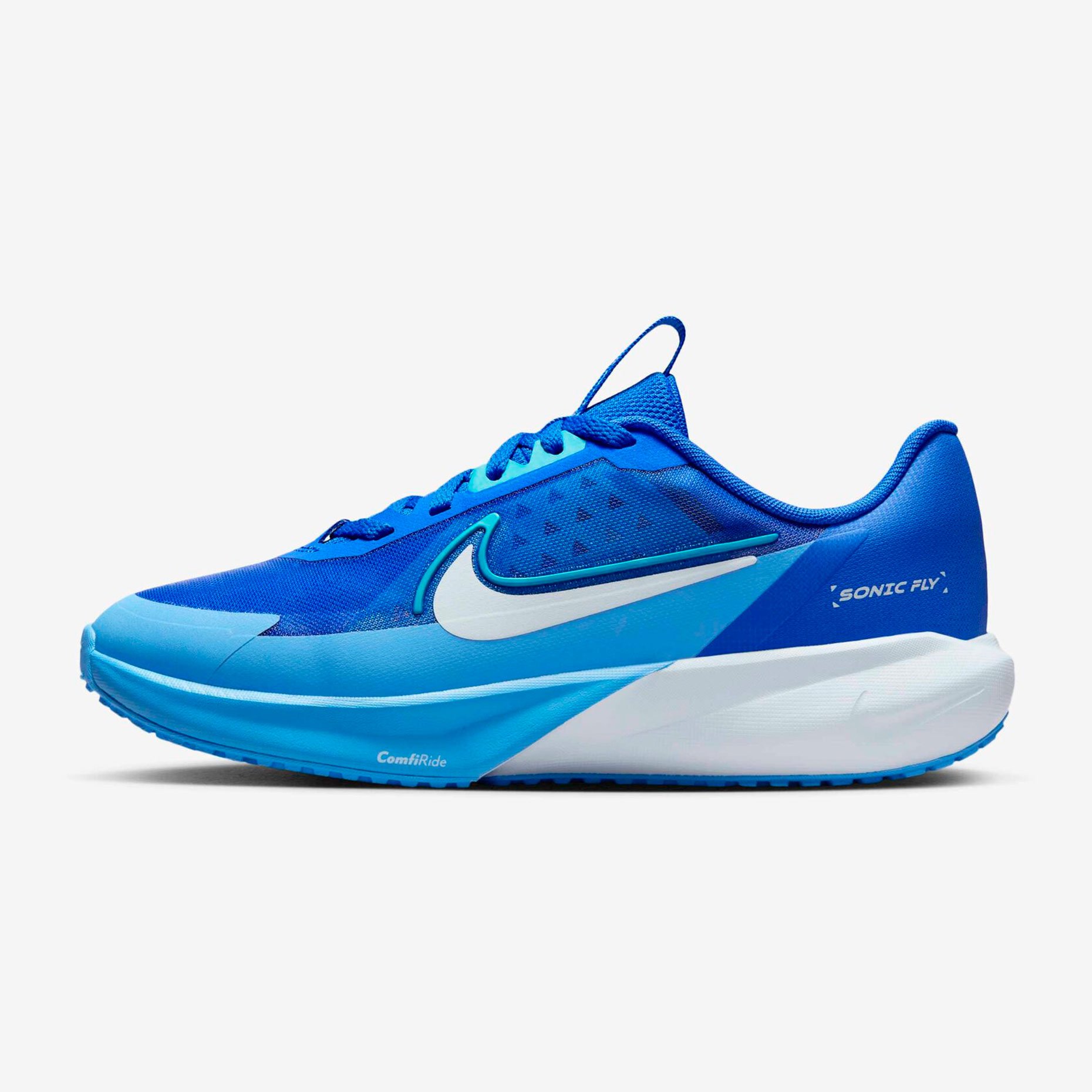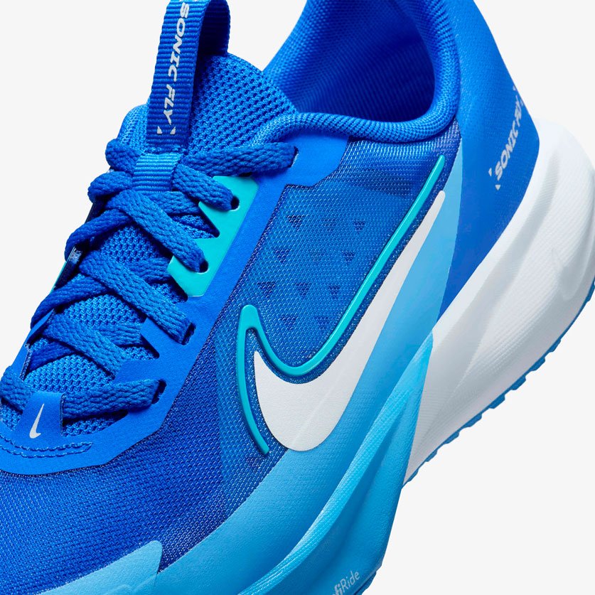 Кроссовки для бега детские Nike Sonic Fly GS созданы специально для юных бегунов, которые только начинают свой путь к спортивным достижениям. Модель отличается инновационной конструкцией с мягкой амортизирующей пеной в подошве, которая не только поглощает удары при беге, но и придает дополнительную энергию каждому шагу, помогая ребенку бежать быстрее и легче.