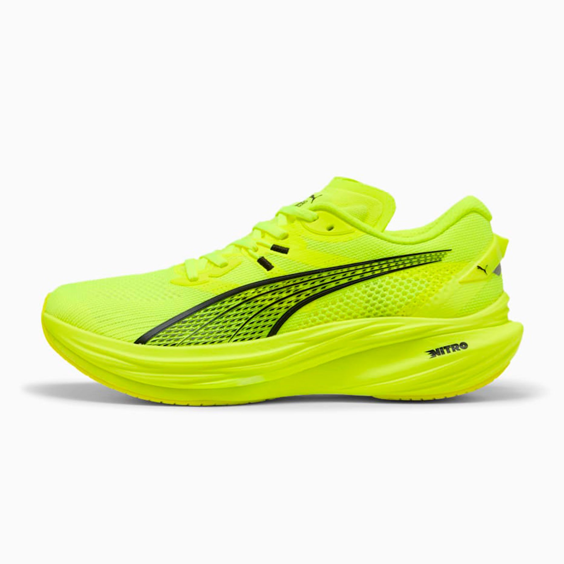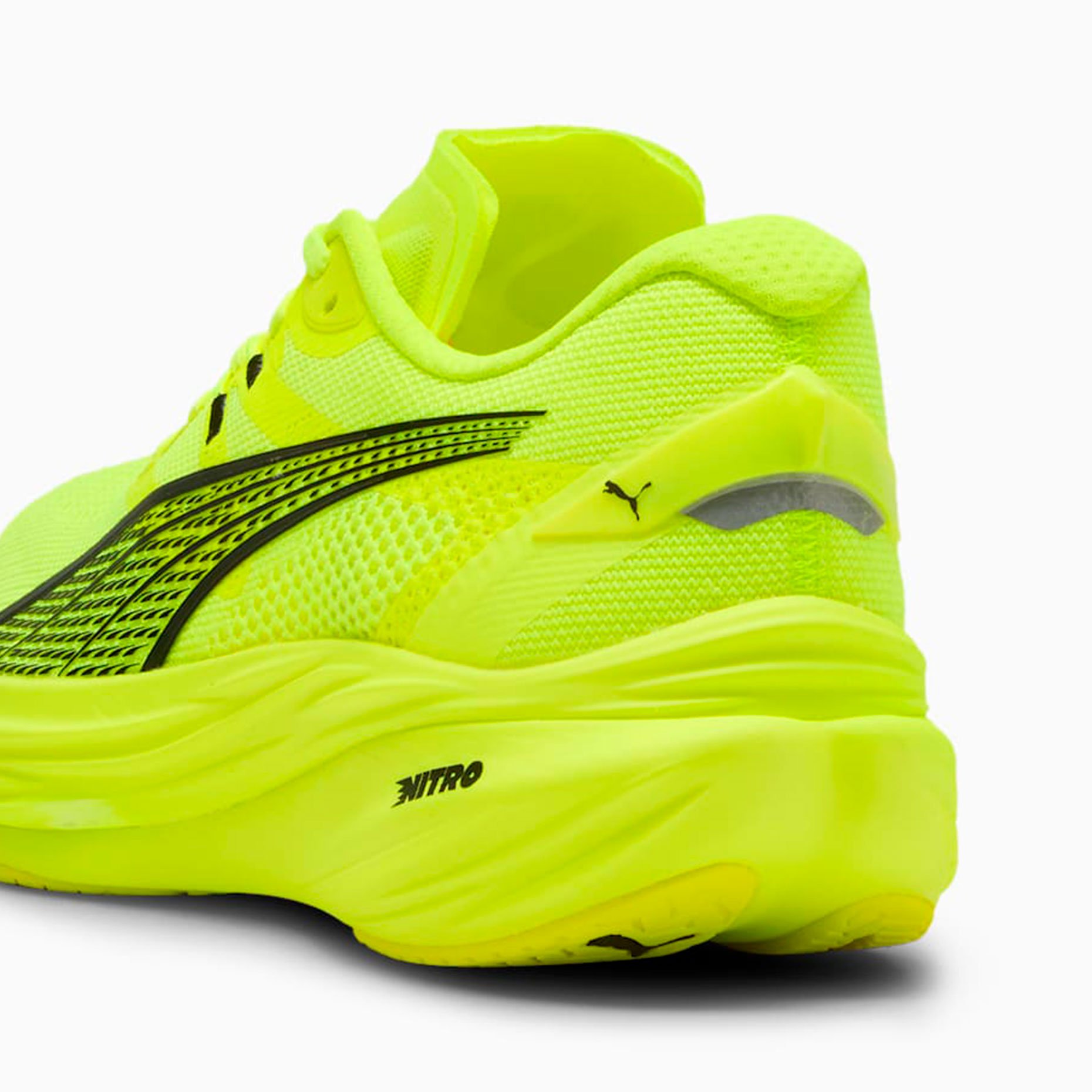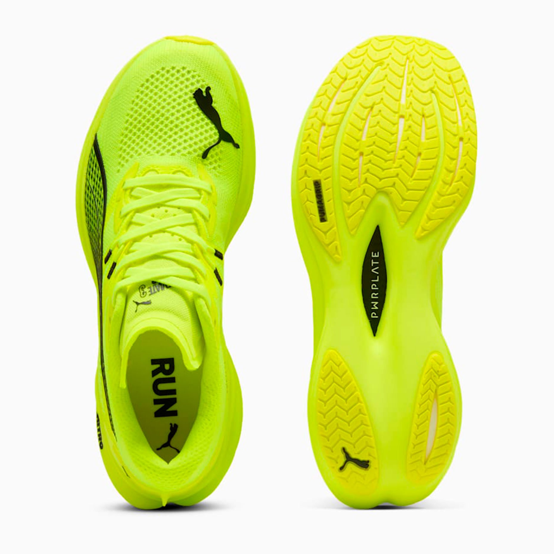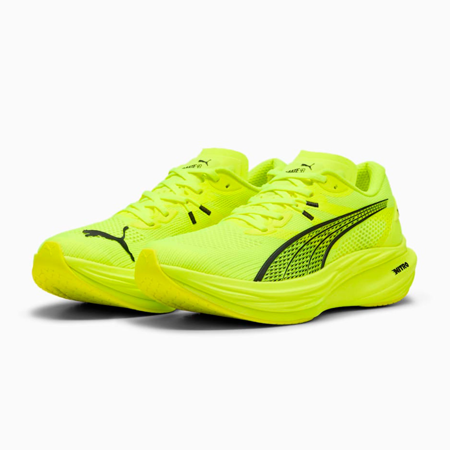 Кроссовки для бега Puma Deviate NITRO 3 — это инновационная модель, созданная для тех, кто стремится к максимальной производительности на каждой тренировке. Они сочетают в себе передовые технологии, такие как пена NITROFOAM и карбоновая пластина PWRPLATE, чтобы обеспечить непревзойденную упругость и скорость. Пена NITROFOAM, заполненная азотом, обеспечивает взрывную энергию и комфорт, а карбоновая пластина PWRPLATE с раздвоенной конструкцией максимально эффективно передает энергию при отталкивании, помогая вам бежать быстрее и дальше.