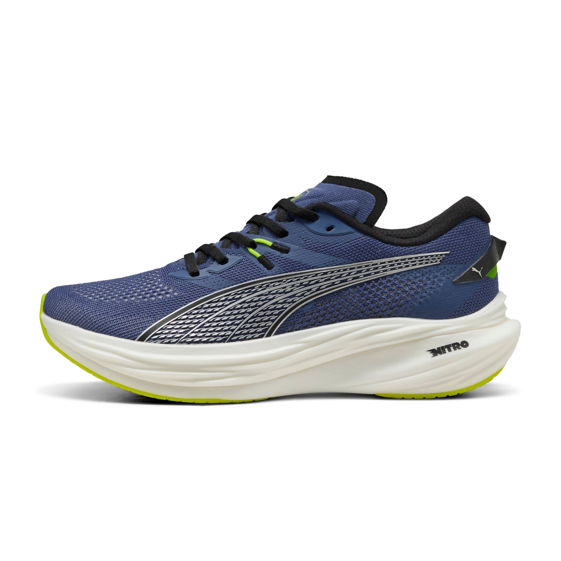 Кроссовки для бега Puma Deviate NITRO 3 — это инновационная модель, созданная для тех, кто стремится к максимальной производительности на каждой тренировке. Они сочетают в себе передовые технологии, такие как пена NITROFOAM и карбоновая пластина PWRPLATE, чтобы обеспечить непревзойденную упругость и скорость. Пена NITROFOAM, заполненная азотом, обеспечивает взрывную энергию и комфорт, а карбоновая пластина PWRPLATE с раздвоенной конструкцией максимально эффективно передает энергию при отталкивании, помогая вам бежать быстрее и дальше.