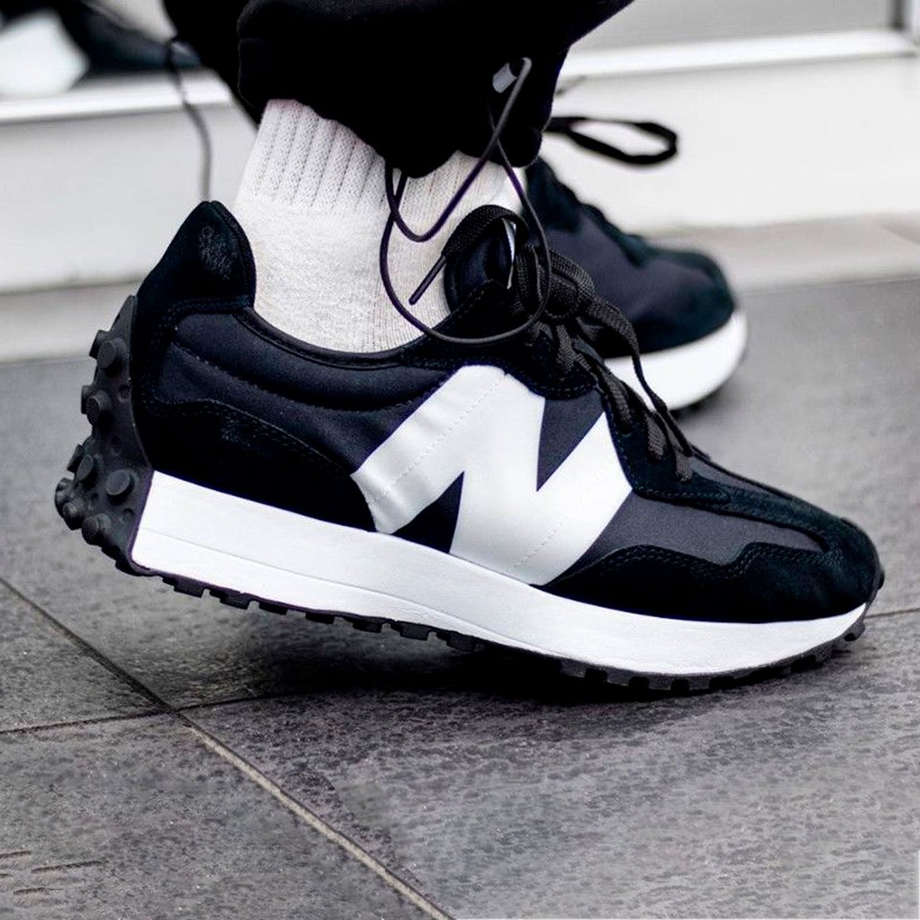 Резиновая подошва с выступами не только придает кроссовкам стильный вид, но и расширяет пятку и носок, обеспечивая улучшенную прочность и долговечность. Такие технологические решения делают New Balance 327 Black White идеальными для разнообразных приключений и активного образа жизни.