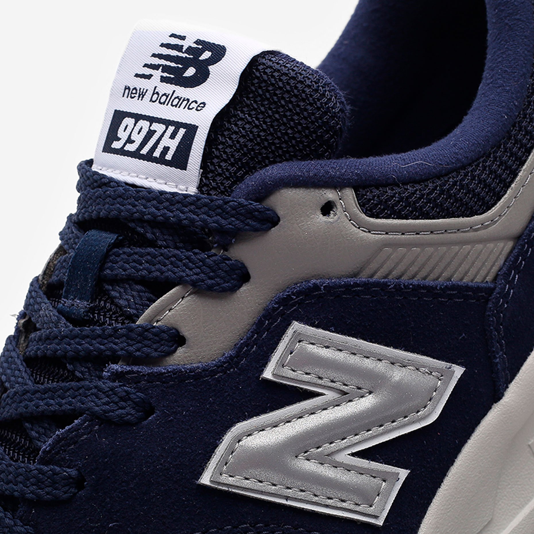 Дизайн кроссовок выполнен в универсальных серых и темно-синих оттенках, что делает их подходящими для различных стилей и повседневного использования. Логотип бренда на язычке, боковой панели и заднике добавляет узнаваемости и завершает стильный облик кроссовок New Balance 997H.