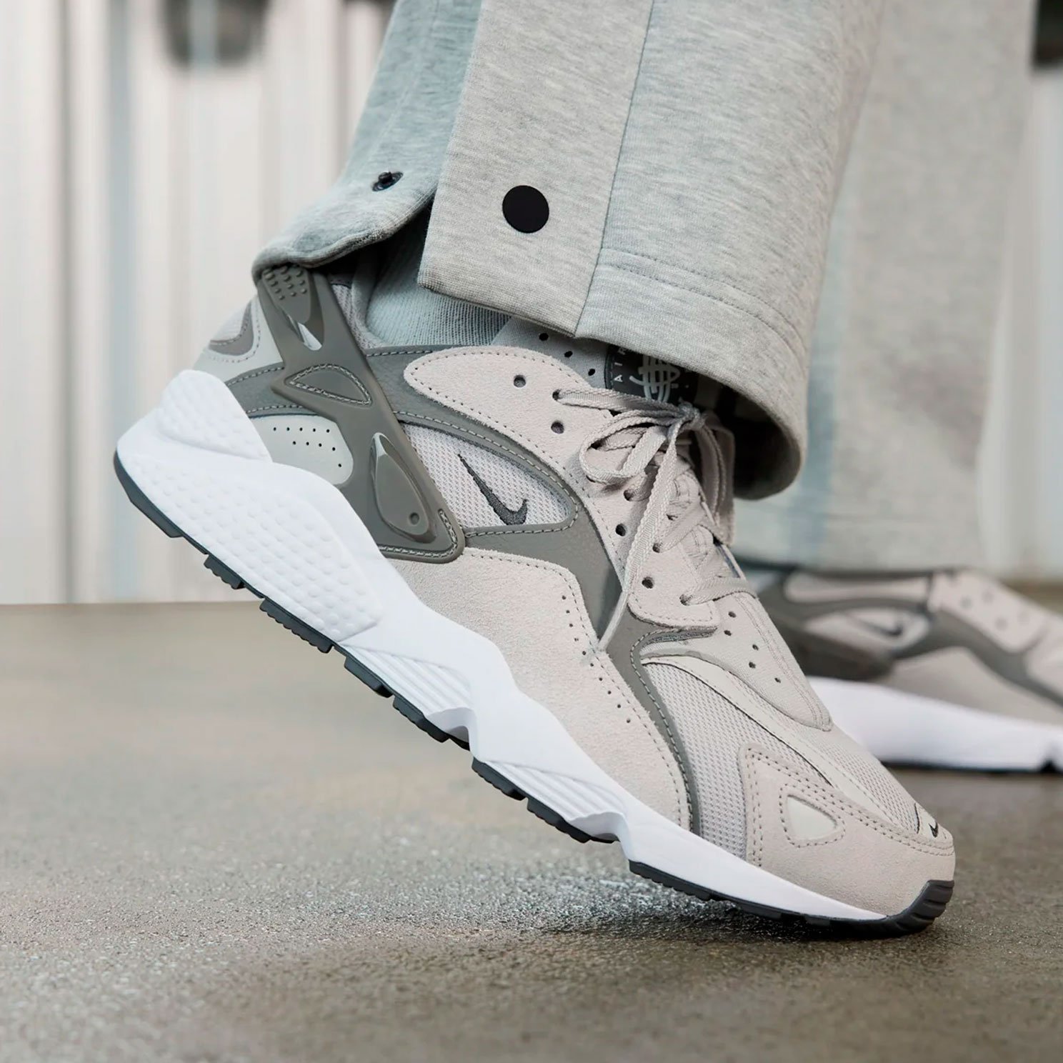 Кроссовки выполнены в утонченном цвете Light Iron Ore, который придает им стильный и современный вид. Верх из сочетания неопрена и искусственной кожи обеспечивает отличную посадку и долговечность. Традиционные элементы дизайна, такие как фирменная пятка Huarache с резиновой вставкой и текстильная внутренняя часть, создают идеальную фиксацию и комфорт.