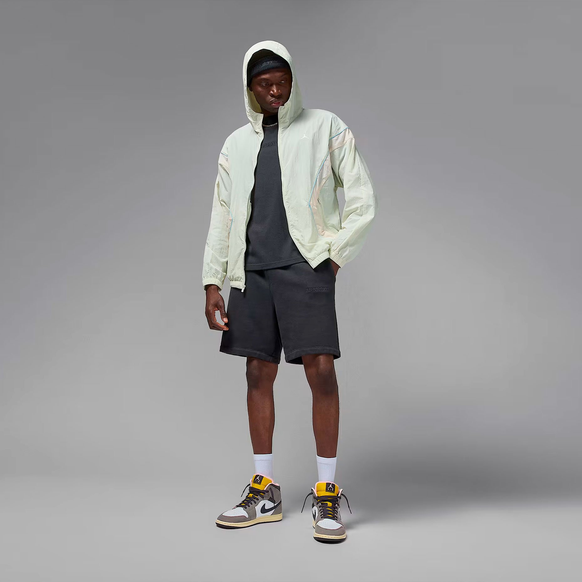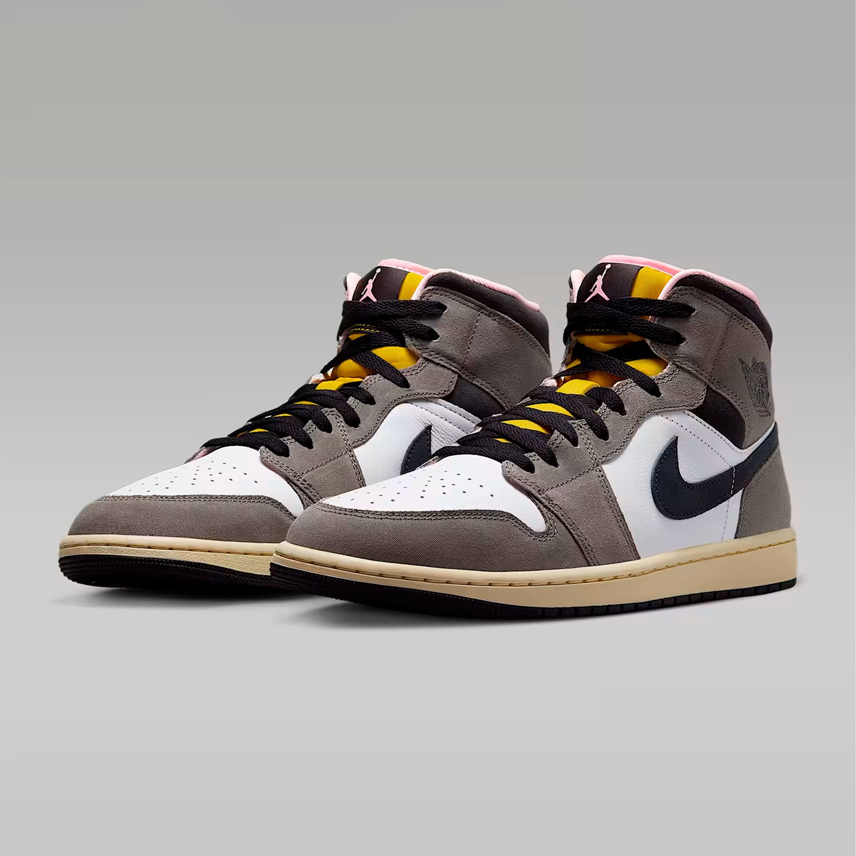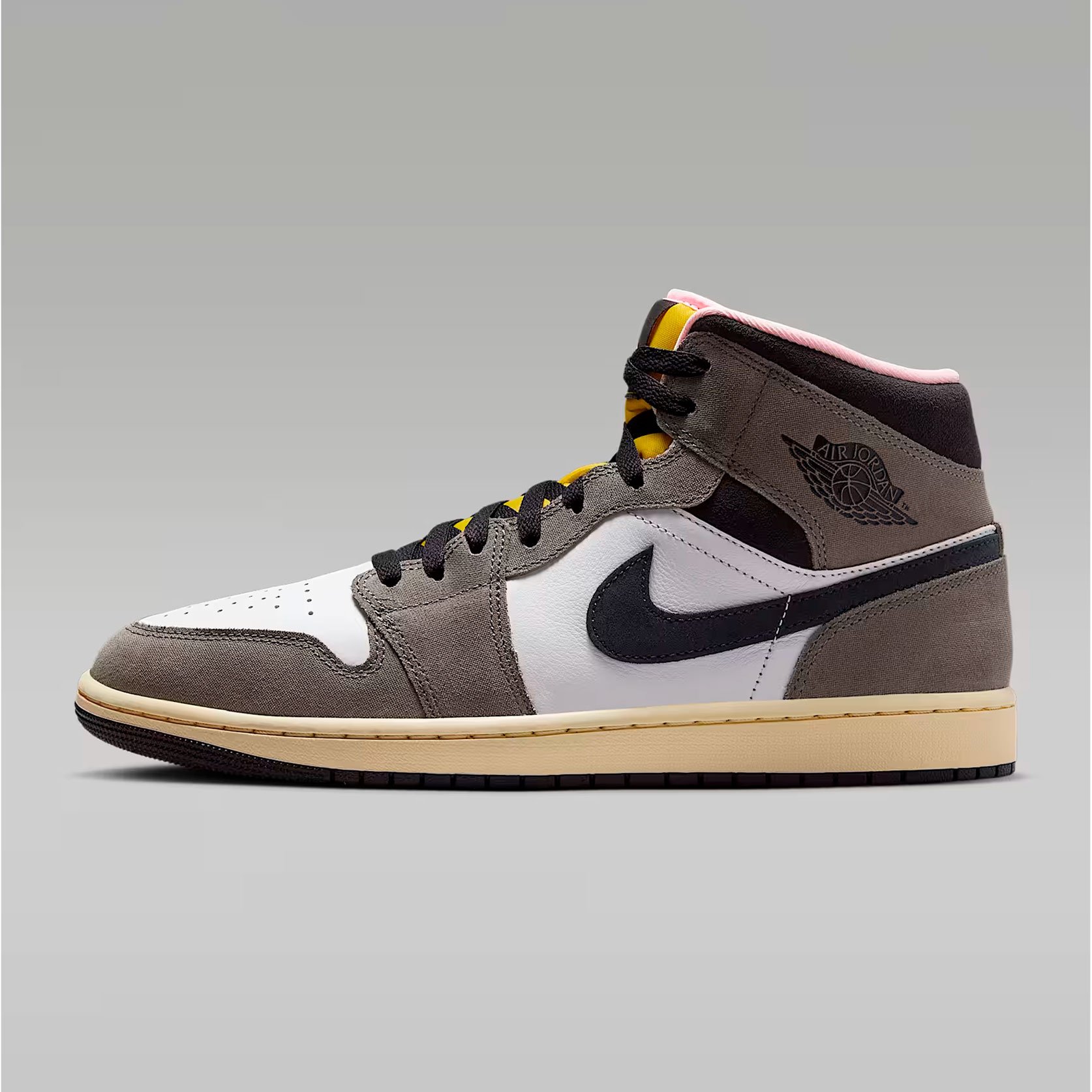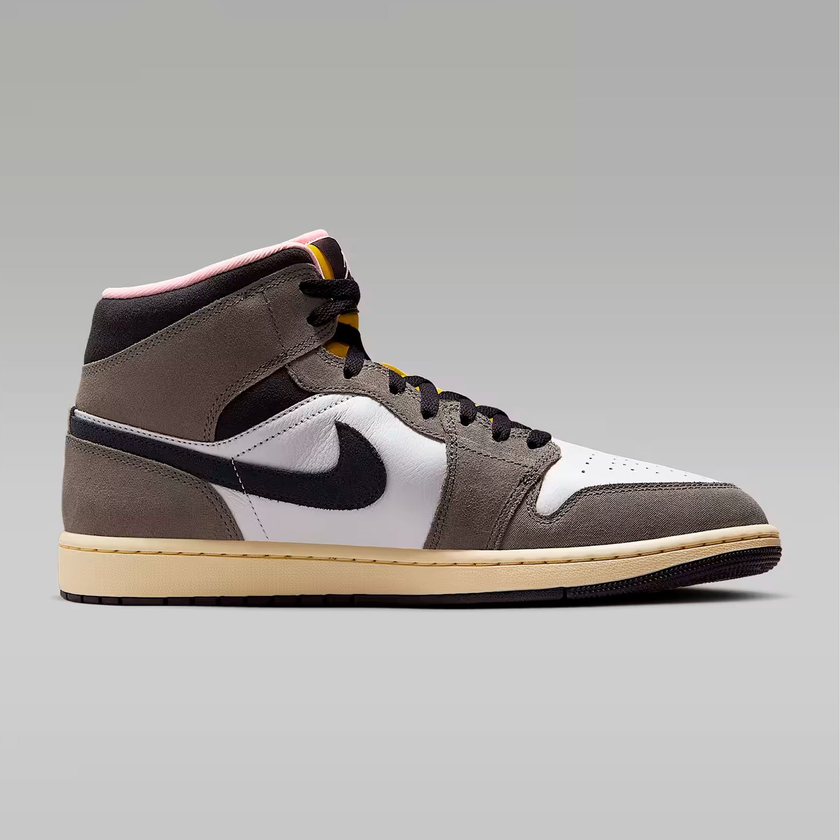 Кроссовки Nike Air Jordan 1 Mid SE 'Cave Stone' — это модель, которая сочетает в себе премиальные материалы и уникальный дизайн. Верх кроссовок выполнен из комбинации парусины, кожи и замши, а изысканная цветовая гамма, включающая белый, оттенок пещерного камня, тёмно-серый и масляно-серый цвета, создаёт неповторимый внешний вид, который обязательно привлечёт внимание поклонников баскетбола.