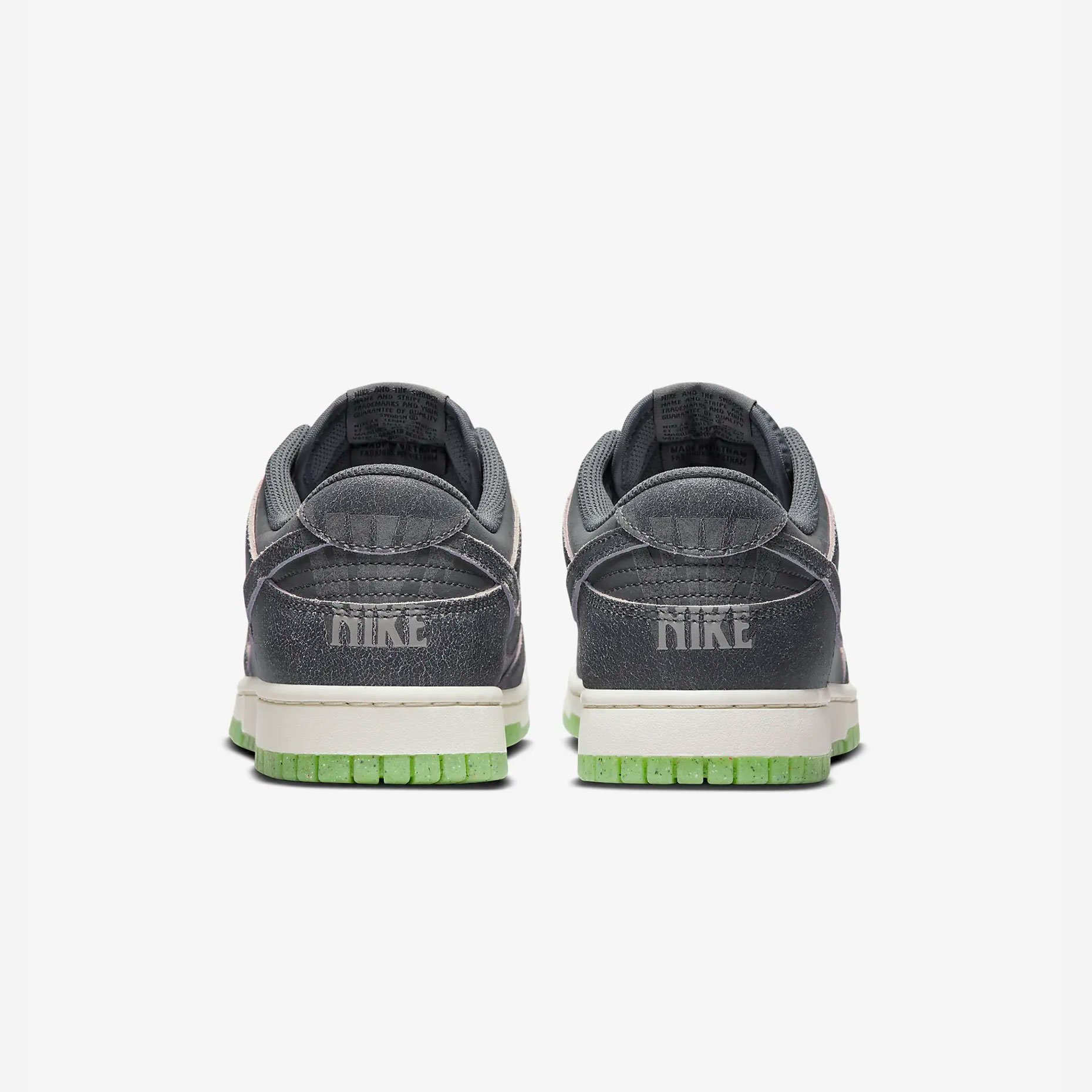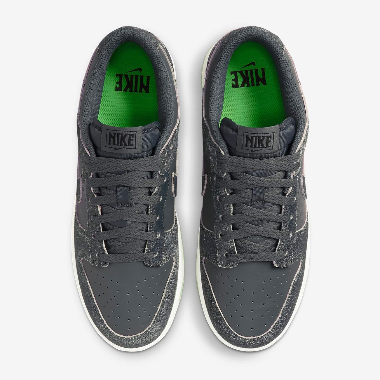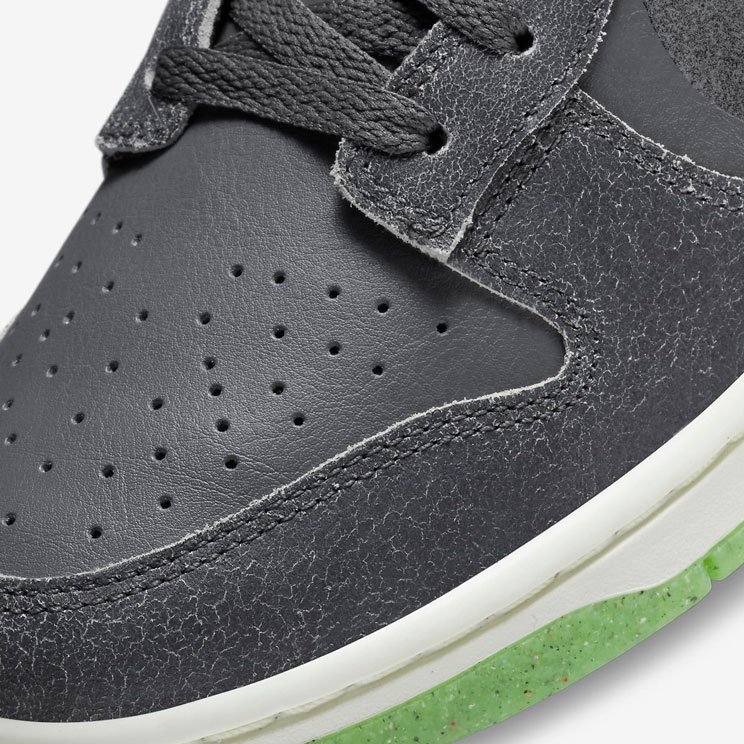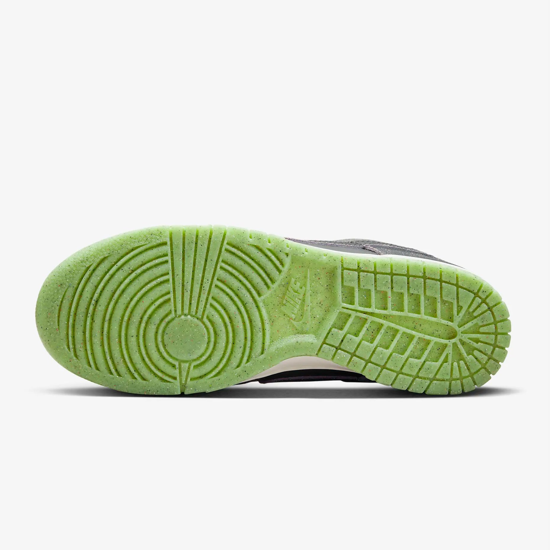 Подошва кроссовок выполнена в белом цвете, с салатовым контрастным цветом на подошве. Как и все модели Dunk, эти кроссовки имеют амортизирующую вставку в подошве и плотную посадку на ноге, обеспечивая комфорт при ходьбе и занятиях спортом.