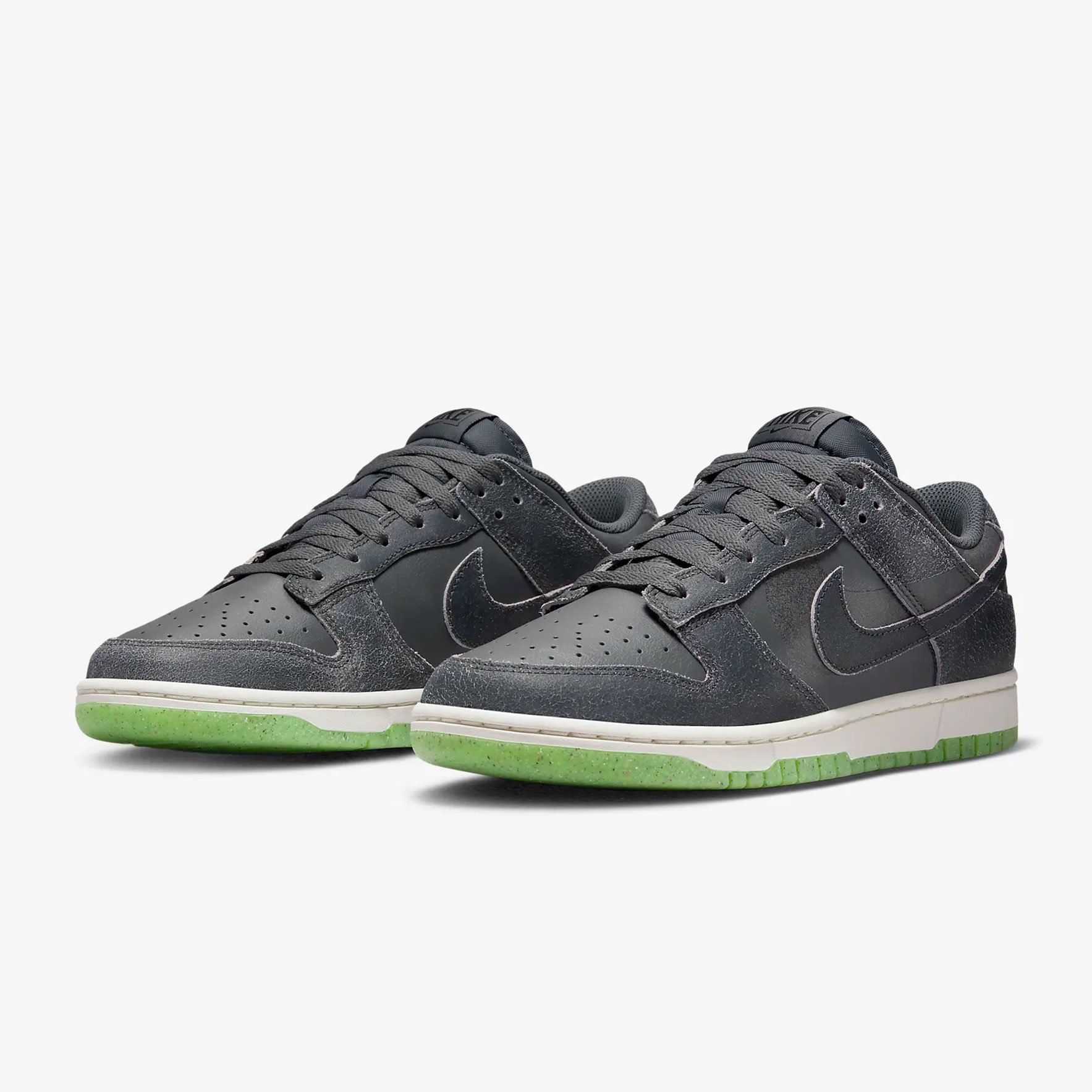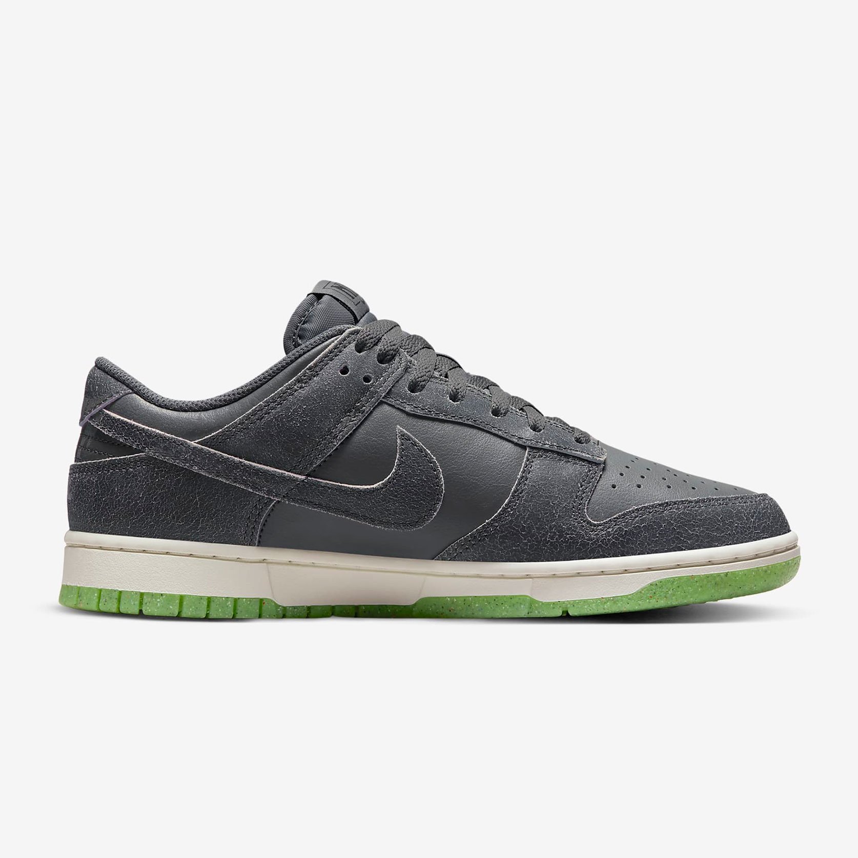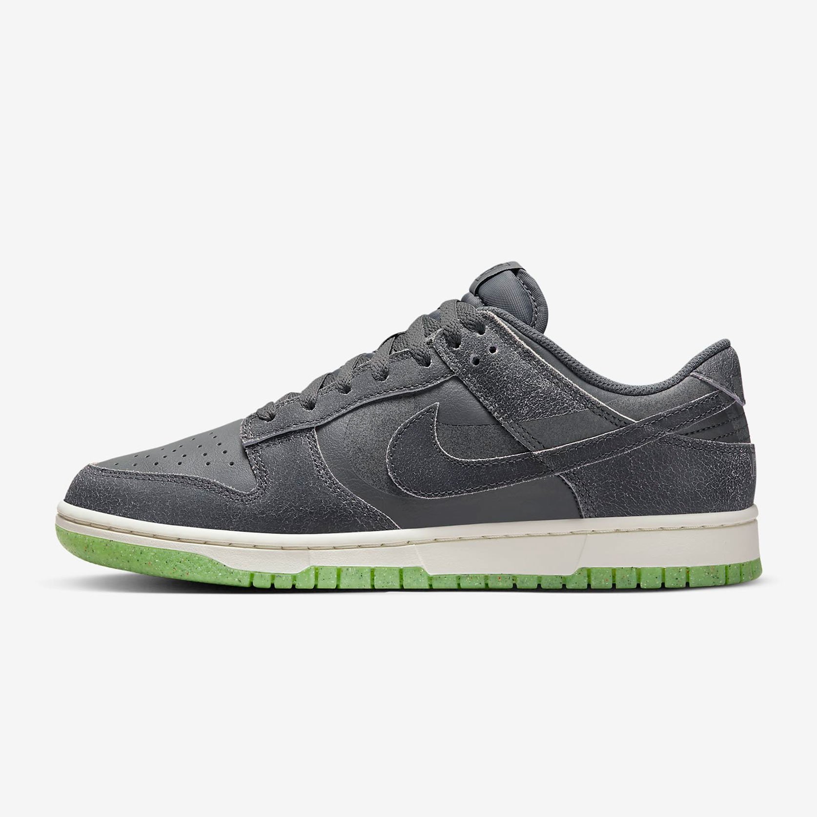 Подошва кроссовок выполнена в белом цвете, с салатовым контрастным цветом на подошве. Как и все модели Dunk, эти кроссовки имеют амортизирующую вставку в подошве и плотную посадку на ноге, обеспечивая комфорт при ходьбе и занятиях спортом.