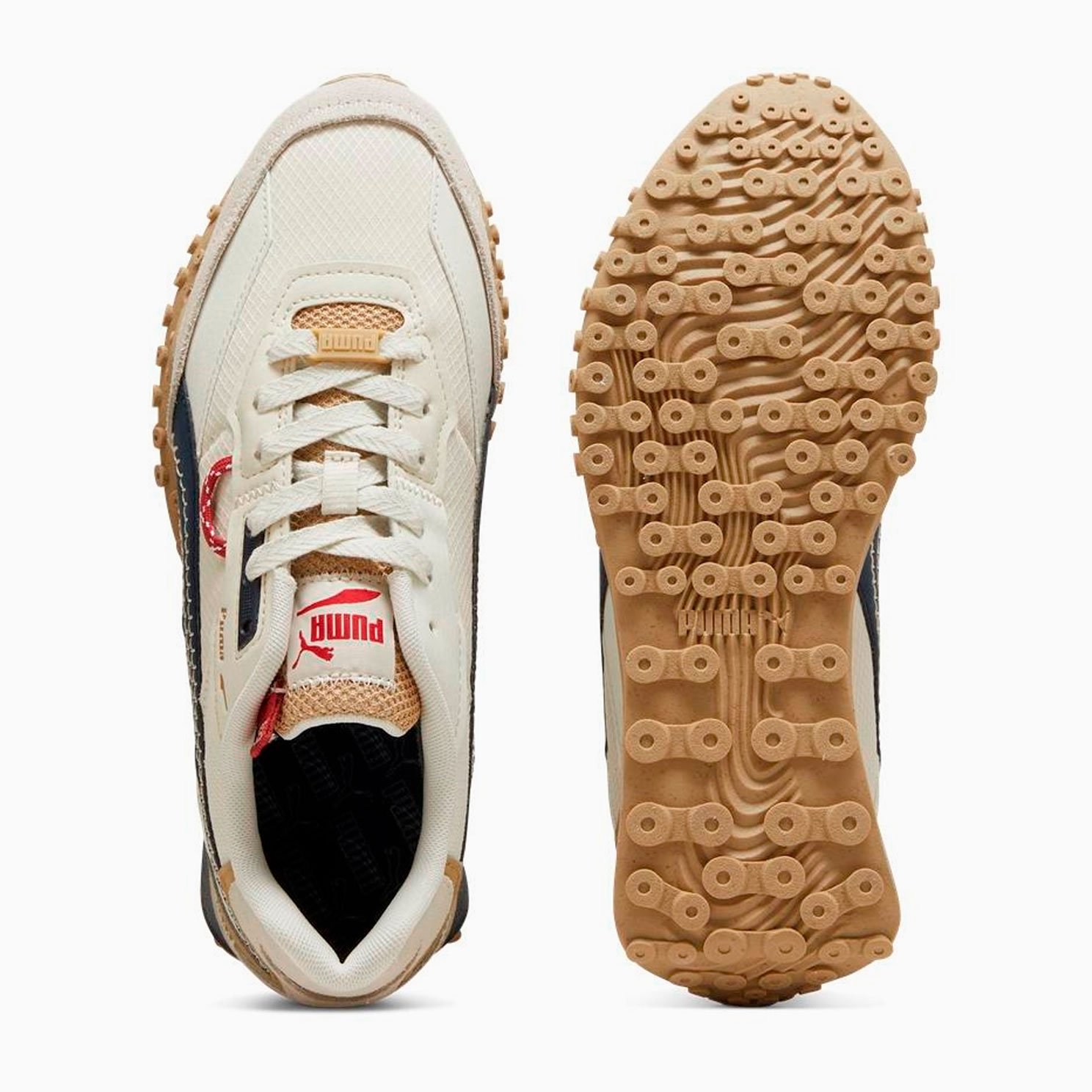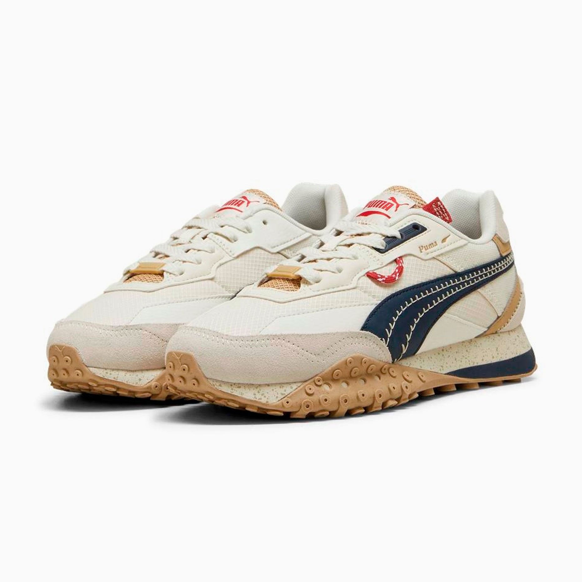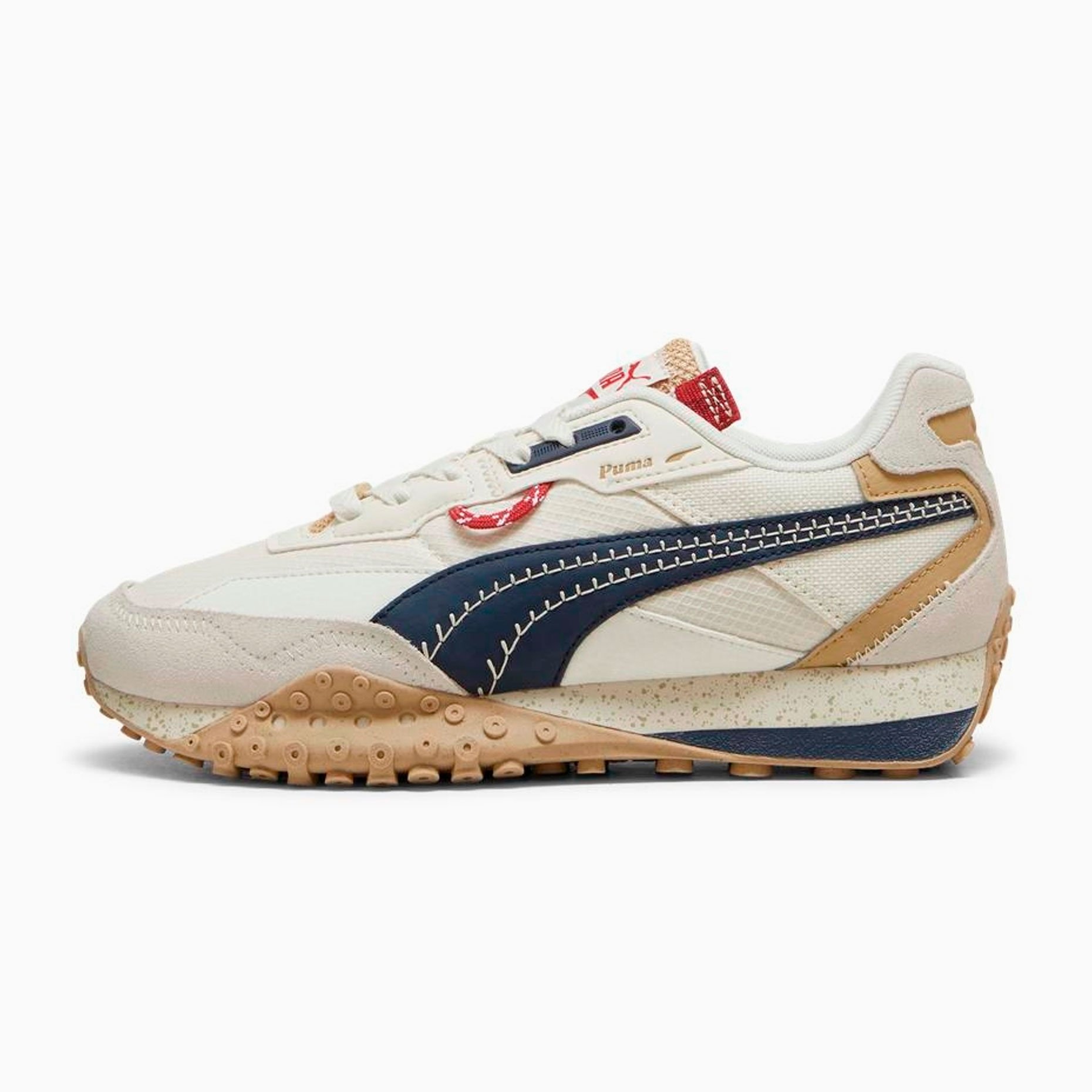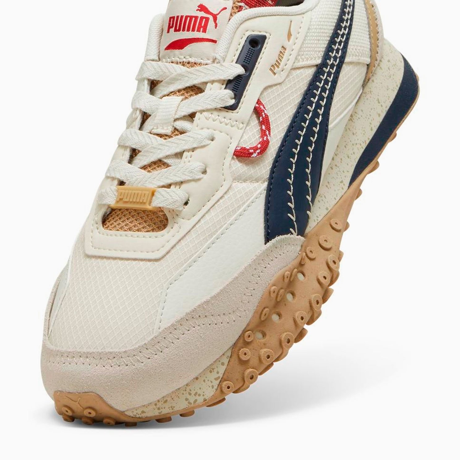 Модель Blktop Rider Expeditions отличается сложными деталями, такими как синтетическая полоска PUMA с прошитыми элементами, замшевый носок и пятка, а также вставки из синтетической кожи с тисненым логотипом PUMA. Формованное основание люверса из ТПУ и шнурки с отделкой из ТПУ добавляют стиля и функциональности. Сетчатая подкладка и промежуточная подошва из ЭВА обеспечивают комфорт и легкость.