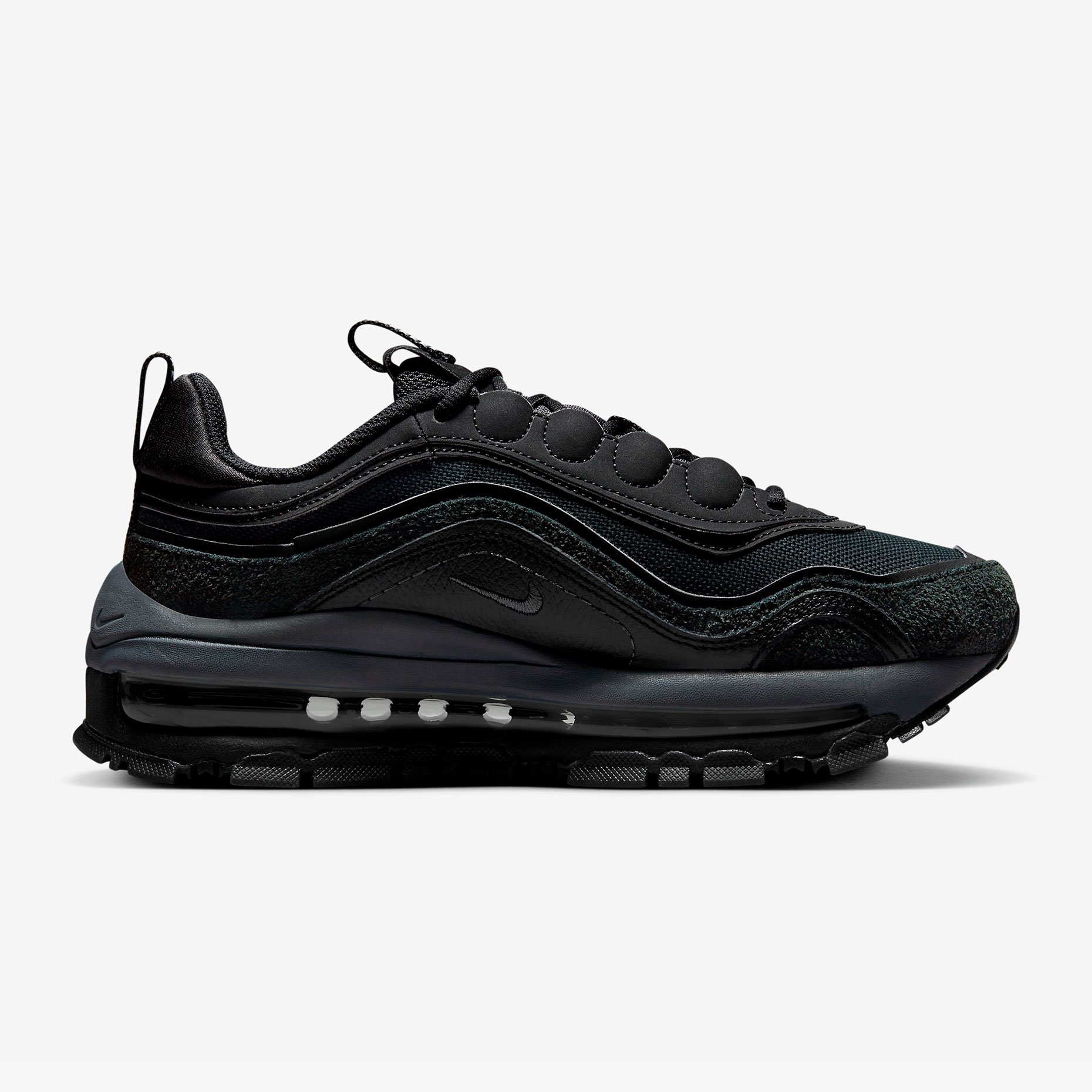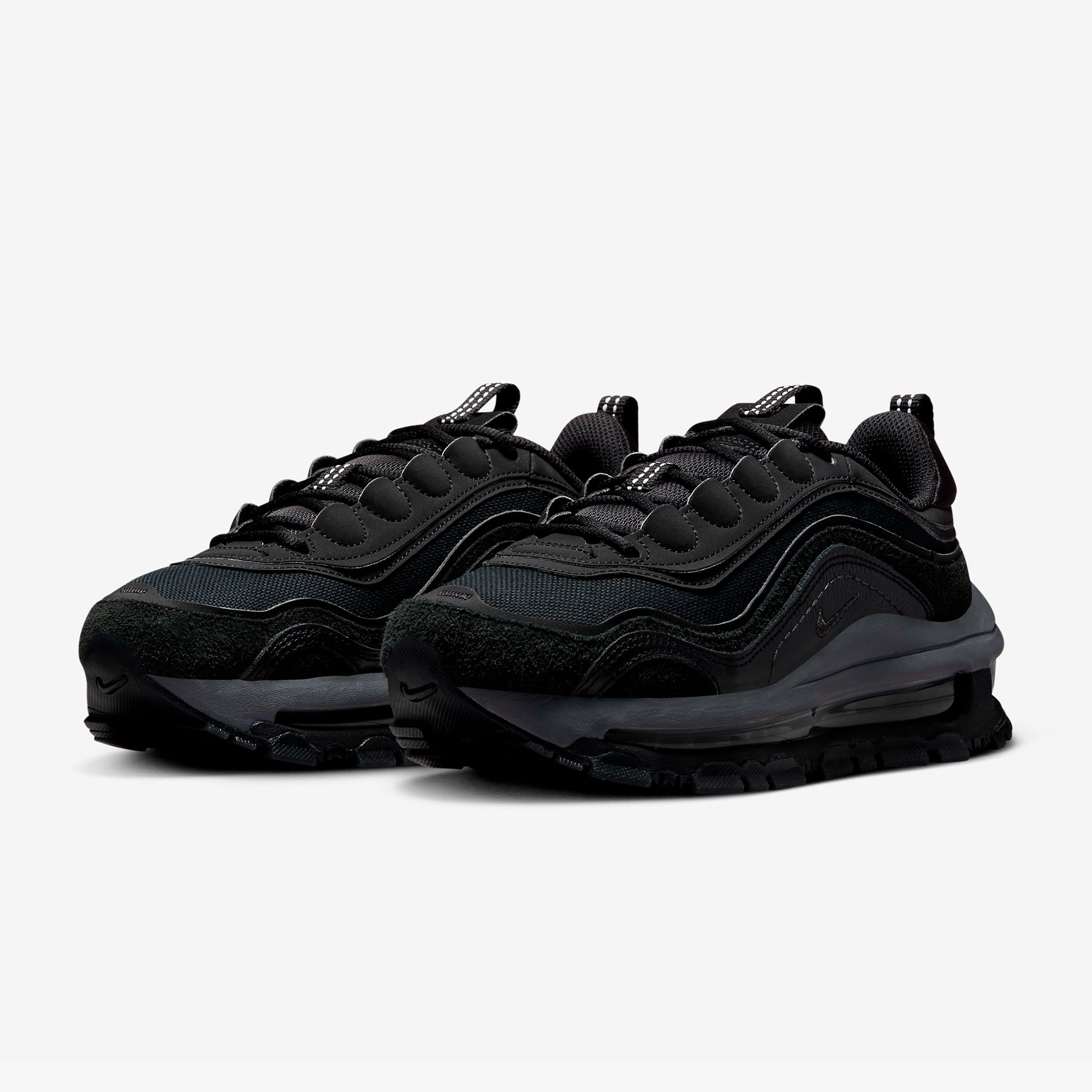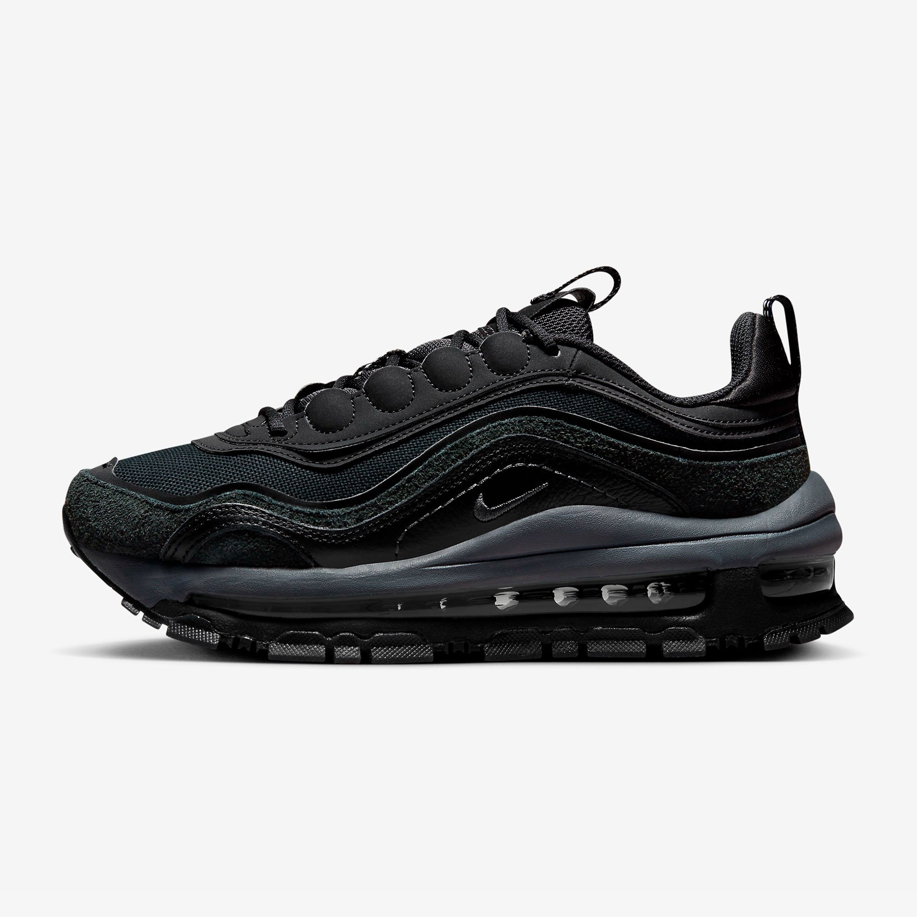 Кроссовки Nike Air Max 97 Futura — это современная интерпретация культовой модели, воплощающая в себе элегантность и комфорт. Уникальный дизайн, вдохновлённый морскими волнами, сочетается с премиальными материалами: кожей, текстилем и пушистой замшей, создавая изысканный многослойный образ.