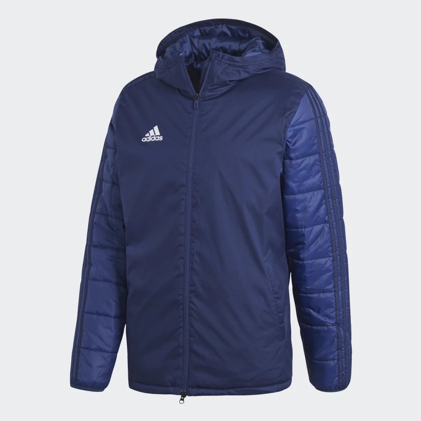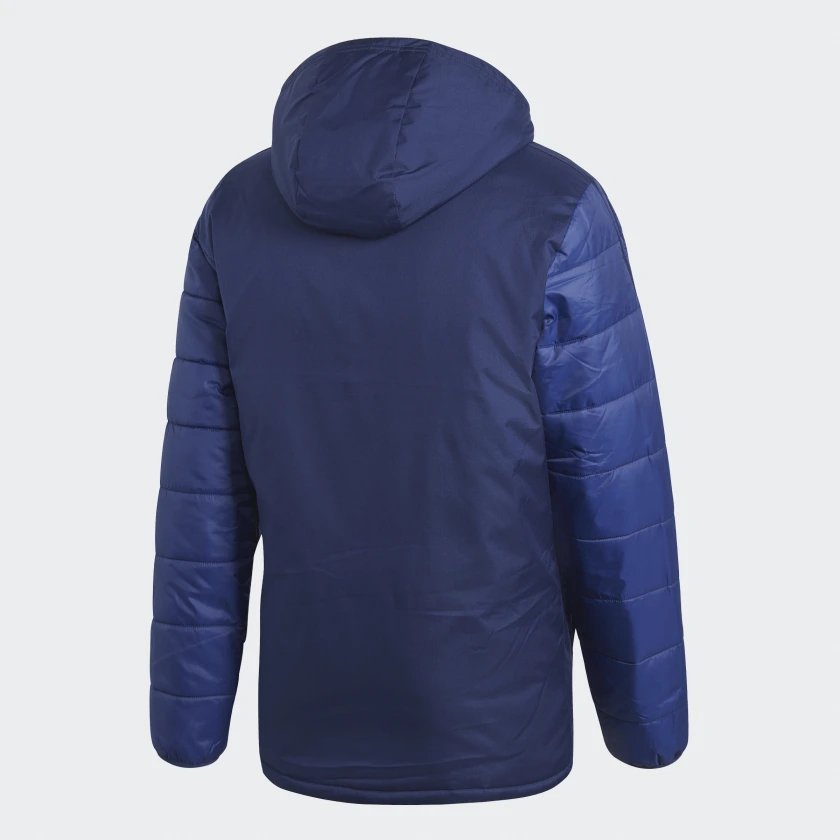 Мужская футбольная куртка для тренировок в прохладную погоду. Утепленная модель дополнена стегаными вставками на подкладке и рукавах. Застежка на молнию и глубокий прилегающий капюшон. Современный приталенный крой.