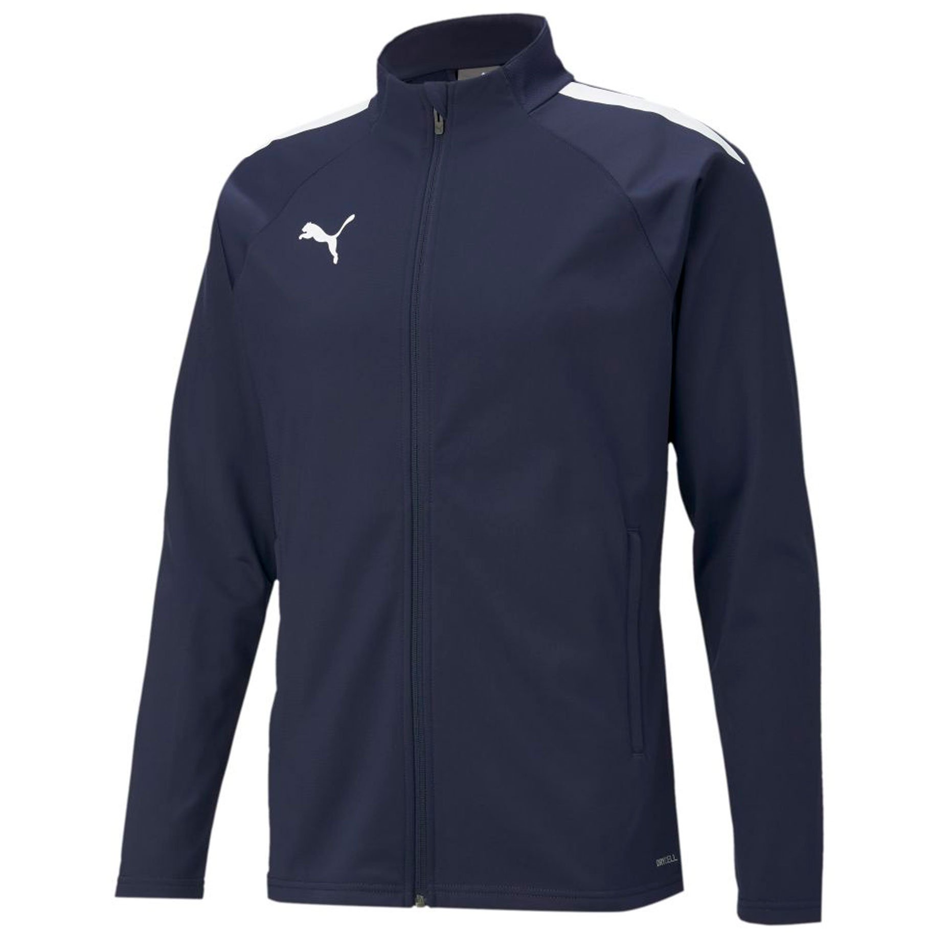 Куртка Puma teamLIGA Training Jacket выполнена из мягкой эластичной ткани с применением технологии DryCELL, которая эффективно впитывает влагу и отводит ее на поверхность.