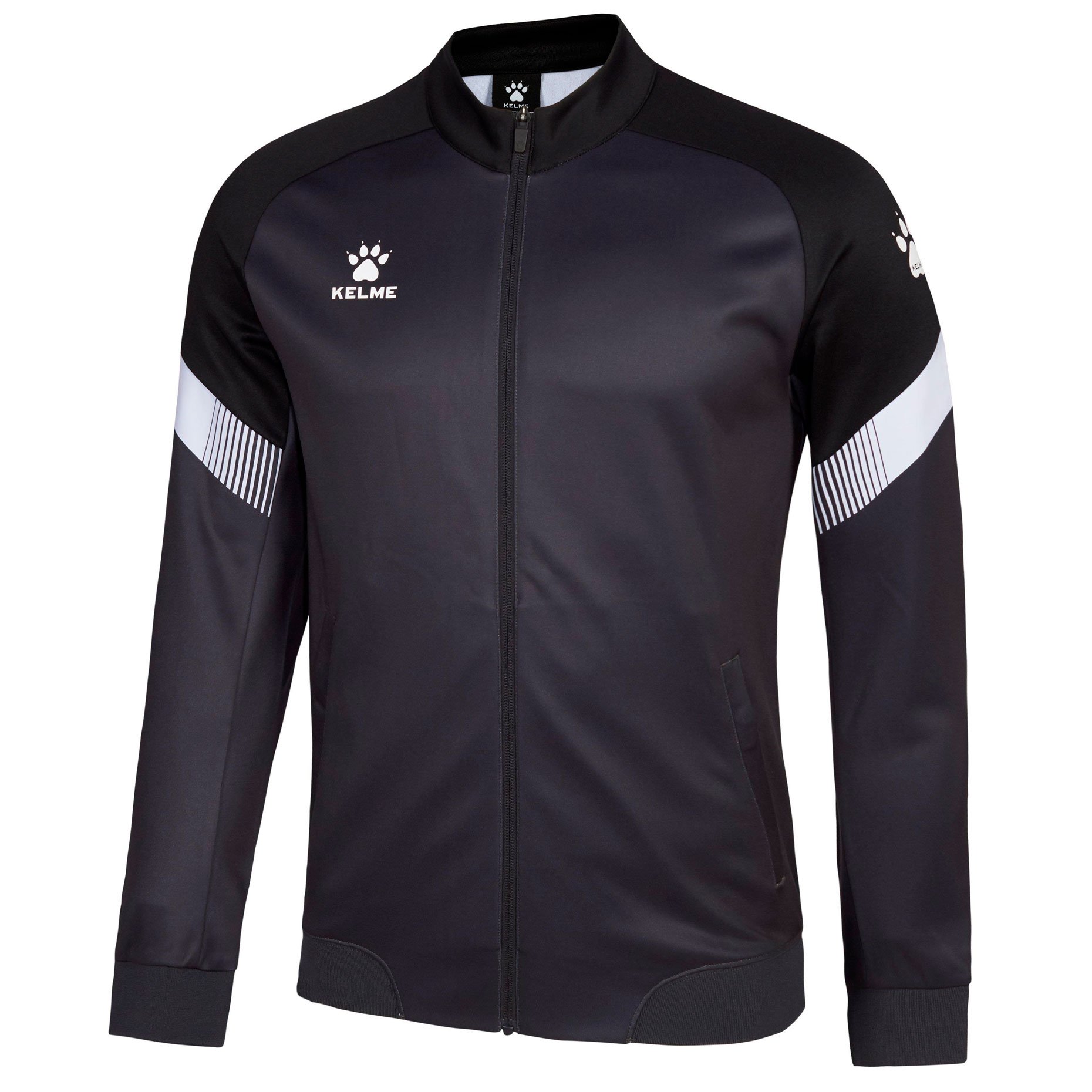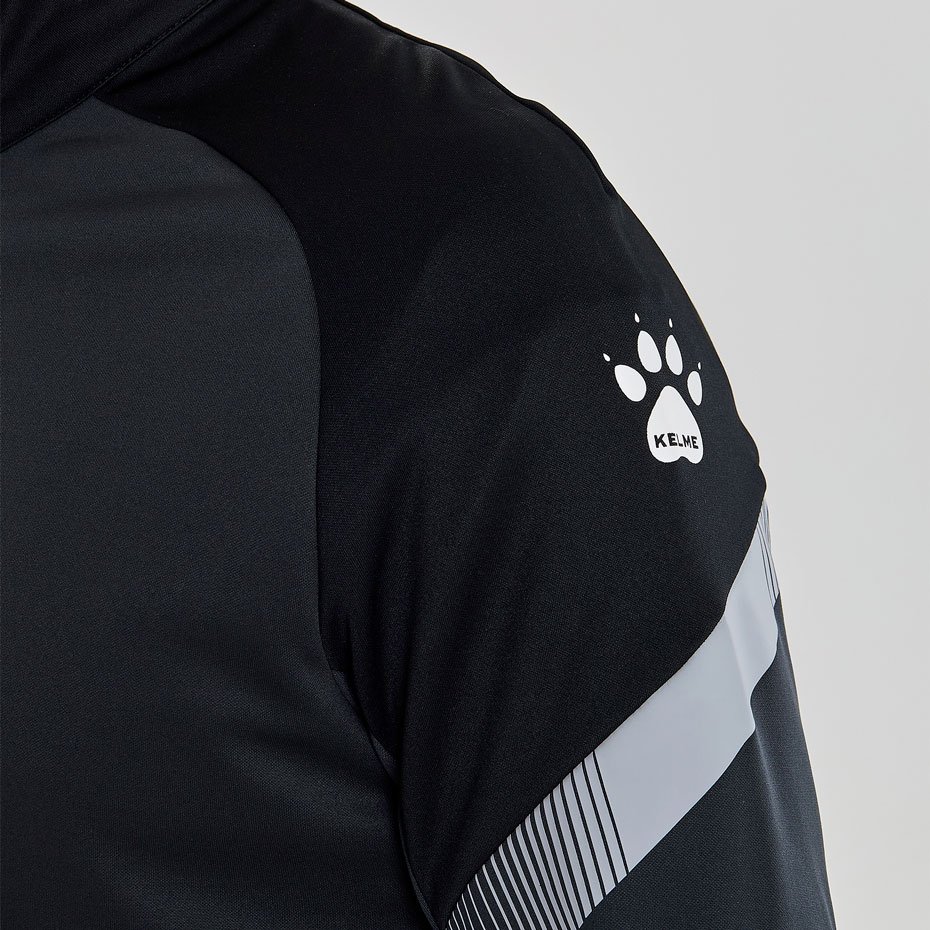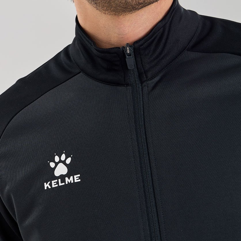 Куртка выполнена из мягкой синтетической ткани, которая обеспечивает комфорт и тепло в прохладную погоду. Ее современный дизайн включает в себя контрастные вставки на рукавах и логотип бренда Kelme на груди, что добавляет куртке дополнительную привлекательность.