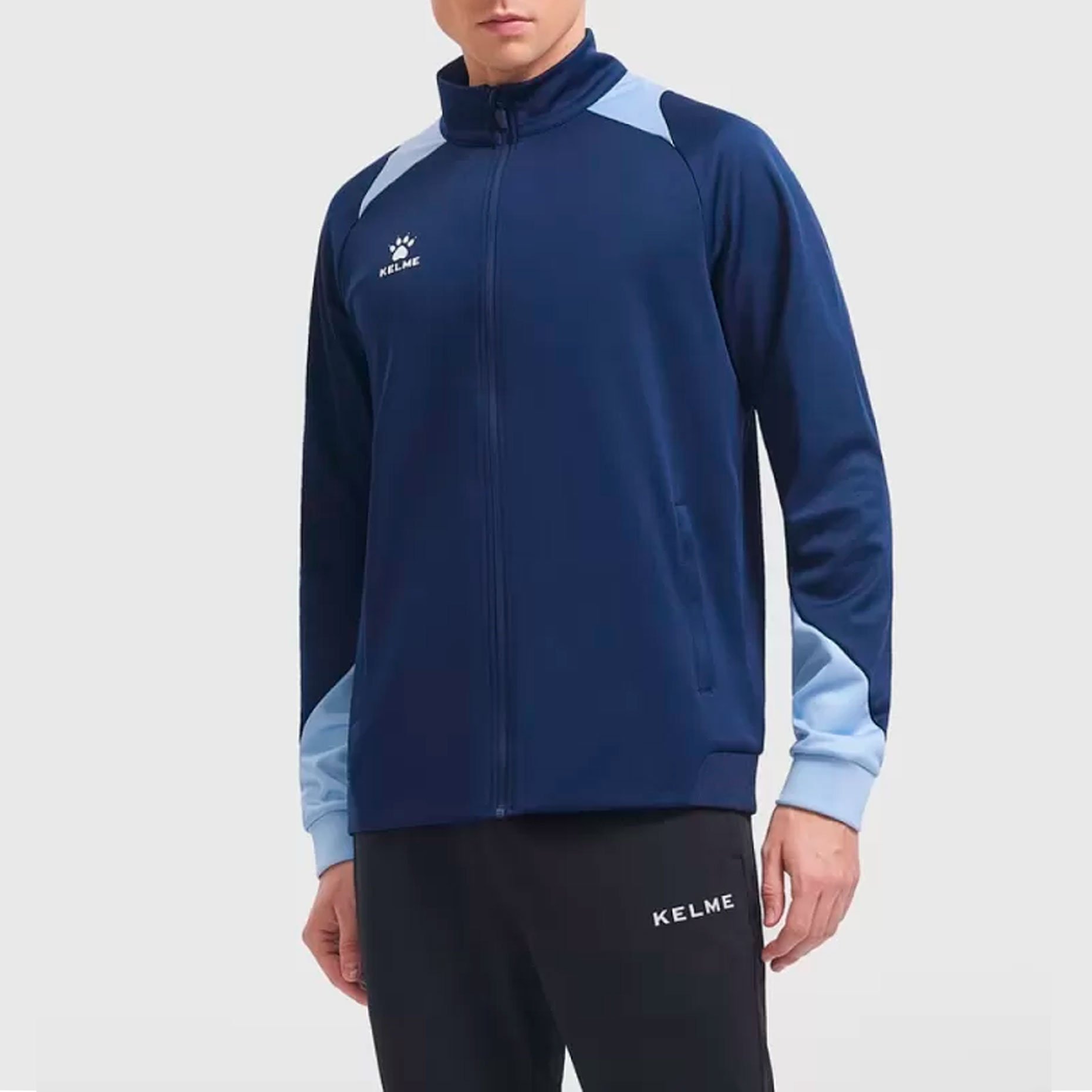 Воротник-стойка добавляет дополнительную защиту для шеи от холода и ветра, делая куртку идеальной для тренировок в прохладное время года. Куртка Kelme Knitted Training Jacket сочетает в себе функциональность и стиль, идеально подходя как для спортивных занятий, так и для повседневного ношения.
