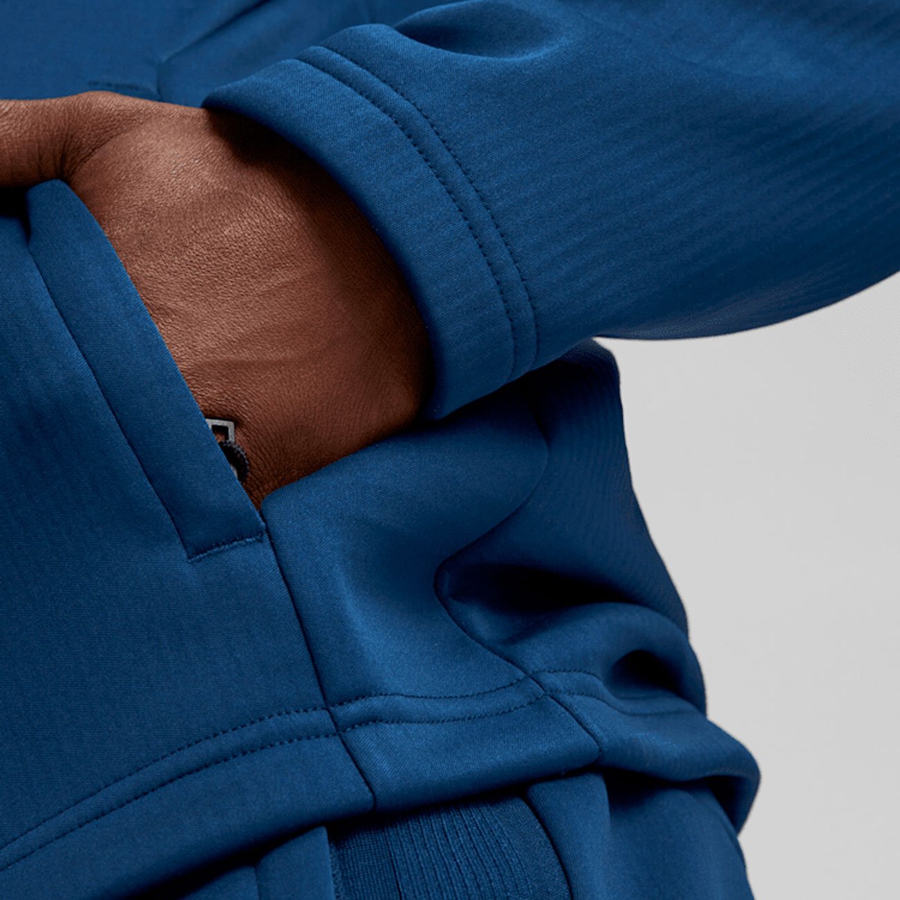 - Ребристая вставка в верхней части рукава, открывающая контрастную сетку внизу, придает куртке динамичный вид.
