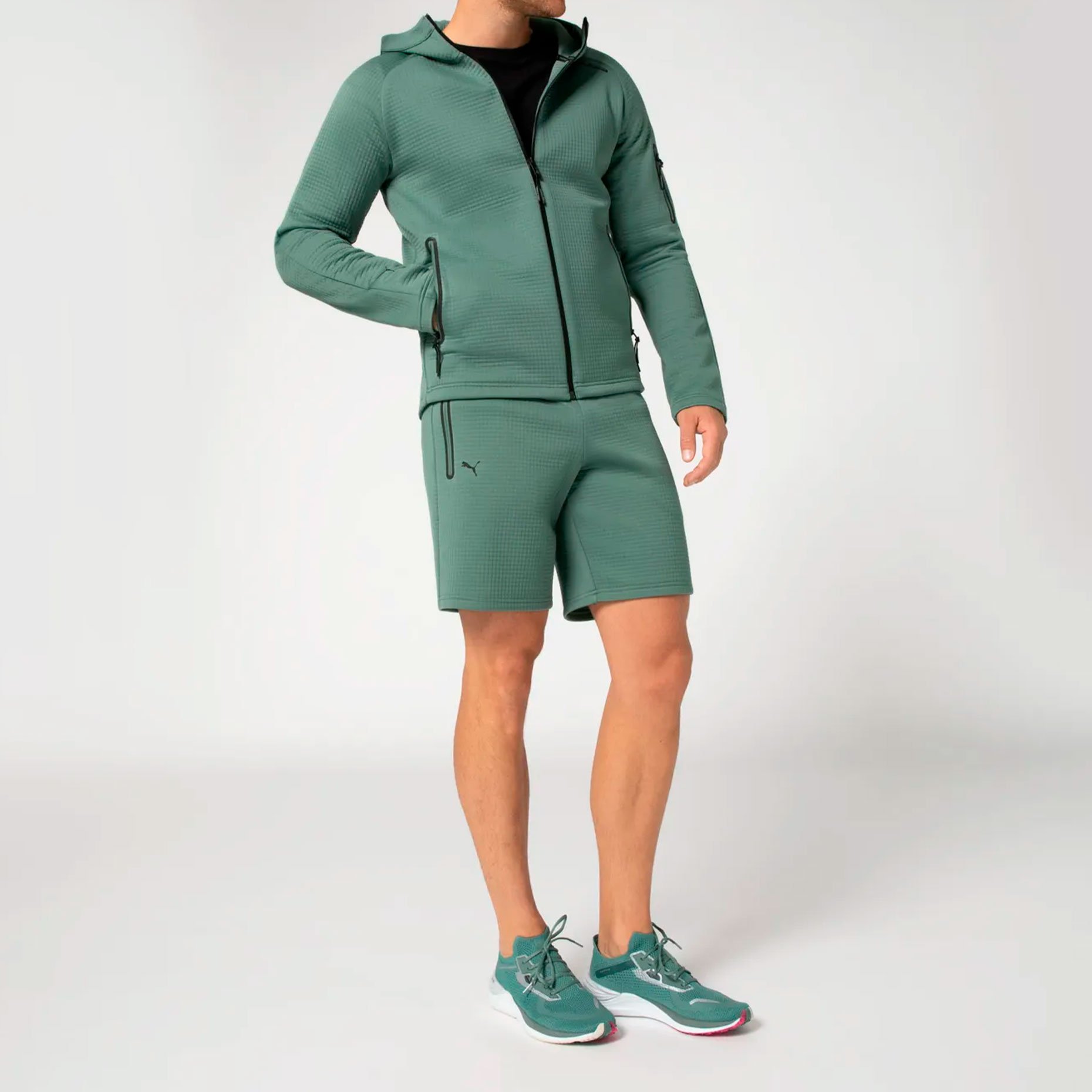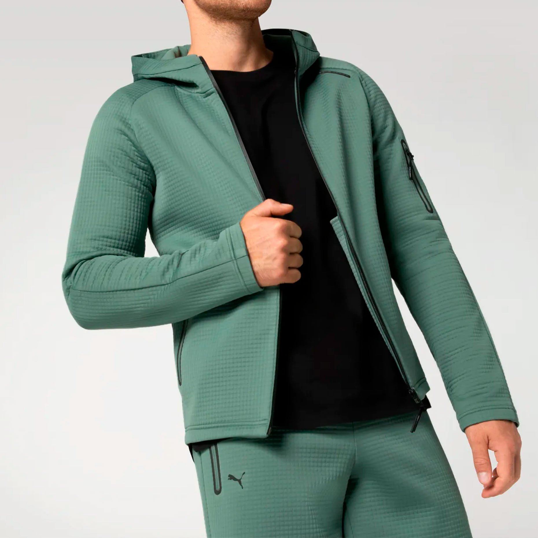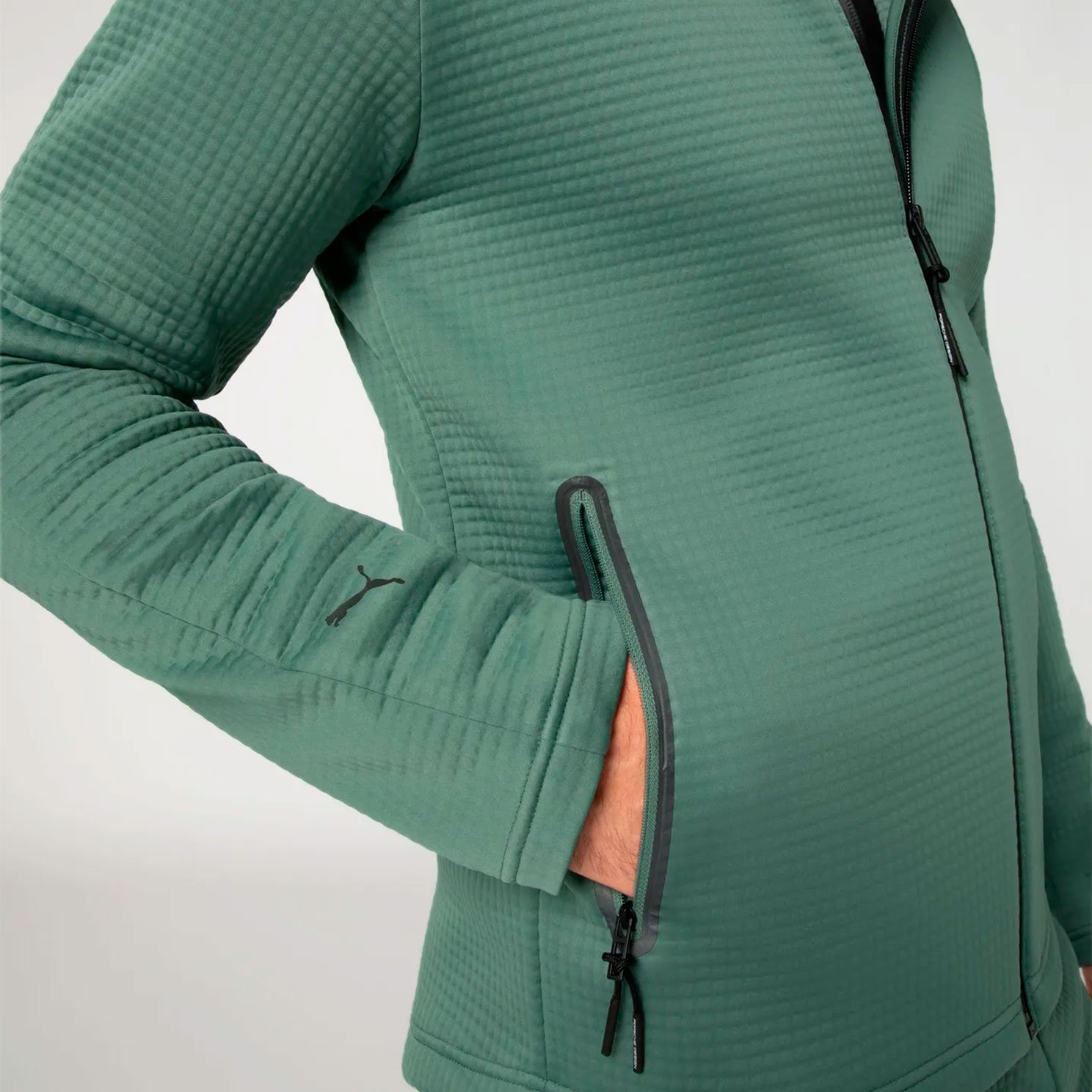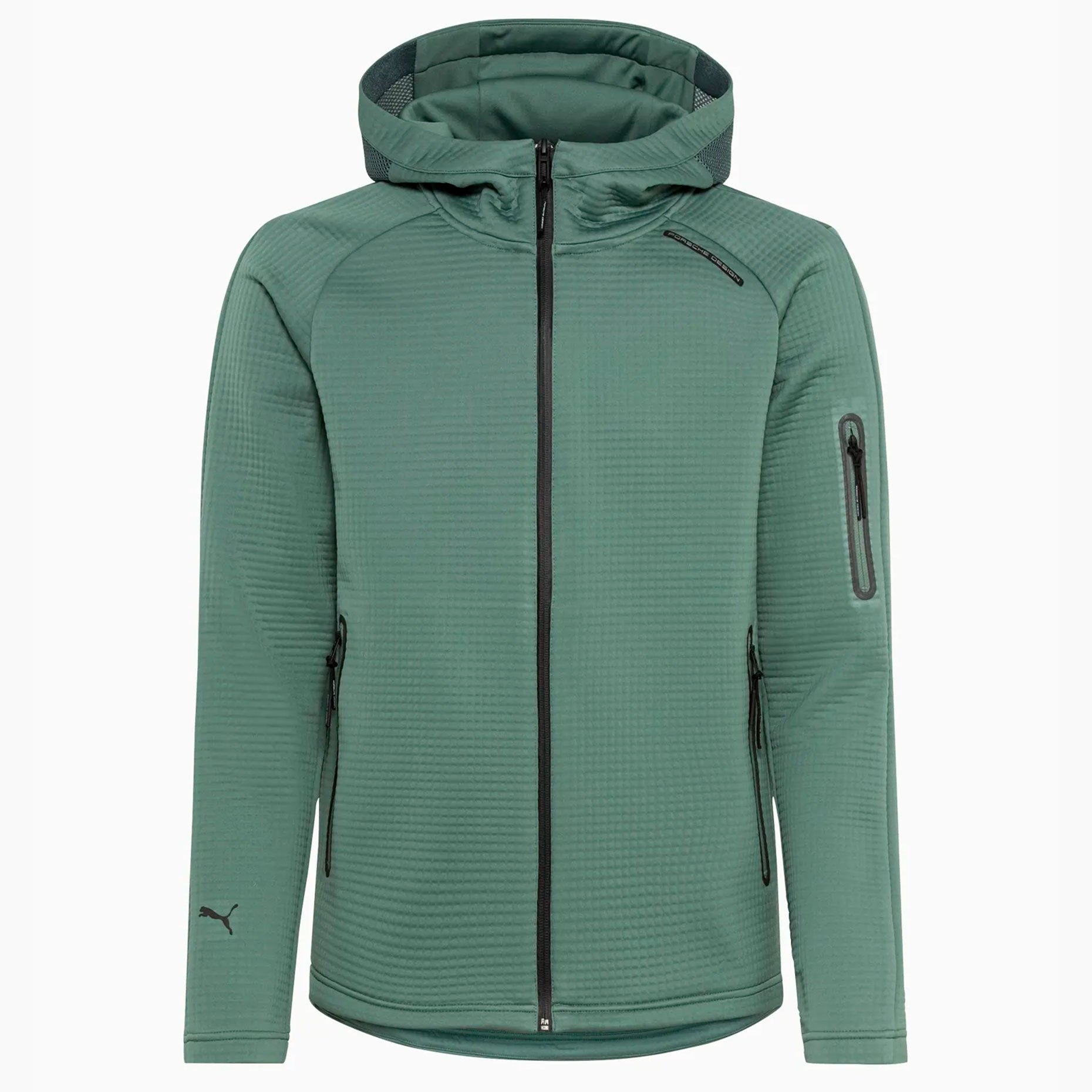 Элементы брендинга включают логотип PUMA Cat на рукаве и надпись Porsche Design на груди, которые отражают эксклюзивность и вдохновение автоспортом. Эта толстовка станет отличным выбором для прогулок, путешествий и активного отдыха, предлагая сочетание премиального дизайна, современных технологий и функциональности.