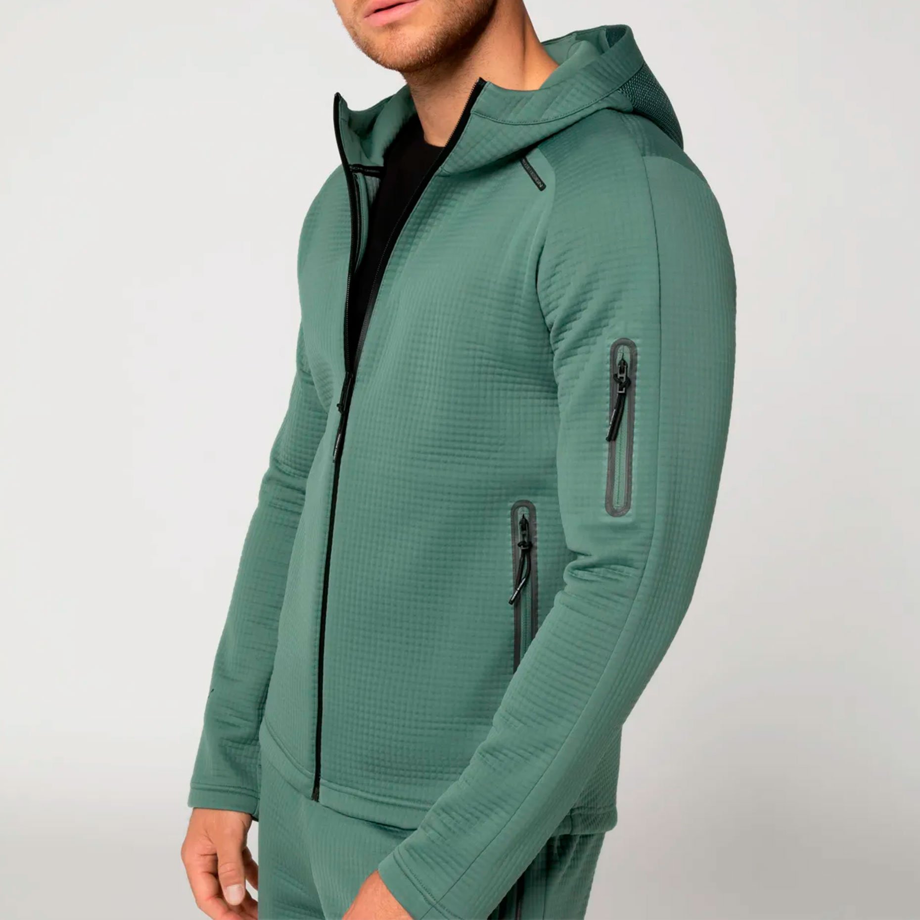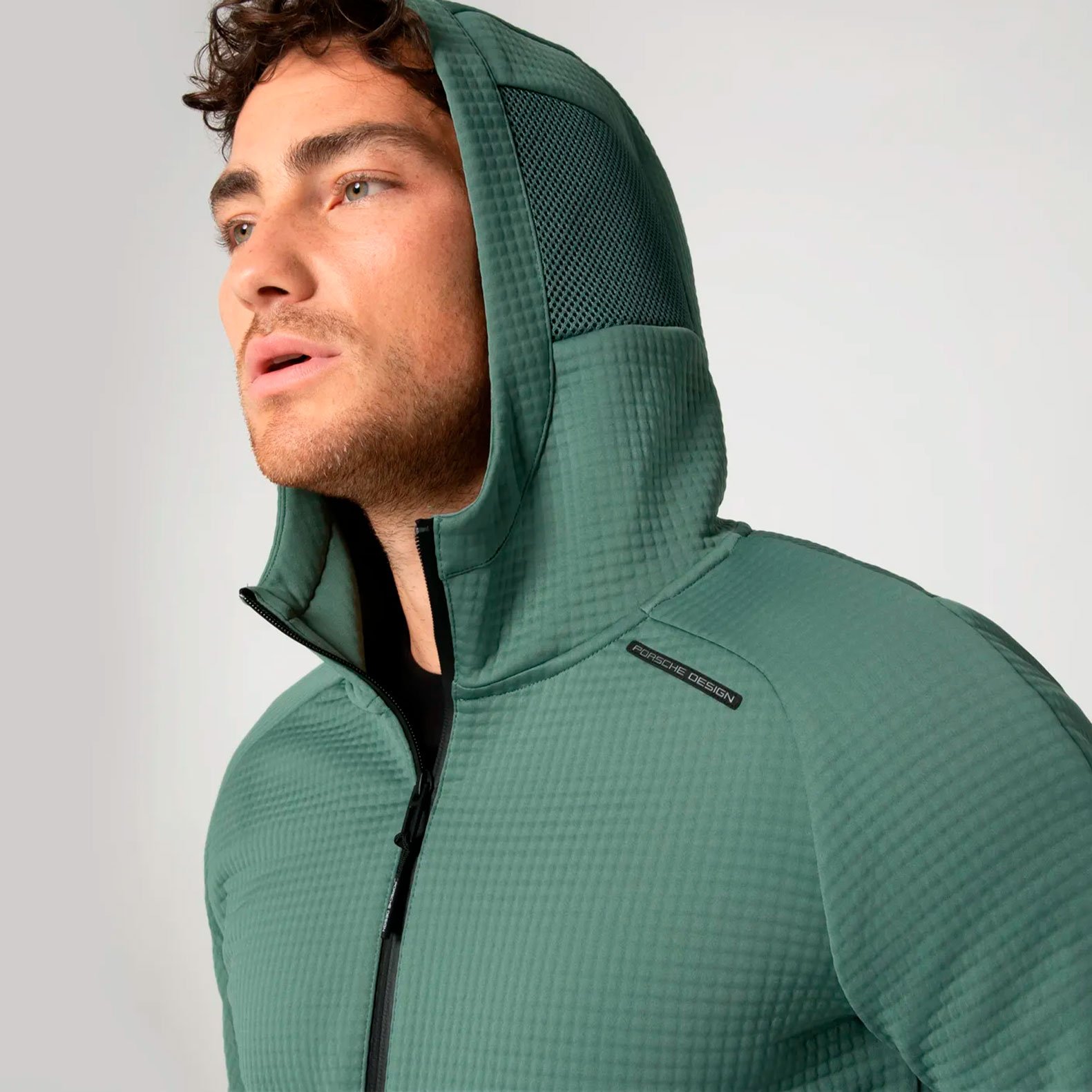 Дизайн продуман до мелочей: узкий крой подчеркивает современный силуэт, а технические контуры изделия гарантируют идеальную посадку. Капюшон с сетчатыми вставками защищает от ветра и добавляет легкую вентиляцию, а высокий воротник создает дополнительный барьер от холода. Практичность обеспечивает наличие боковых карманов на молнии и дополнительного кармана на рукаве, идеально подходящих для хранения мелочей, таких как ключи или телефон.