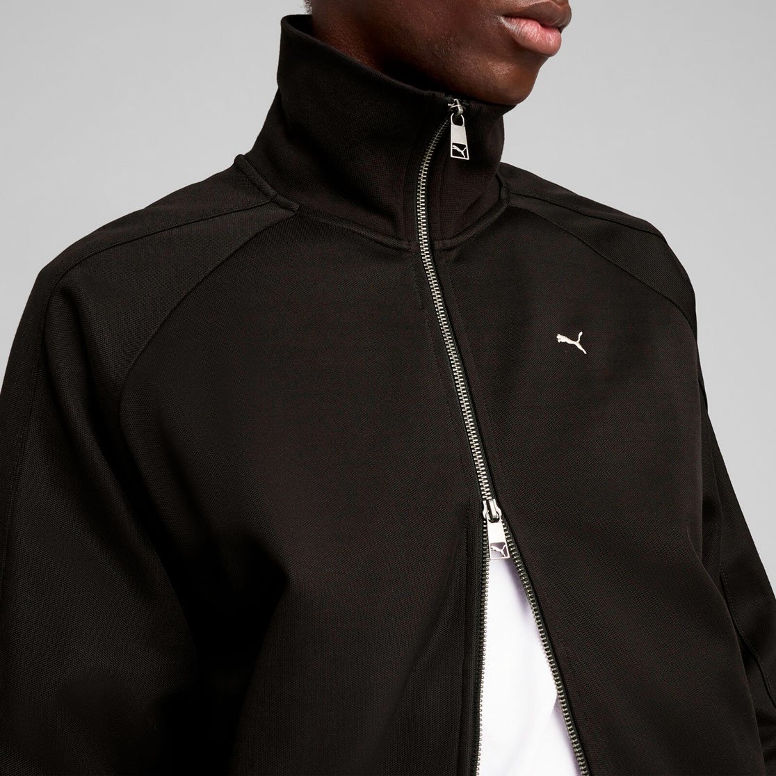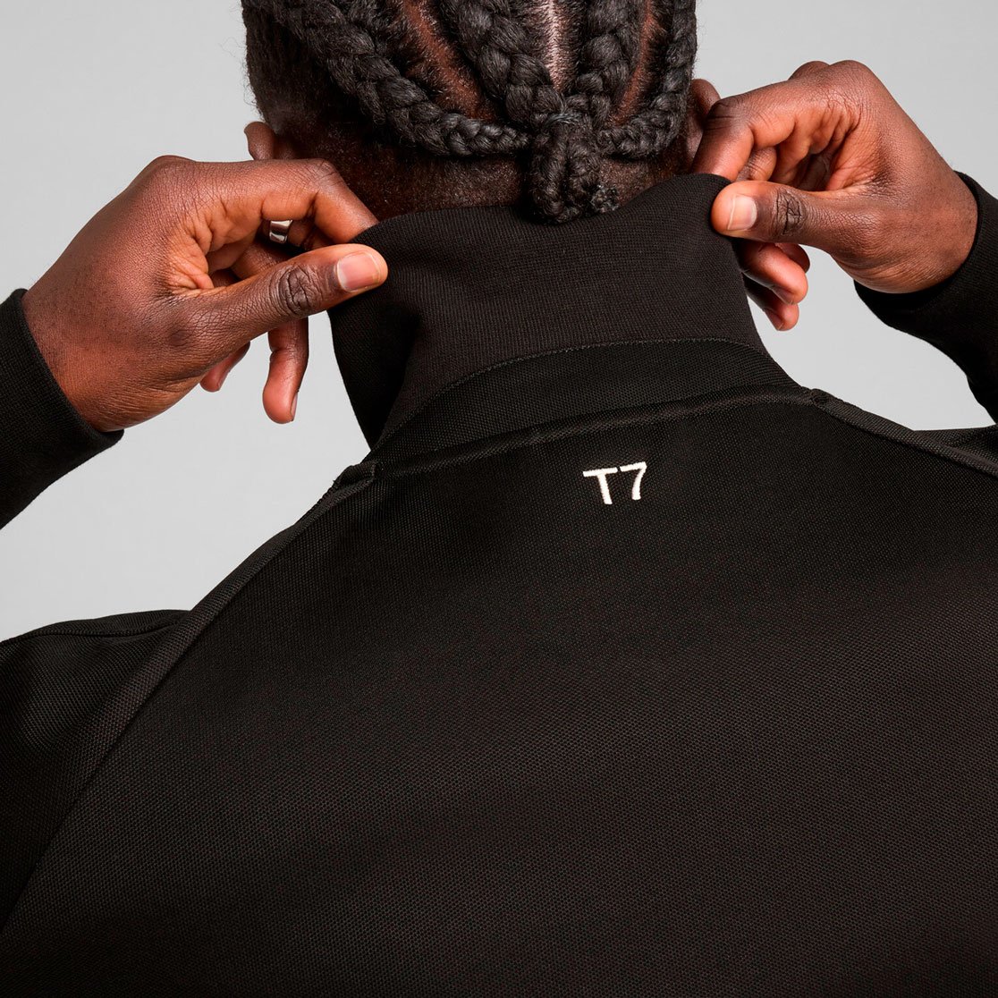 Куртка оснащена практичными элементами: двухсторонняя молния позволяет легко регулировать температуру, боковые карманы на молниях обеспечивают безопасное хранение мелочей, а рукава реглан гарантируют полную свободу движений. Эластичные манжеты, воротник-стойка и подол в рубчик создают надежную защиту от ветра и обеспечивают идеальную посадку. Фирменные элементы декора включают полосы T7 на рукавах и плечах, вышитый логотип PUMA Cat на груди и надпись T7 на спине, подчеркивающие премиальность модели.