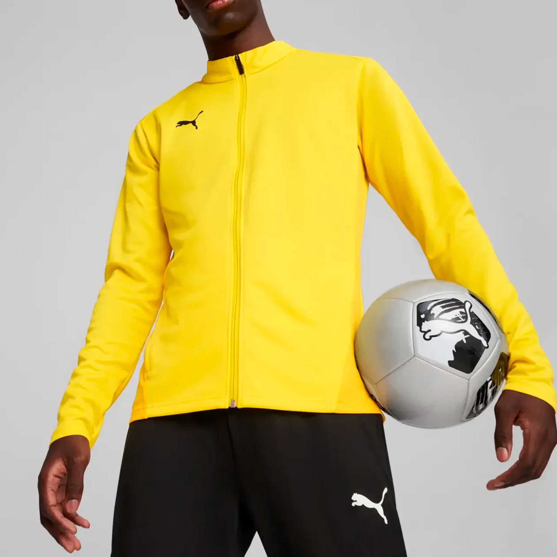 Логотип PUMA на правой стороне груди подчеркивает стиль бренда, а боковые карманы на молниях обеспечивают практичность. Полная молния позволяет регулировать теплообмен, а невысокий воротник не отвлекает во время тренировок.