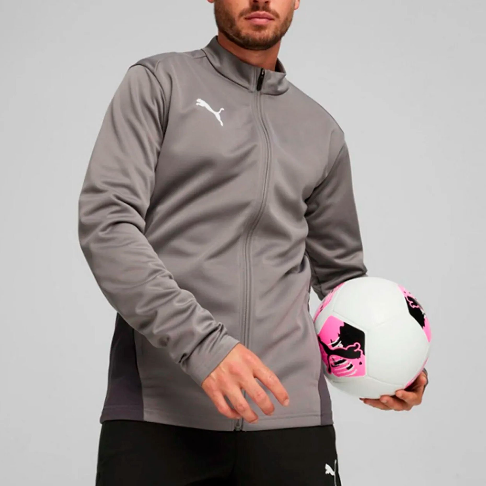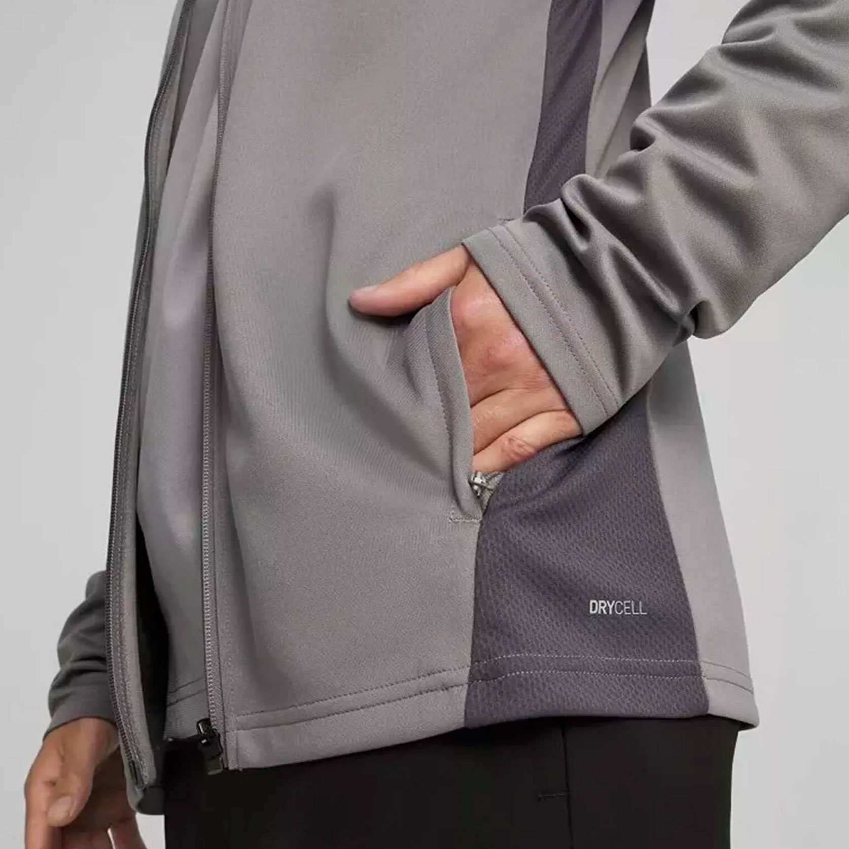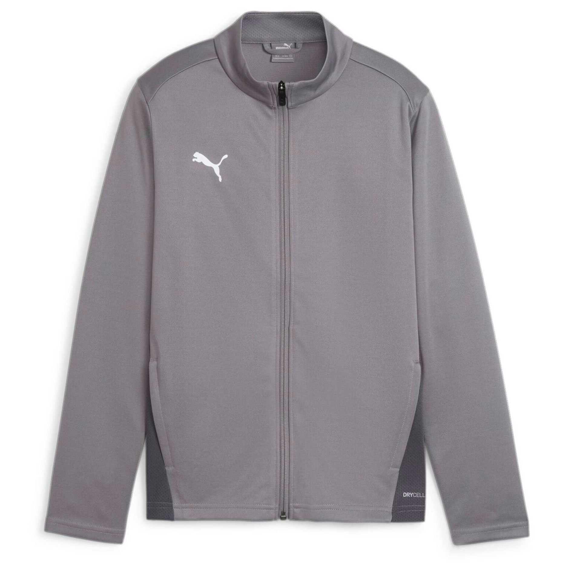 Логотип PUMA на правой стороне груди подчеркивает стиль бренда, а боковые карманы на молниях обеспечивают практичность. Полная молния позволяет регулировать теплообмен, а невысокий воротник не отвлекает во время тренировок.