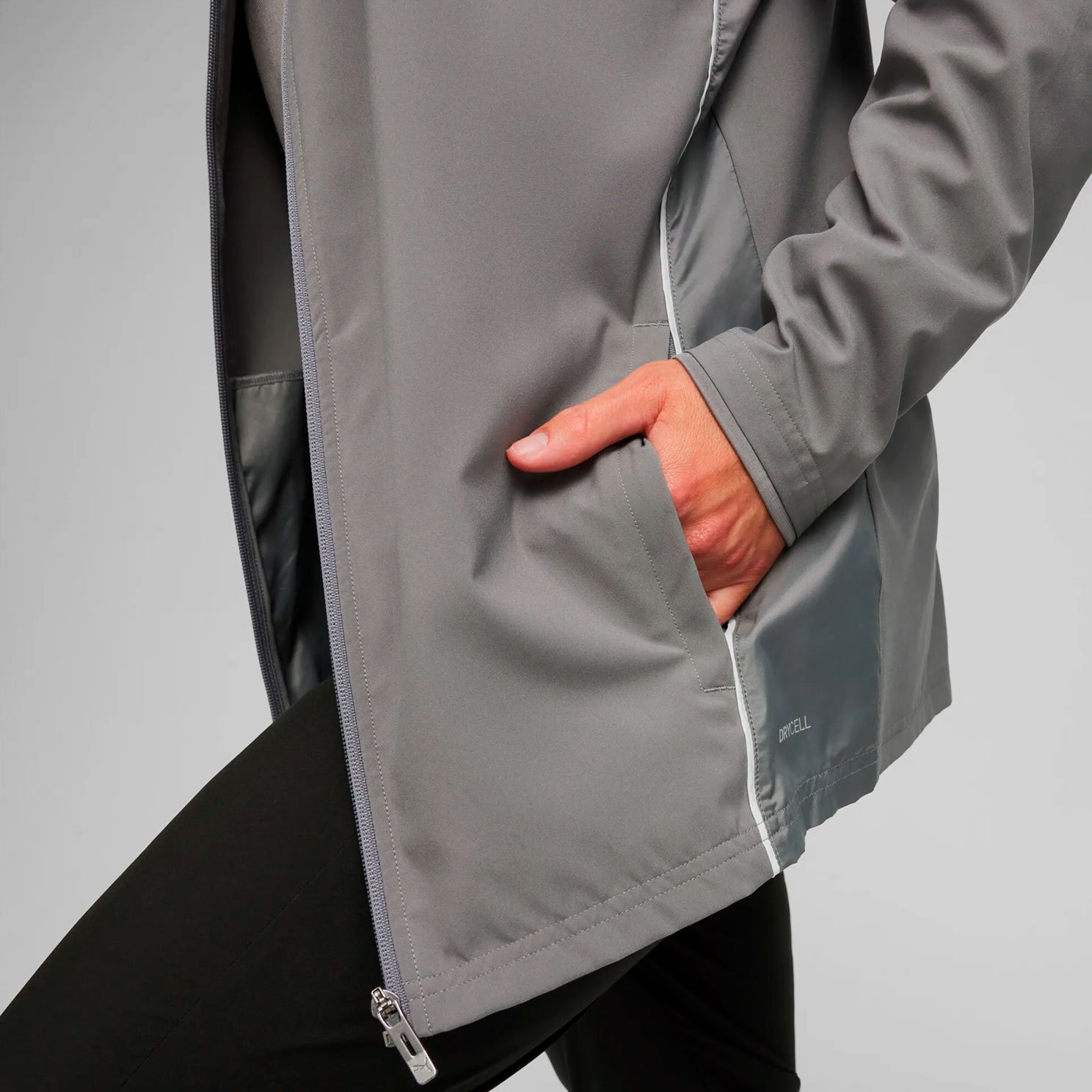 Продуманная конструкция с воротником-стойкой и полной молнией обеспечивает удобство надевания и регулировки вентиляции. Боковые карманы на молниях позволяют хранить необходимые мелочи, а эластичные манжеты предотвращают продувание. Стандартная посадка делает куртку универсальной для разных типов фигур.