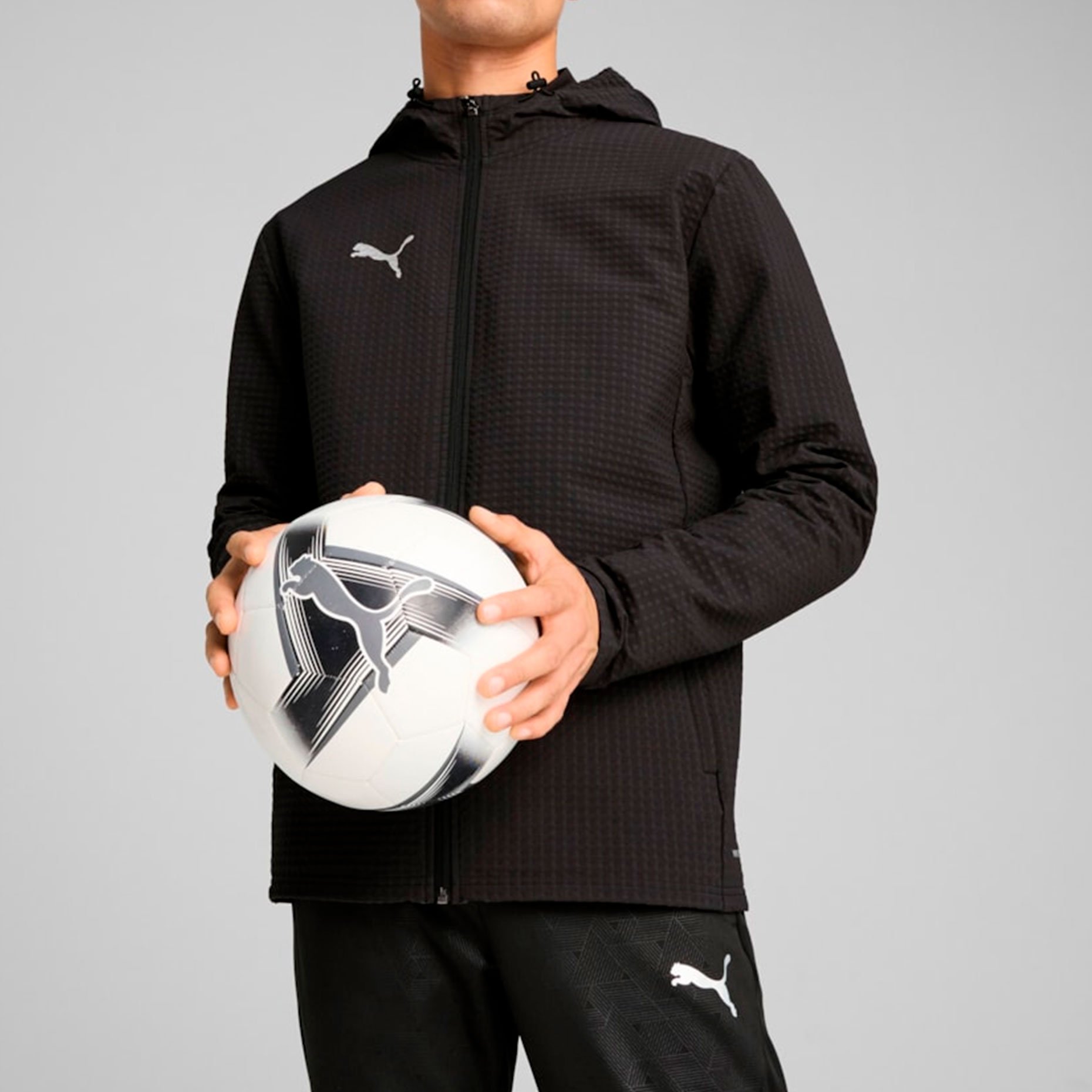 Куртка Puma teamADDITIONS Softshell+ Jacket — надёжная защита от непогоды для активных людей. Модель сочетает в себе инновационные технологии и классический дизайн. Технология windCELL эффективно защищает от ветра, а капюшон обеспечивает дополнительную защиту в непогоду. Боковые карманы на молнии позволяют безопасно хранить необходимые мелочи, а культовый логотип PUMA Cat на правой груди подчёркивает принадлежность к бренду.
