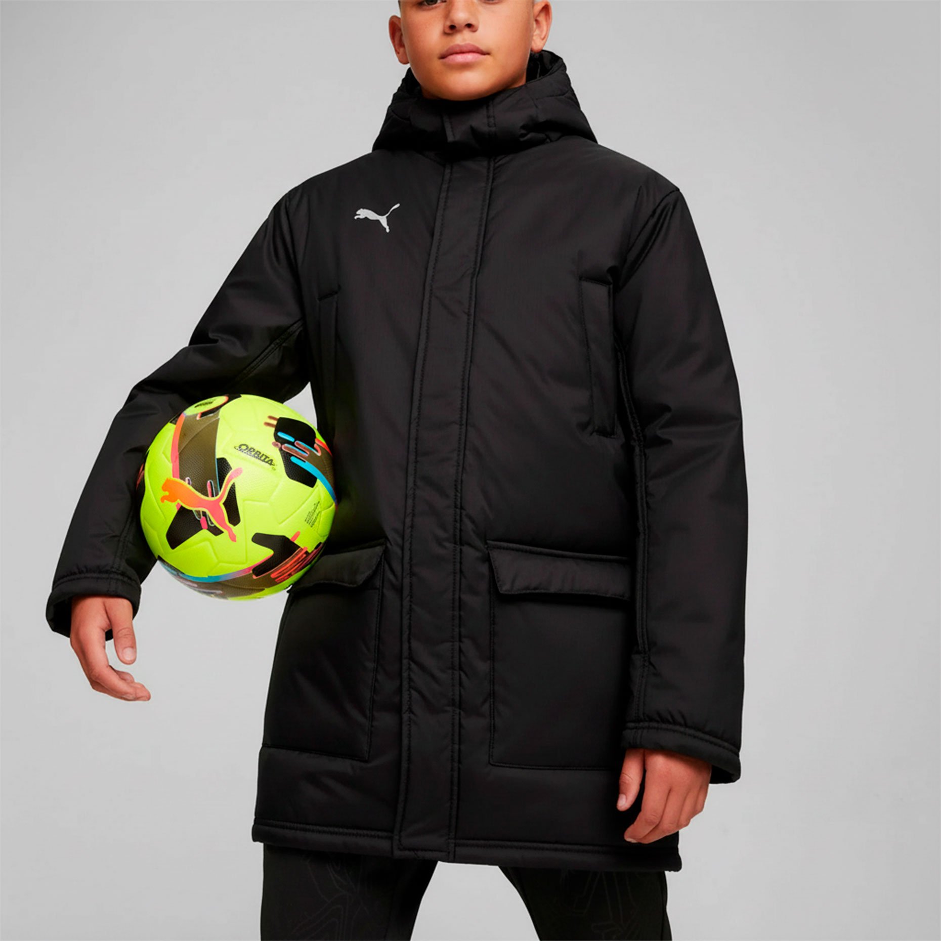 Куртка удлинённая детская Puma teamFINAL Winter Jacket — это идеальное решение для активных детей, обеспечивающее комфорт и защиту в любых погодных условиях. Изготовленная из ткани Ripstop, она обладает влагоотводящими свойствами, что позволяет эффективно защищать от легкого дождя и снега. Благодаря синтетическому утеплителю, куртка сохраняет тепло, что особенно важно в холодную погоду.
