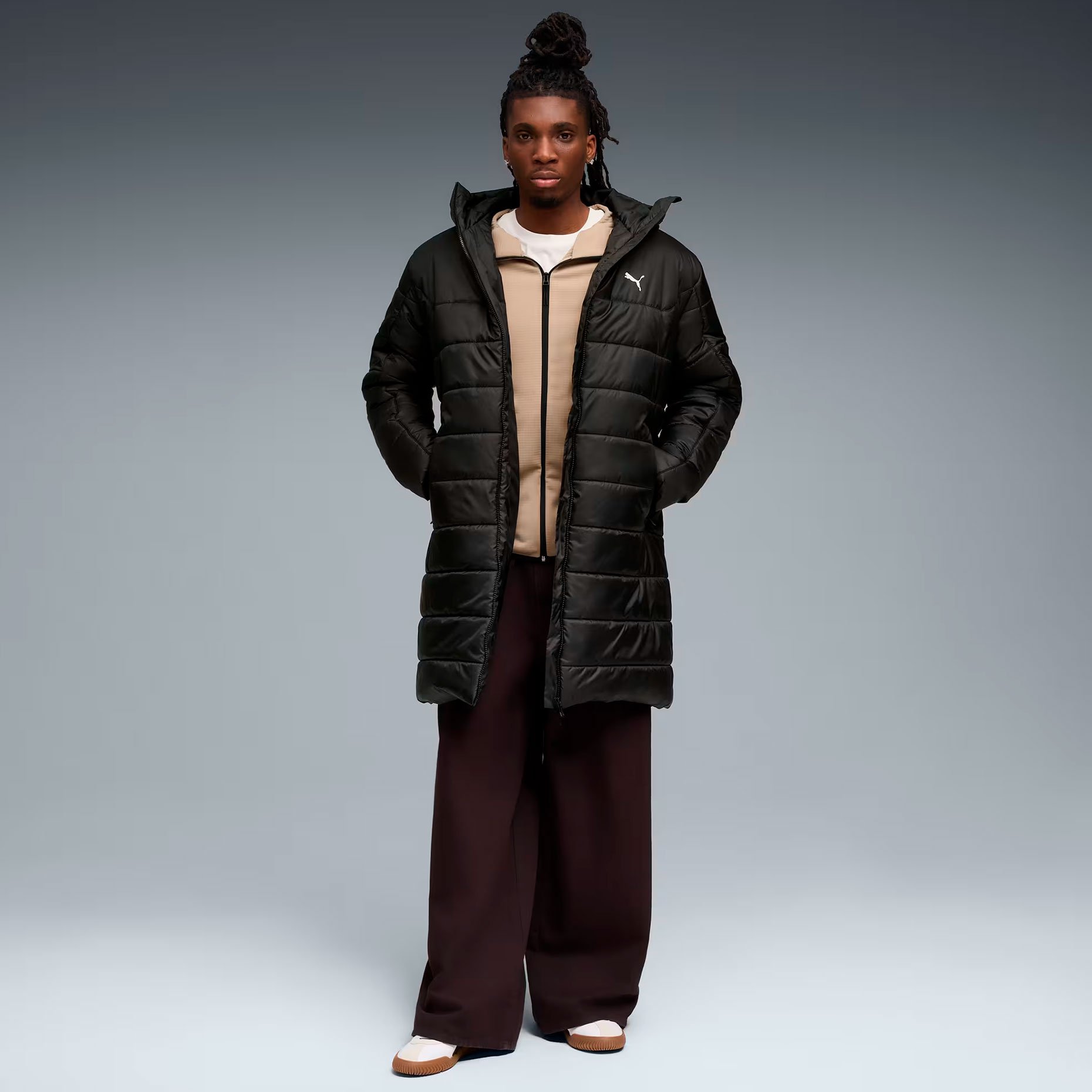 Куртка удлинённая Puma Essentials Hooded Padded Parka — это стильная и функциональная куртка, созданная для холодных дней. Она сочетает в себе комфорт, защиту от непогоды и современный дизайн. Удлинённый крой обеспечивает дополнительную защиту от холода, а лёгкий синтетический наполнитель делает куртку удобной и практичной. Высокий воротник, переходящий в удобный капюшон, защищает от ветра, а боковые карманы на молниях позволяют надёжно хранить вещи. Внешняя ткань с влагоотталкивающей пропиткой защищает от лёгкого дождя или снега.