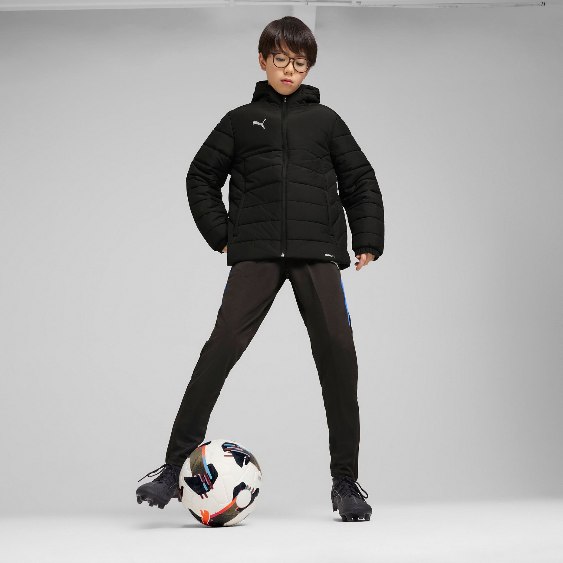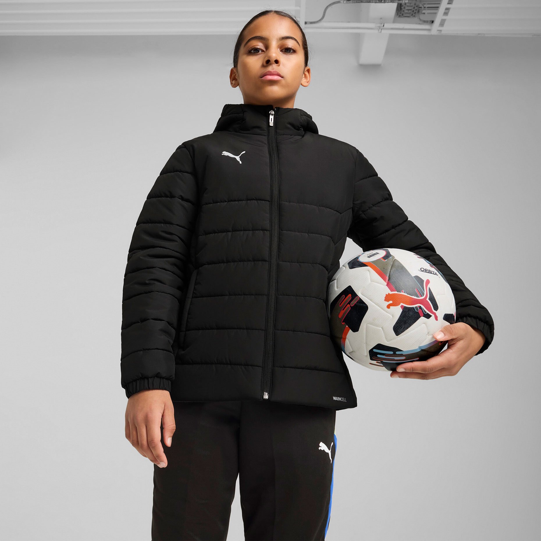 Куртка утеплённая детская Puma teamADDITIONS Hooded Padded Jacket — это стильное и практичное решение для холодной погоды. Она оснащена технологией warmCELL, которая помогает сохранять тепло, а водоотталкивающая пропитка защищает от лёгкого дождя и снега. Высокий воротник, переходящий в капюшон, и манжеты на рукавах обеспечивают дополнительную защиту от ветра и холода.