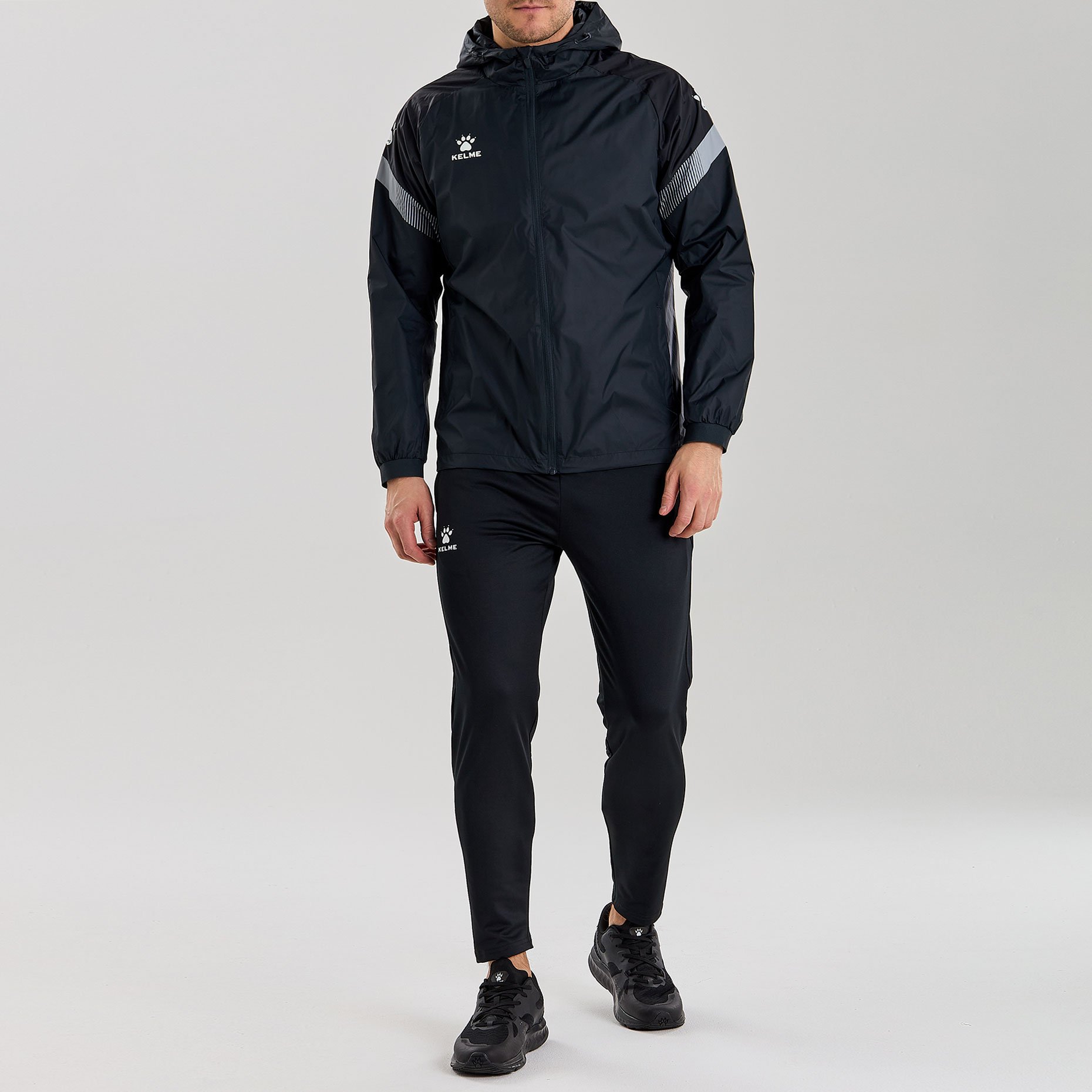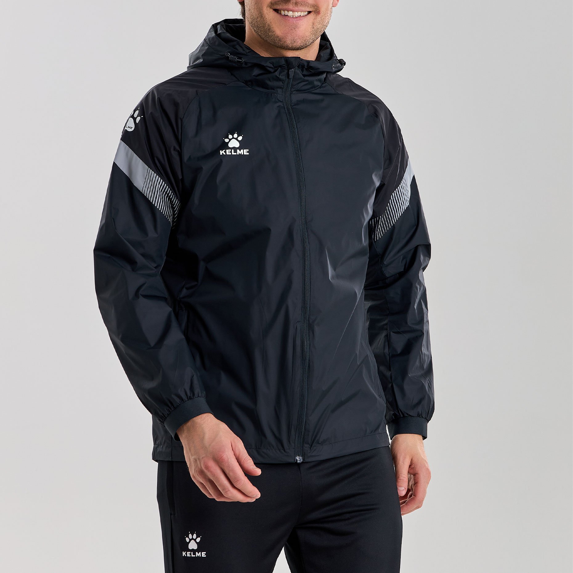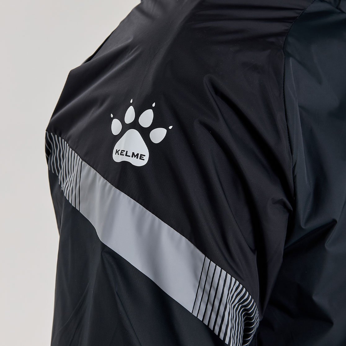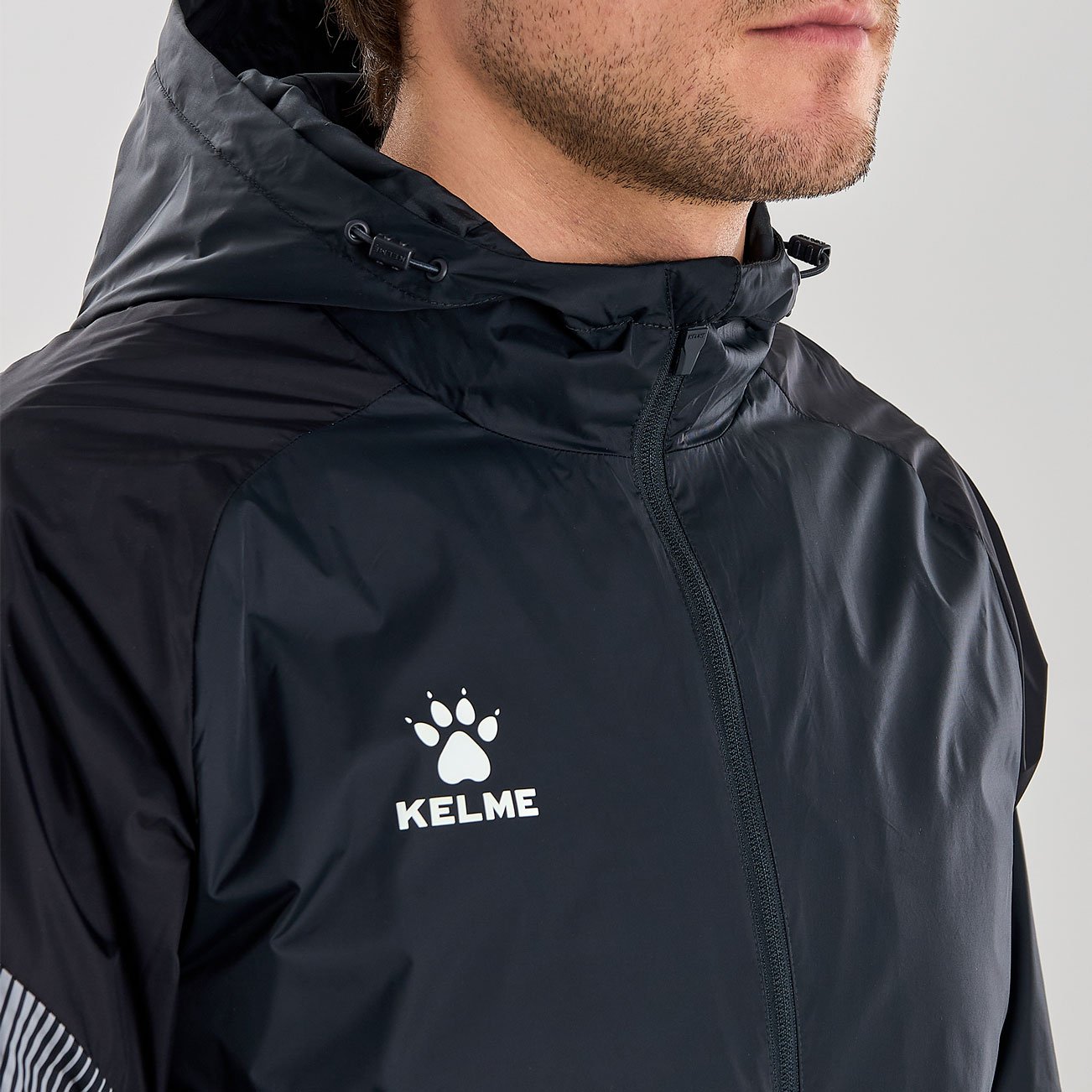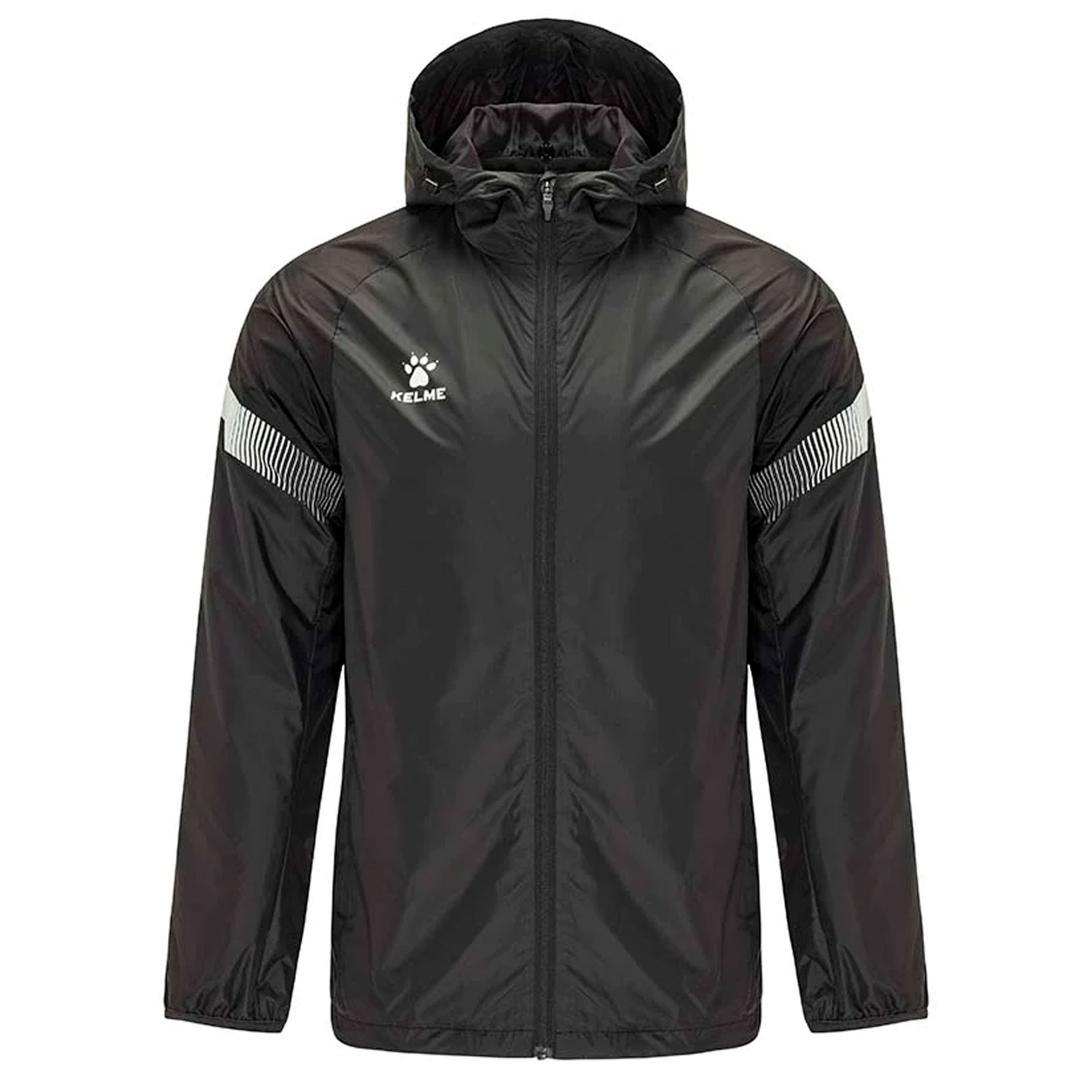 Куртка имеет стильный дизайн с контрастными вставками на рукавах и логотипом бренда Kelme на груди. Кроме того, куртка оснащена капюшоном, который имеет шнурки для регулировки при необходимости.