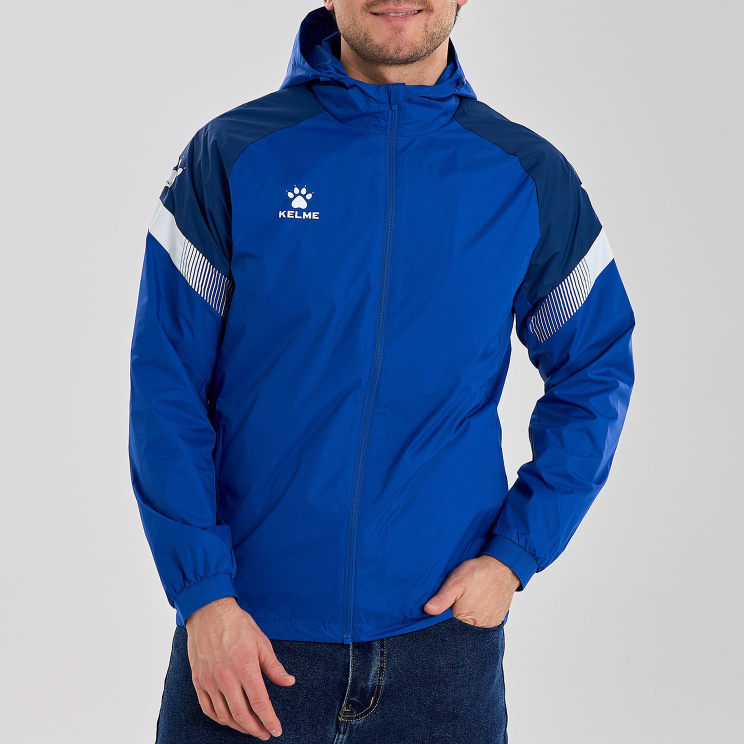 Ветрозащитная куртка Kelme Costas имеет удобные карманы с молниями для хранения необходимых вещей, а также регулируемые манжеты и нижний край для настройки посадки и комфорта.