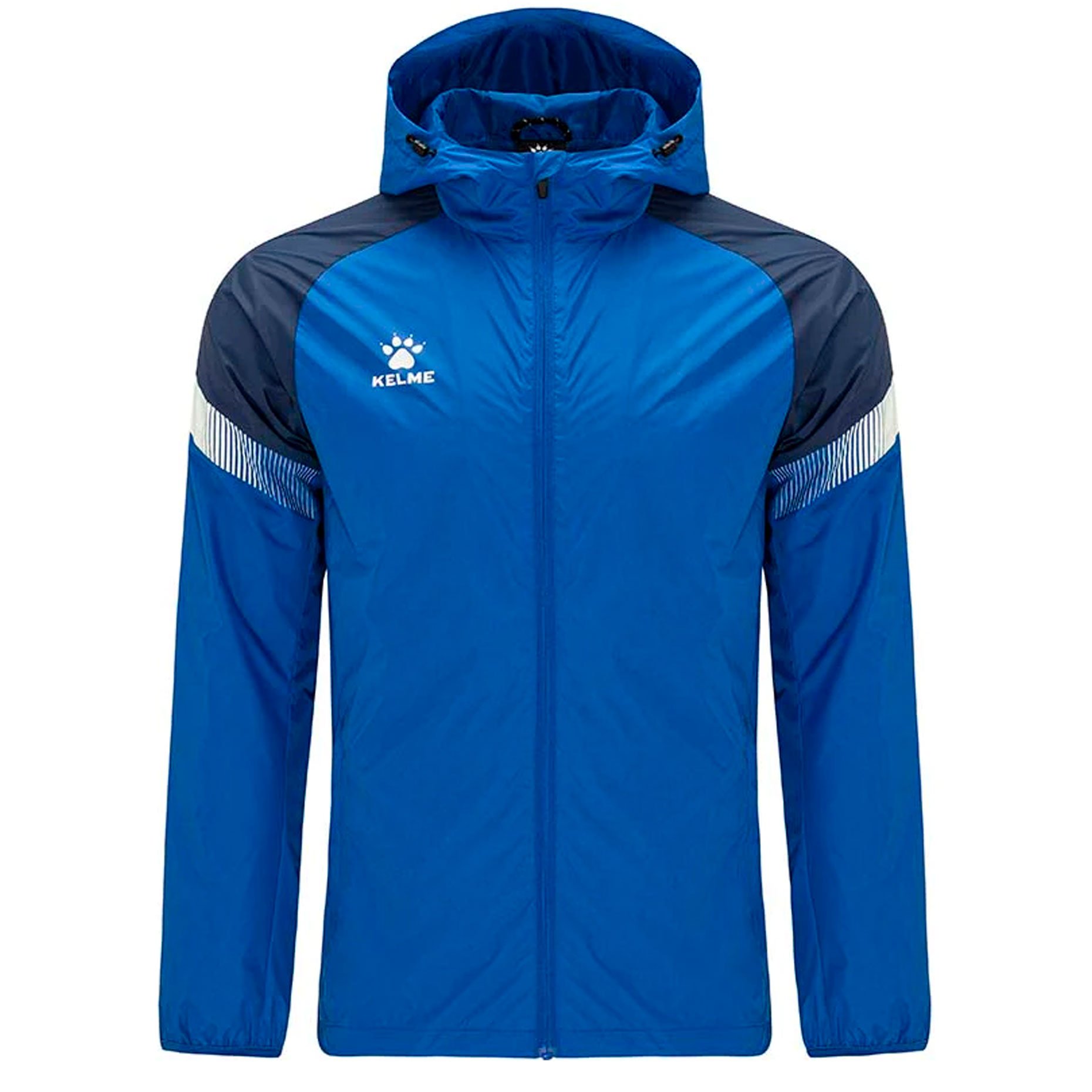 Куртка имеет стильный дизайн с контрастными вставками на рукавах и логотипом бренда Kelme на груди. Кроме того, куртка оснащена капюшоном, который имеет шнурки для регулировки при необходимости.